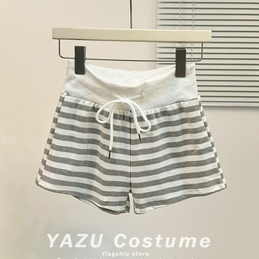 스트라이프 운동 반바지 여성 여름 로우 웨이스트 한 마디 느긋한 홈 파자마 바지 외출용 아메리칸 캐주얼 핫걸 뜨거운 바지