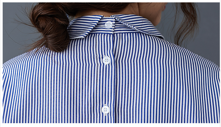 실사 2026 봄 새로운 패션 빅 사이즈 루즈핏 스트라이프 두꺼운 스타일 목이버섯 심지어 어깨 소매 오픈 가디건 셔츠 여성 셔츠