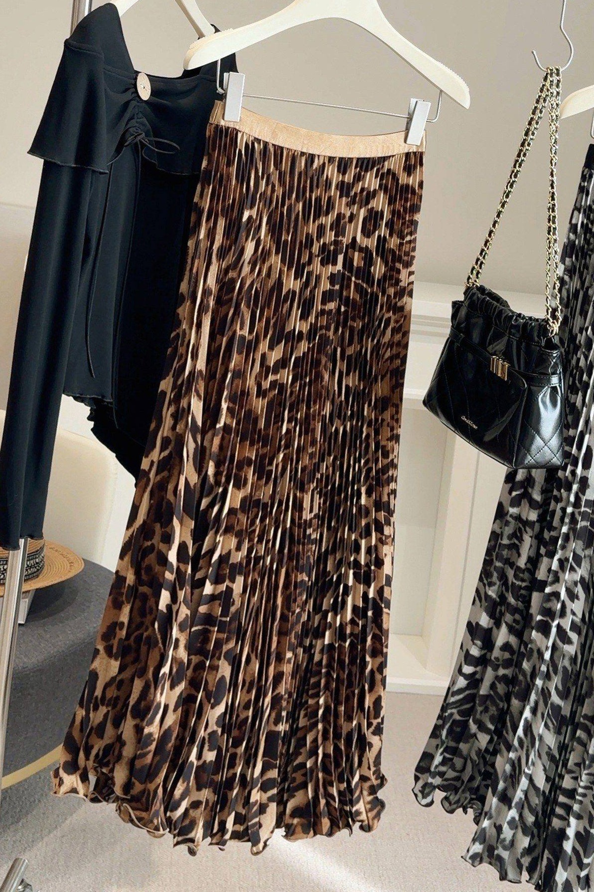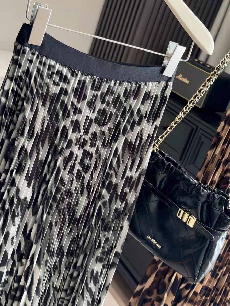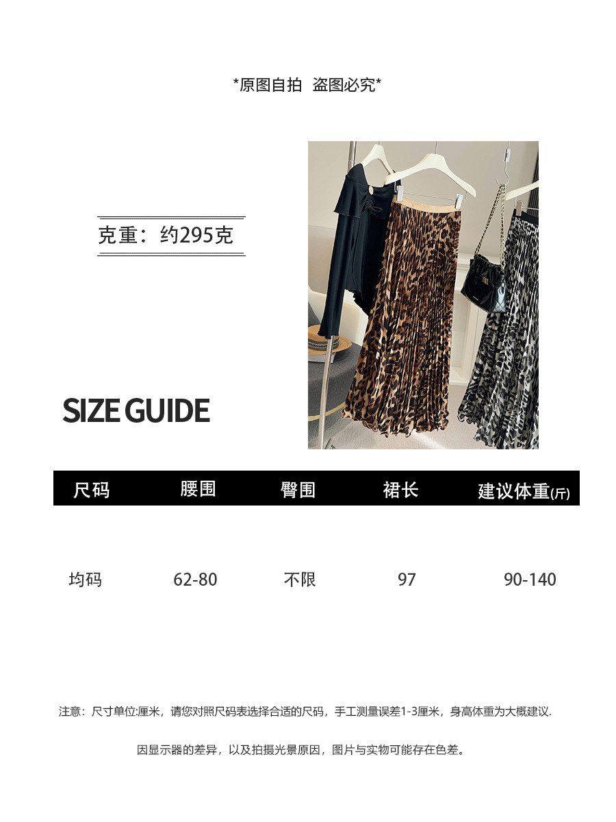 정가 2026 새로운 한국 스타일 허리밴드 도트 무늬 레오파드 무늬 플리츠 스커트 다용도 슬림해 보이는 롱 코트 반신 스커트