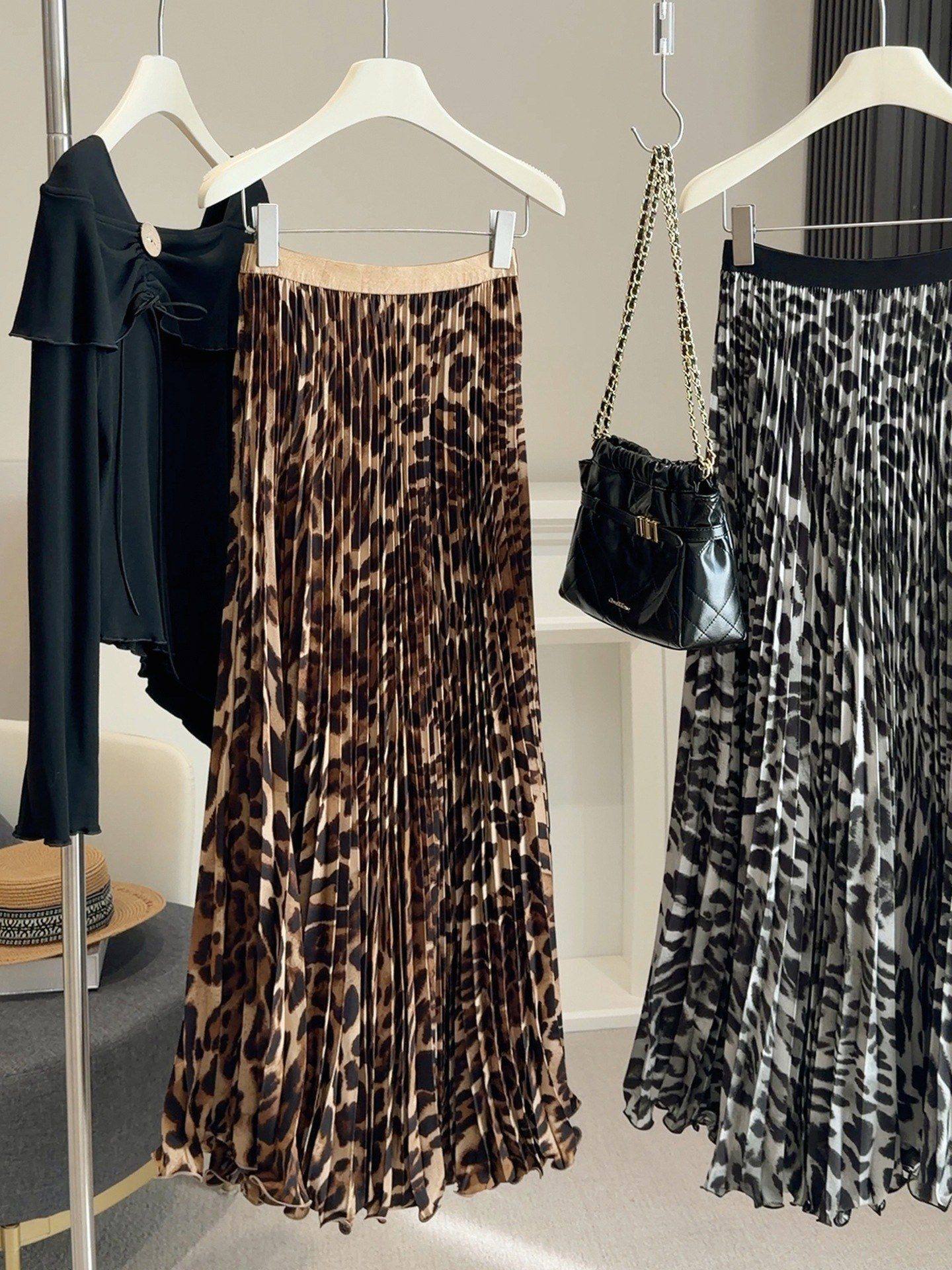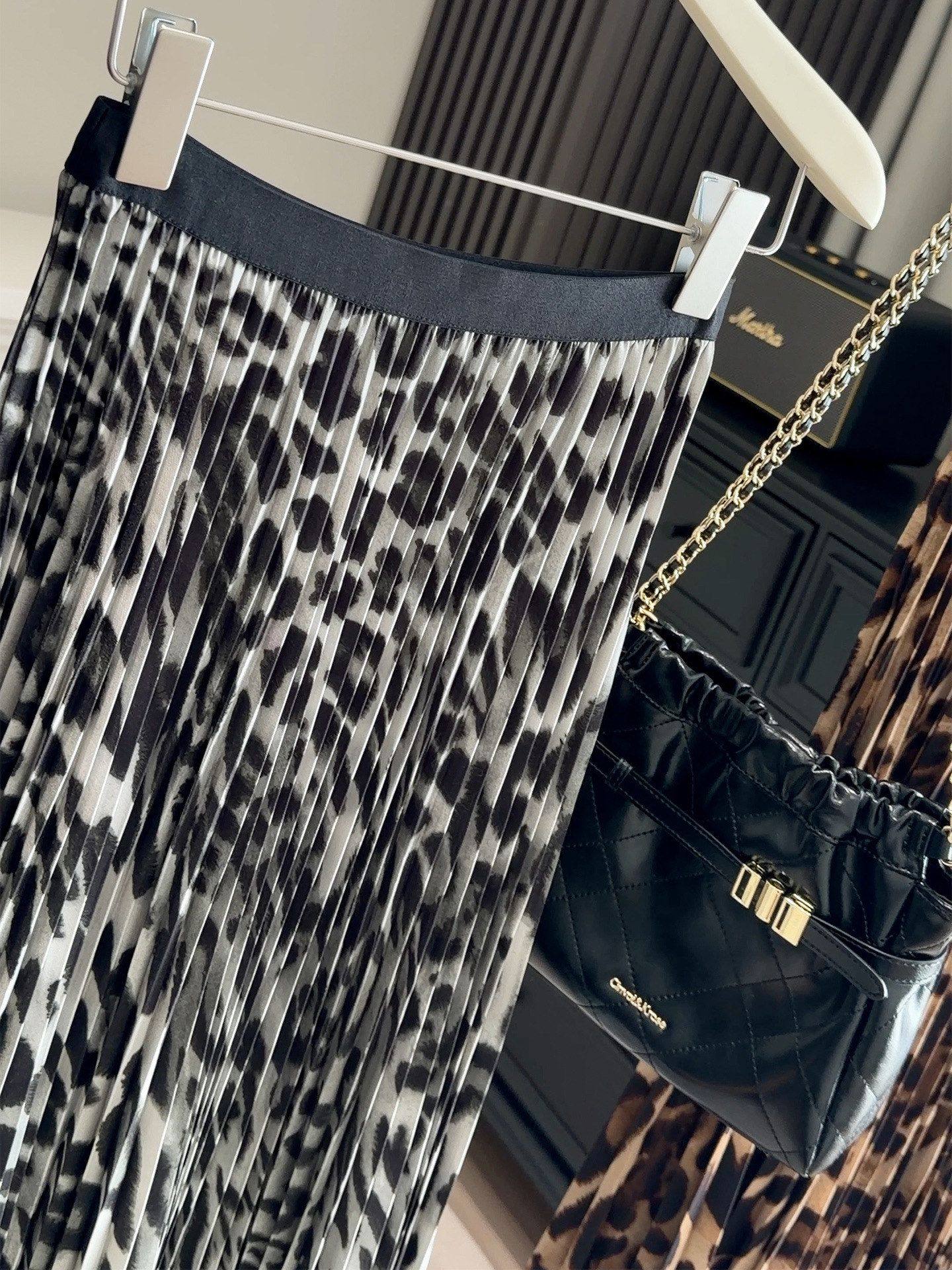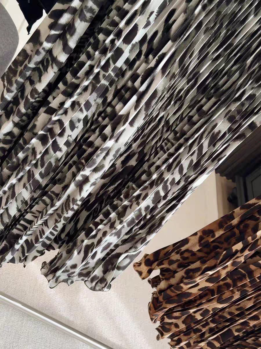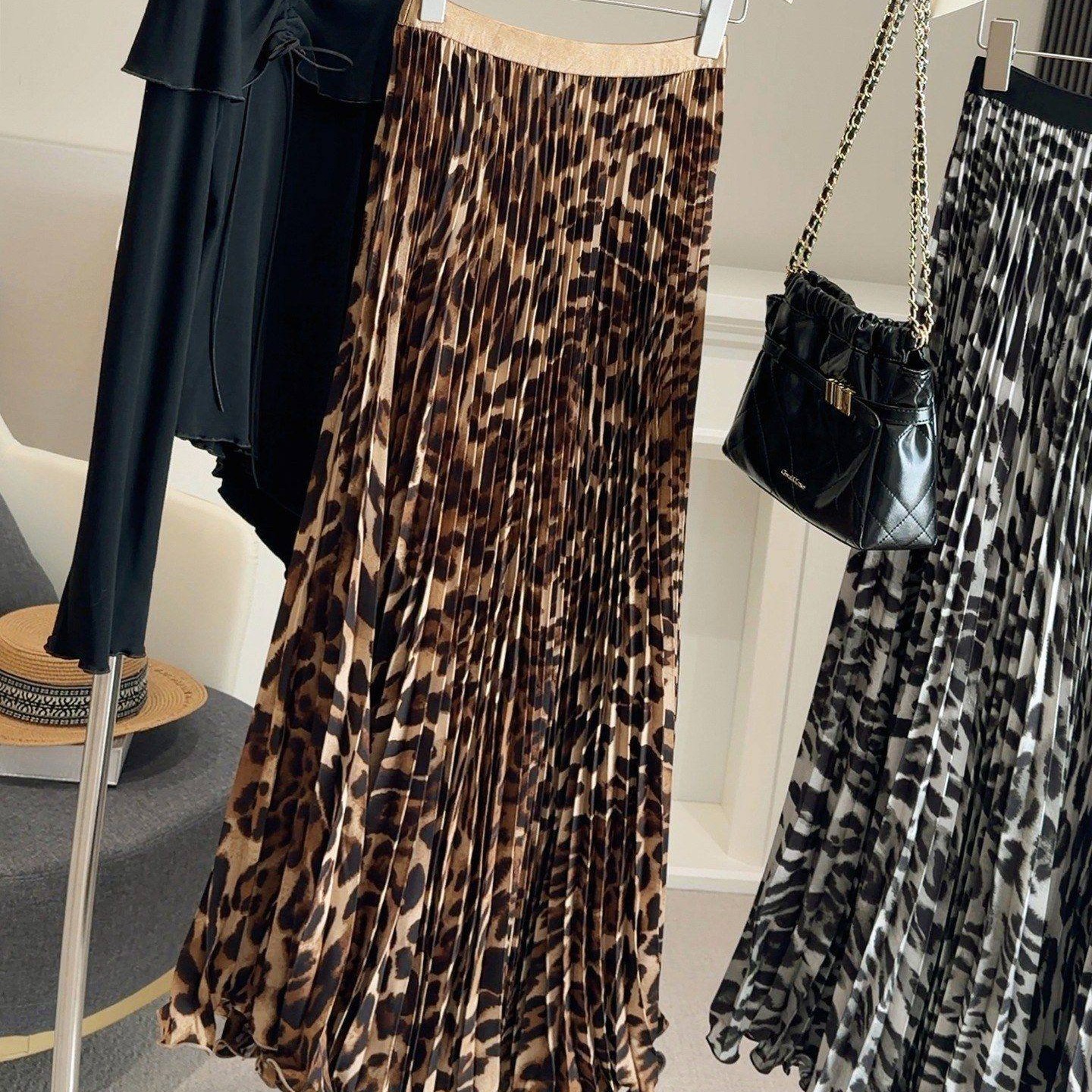 봄 여름 새로운 패션 품격 레오파드 무늬 프린트 플리츠 롱 스커트 여성 도루 가을 센스 플리츠 특대 사이즈 진자 한 마디 반신 스커트