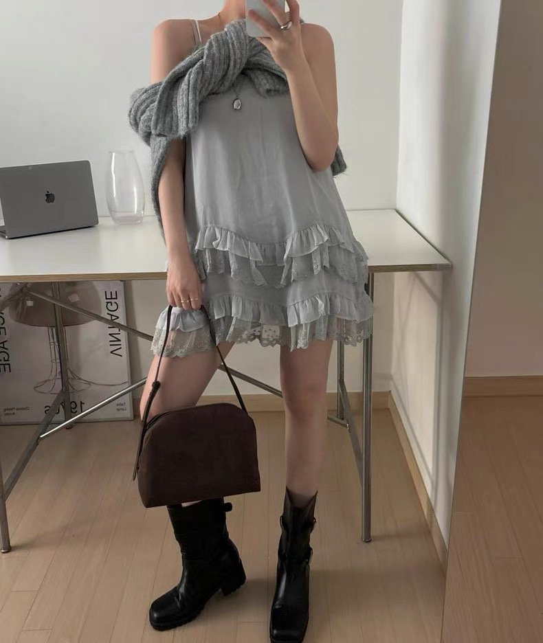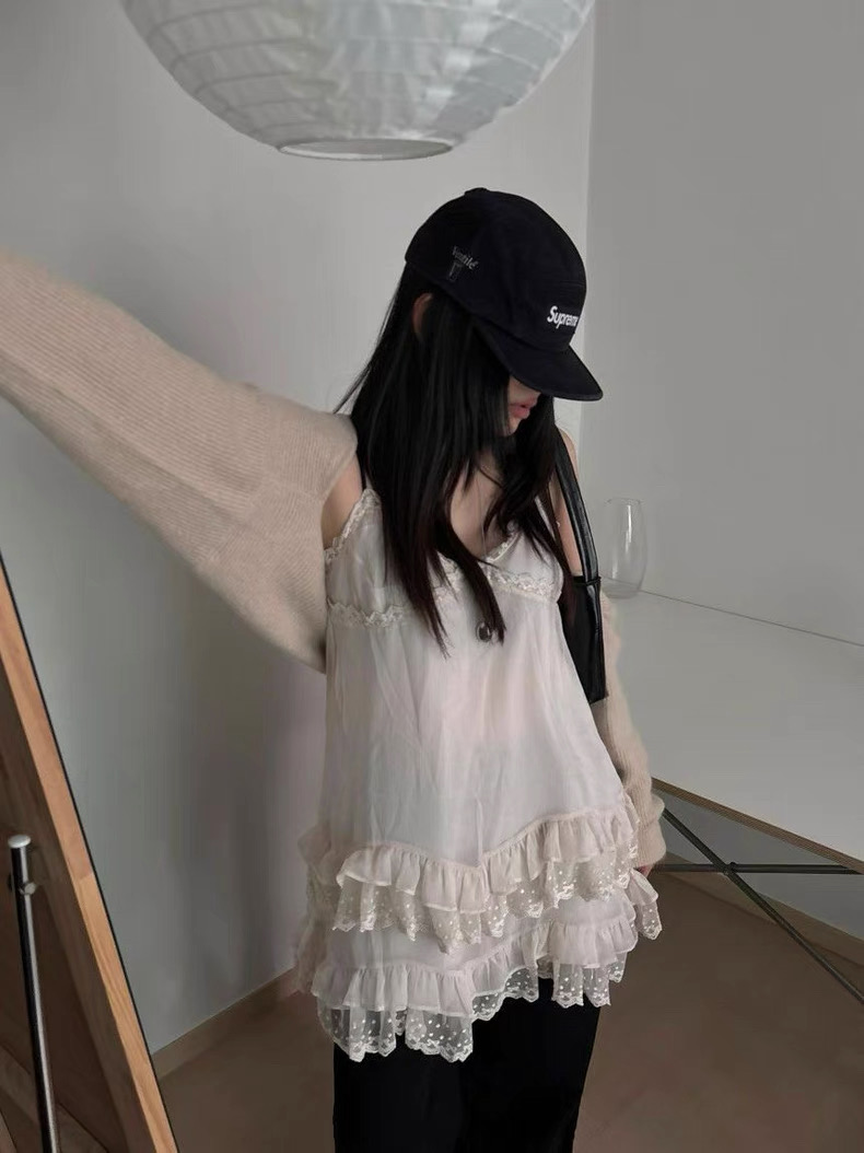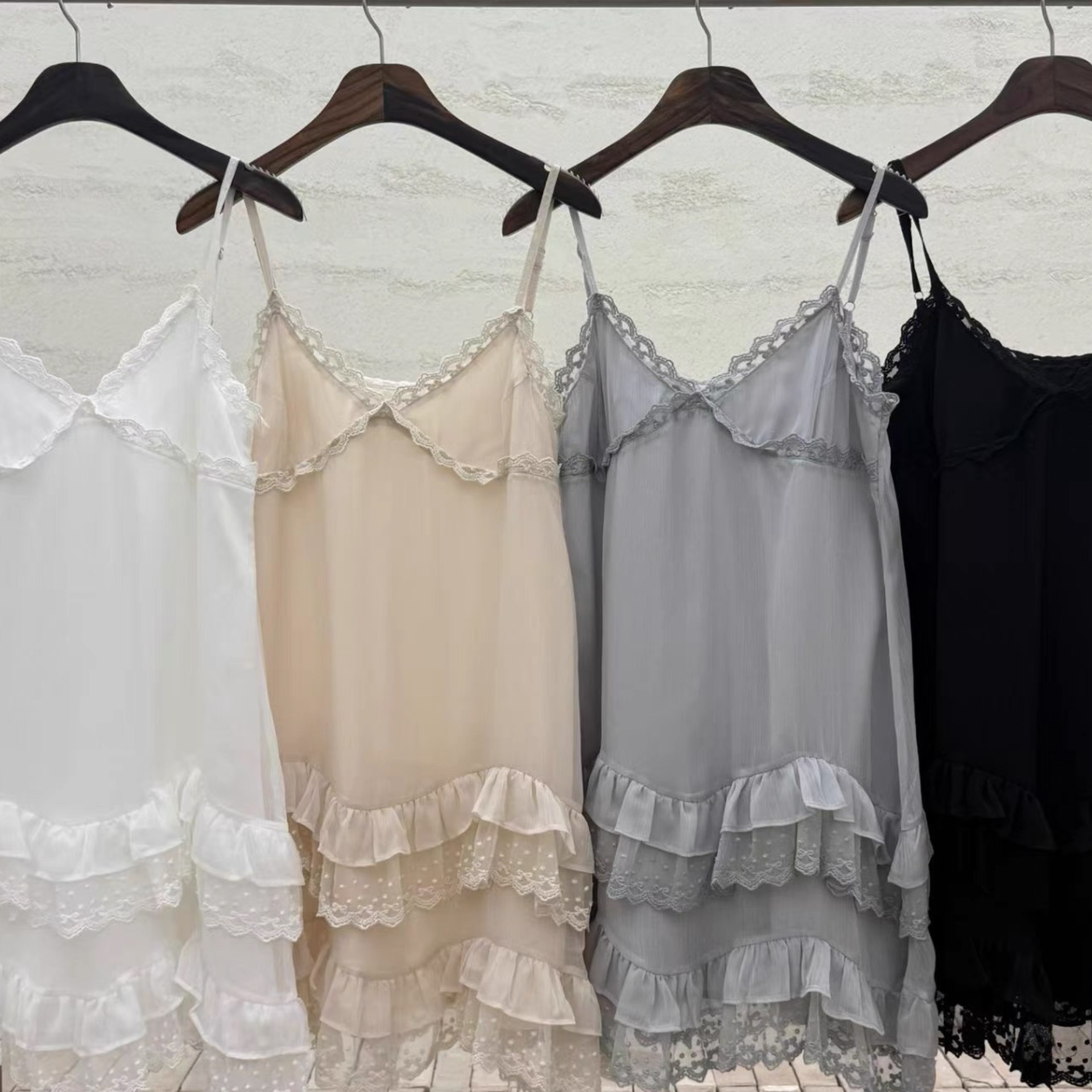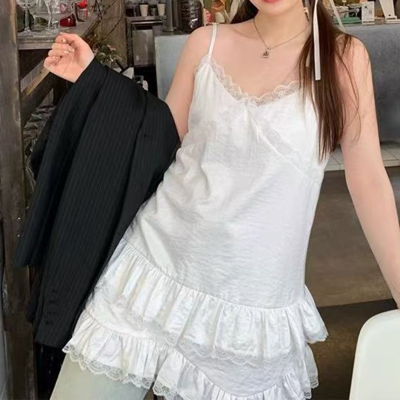 계단식 프릴 캐미솔 밑단 방귀 커튼 패치워크 민소매 만나는 조끼 슬립 케이크 드레스 맨위
