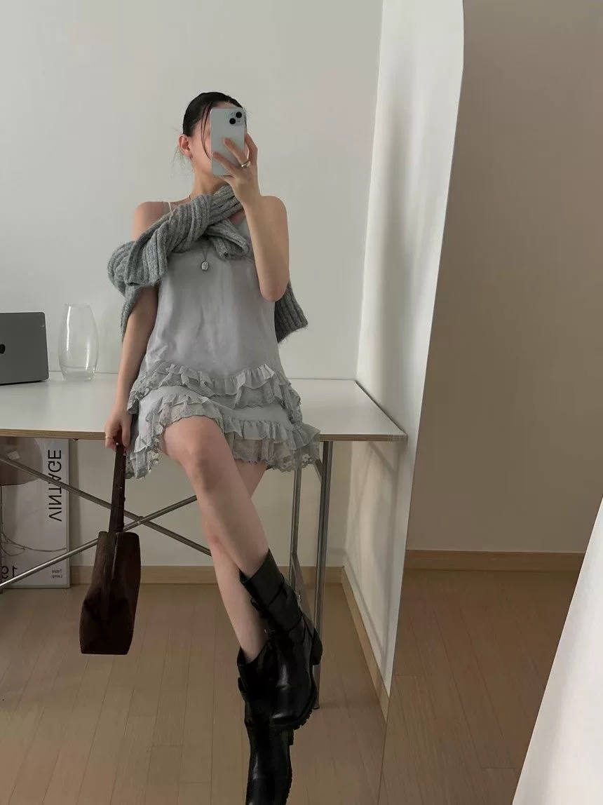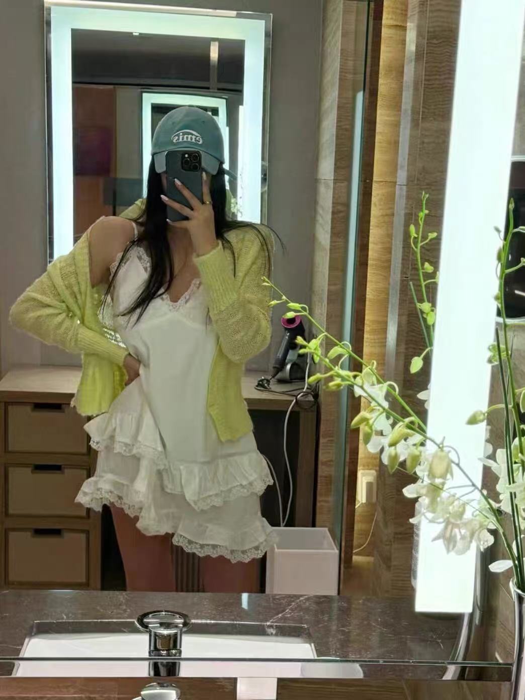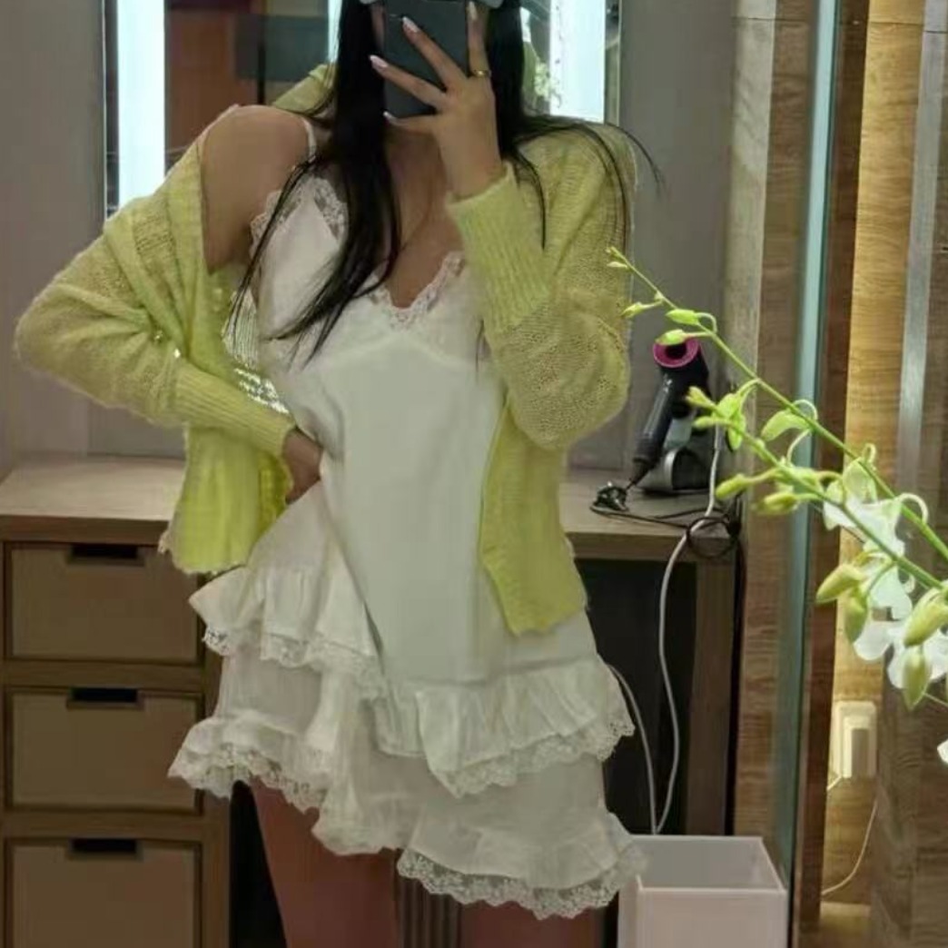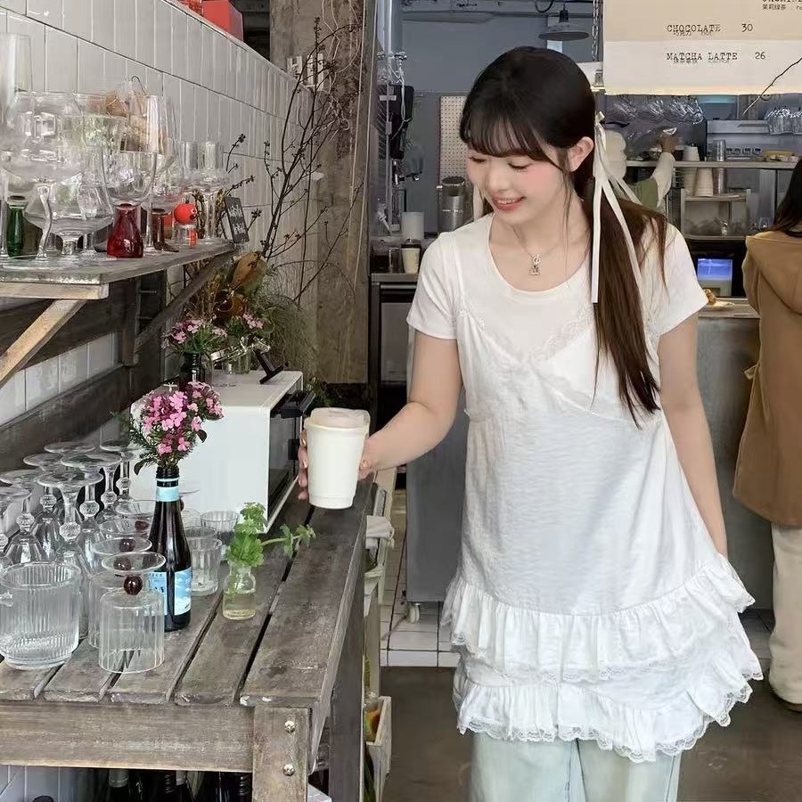 계단식 프릴 캐미솔 밑단 방귀 커튼 패치워크 민소매 만나는 조끼 슬립 케이크 드레스 맨위