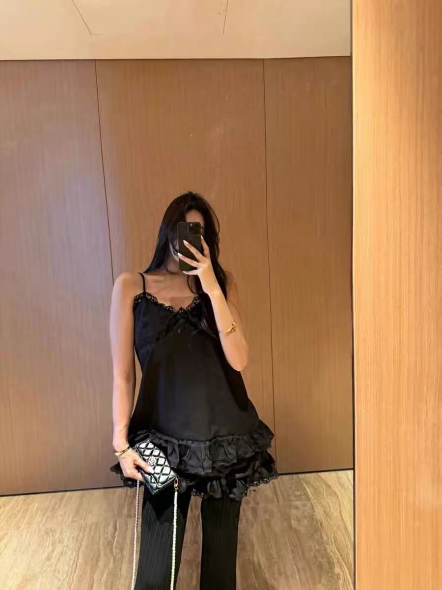fart shop 고양이 부서 아름다움 레이스 구슬 빛 새틴 섹시함 캐미솔 봄 여름 허리 수축 맨위