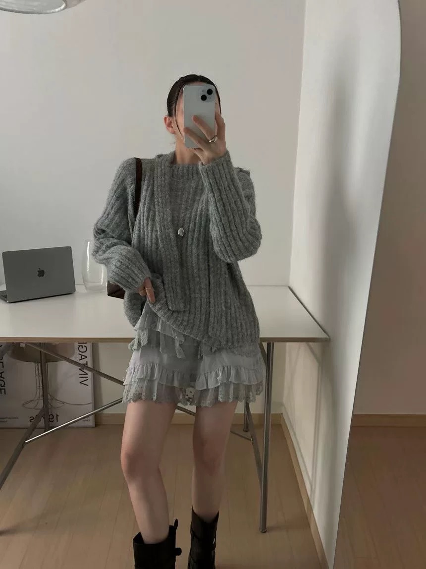 먼지 덩 덩 니트 행침 목 여성 드레스 2026 봄 새로운 섹시함 홀로우 아웃 타이트 스커트 허리 수축 치마