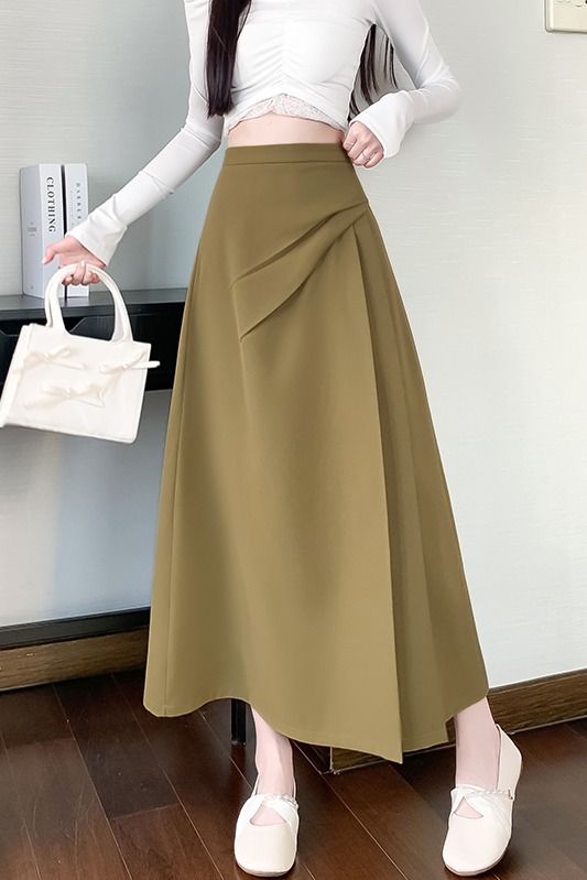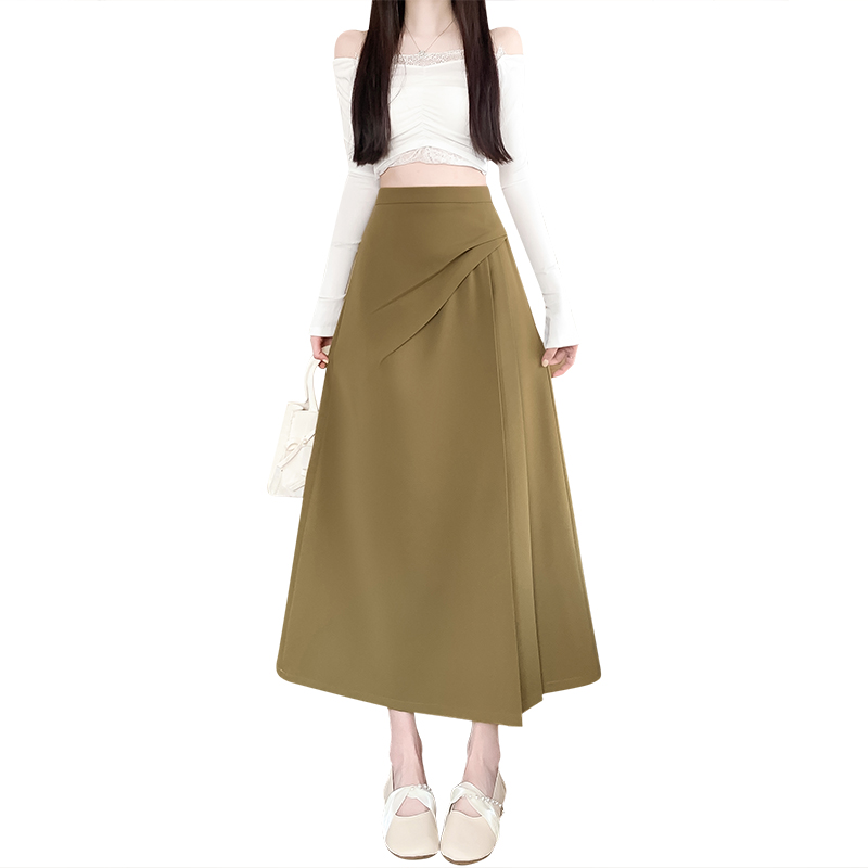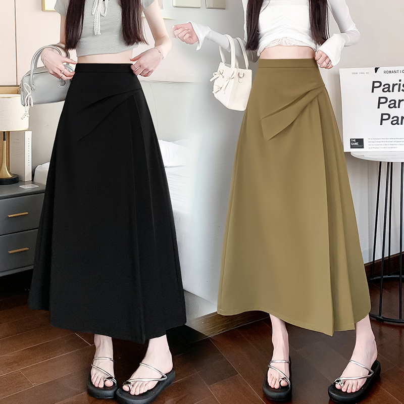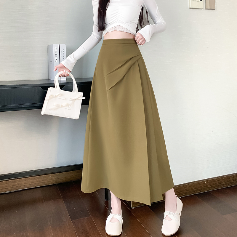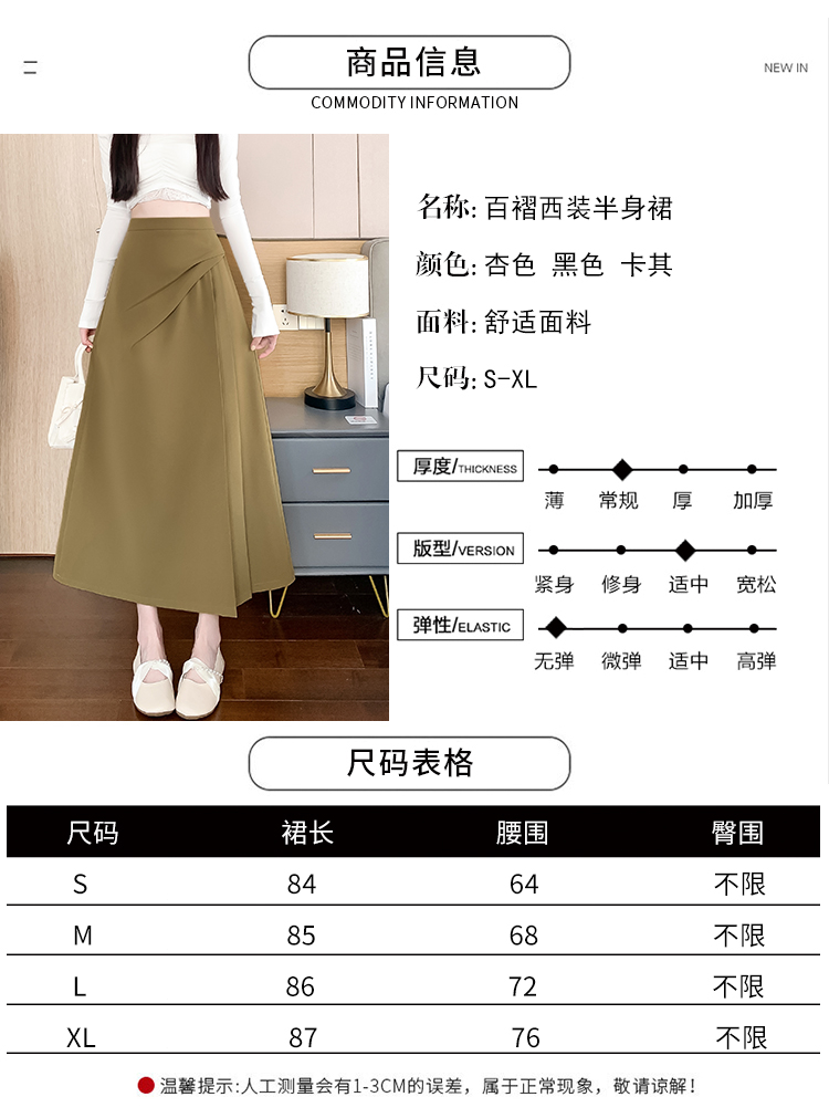 실사 비디오 하이웨이스트 슬림해 보이는 정장 반신 스커트 2026 봄 아모이 출퇴근 다용도 한국 스타일 중간 길이 A라인 스커트