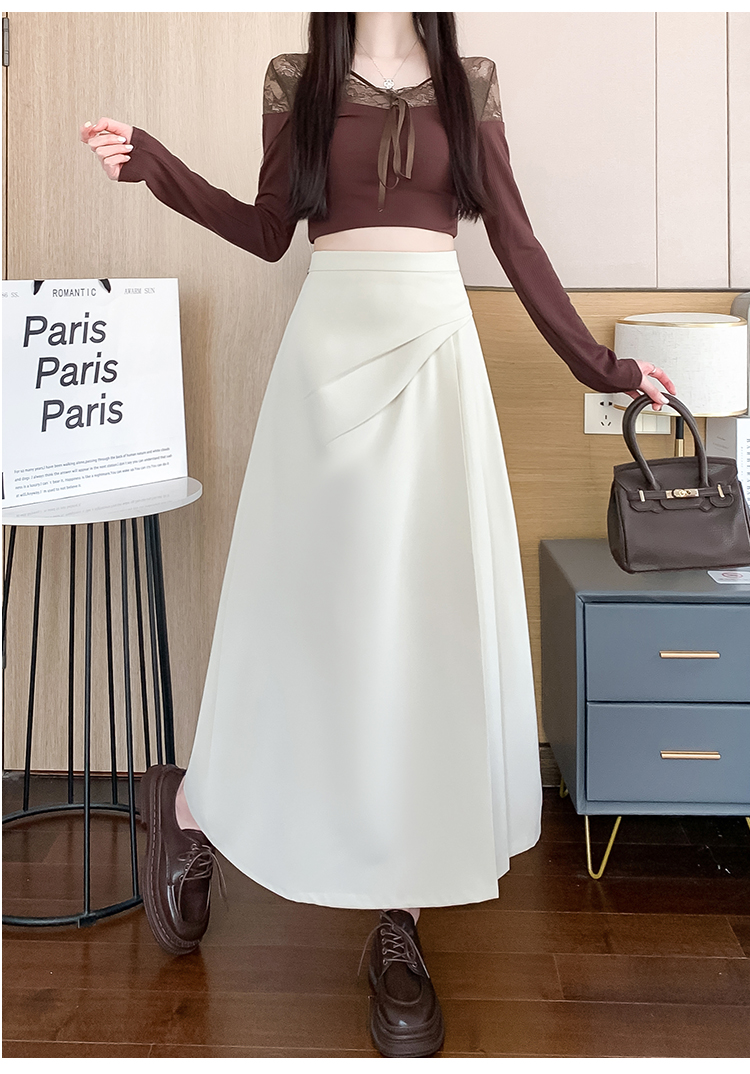 실사 화이트 쉬폰 반신 스커트 봄 여름 허리밴드 도루 센스 하이웨이스트 슬림해 보이는 큰 진자 플리츠 롱 코트 한 마디 롱 스커트