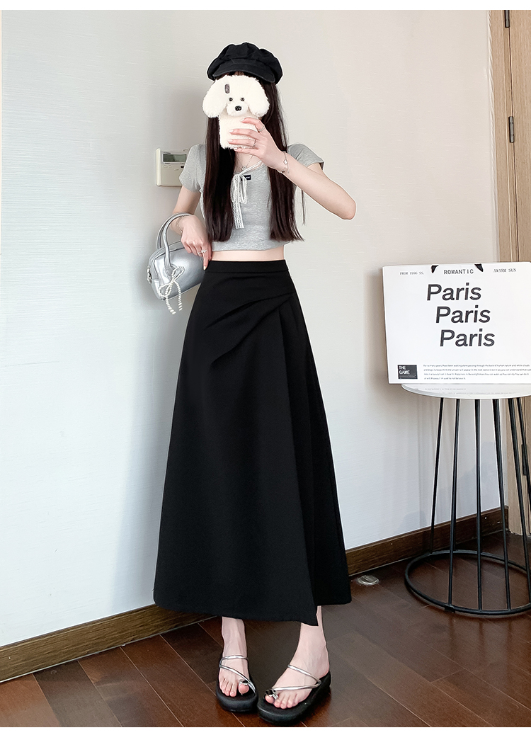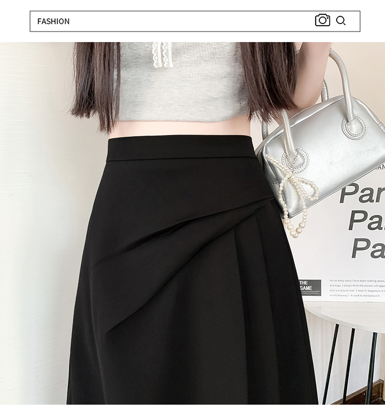 실사 비디오 하이웨이스트 트임 반신 스커트 2026 봄 여름 디자인 센스 작은 대중 치마 타이트 스커트 중간 길이 A라인 스커트