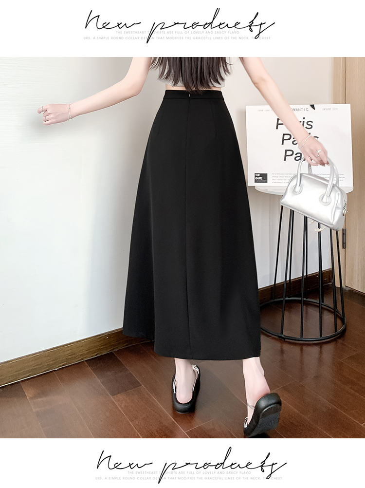 실사 비디오 단색 반신 스커트 봄 여름 2026 새로운 출퇴근 치마 트임 디자인 타이트 스커트 스트레이트 길다 치마