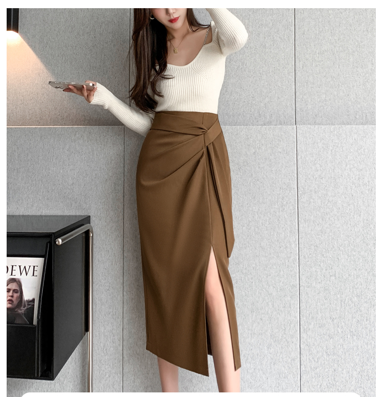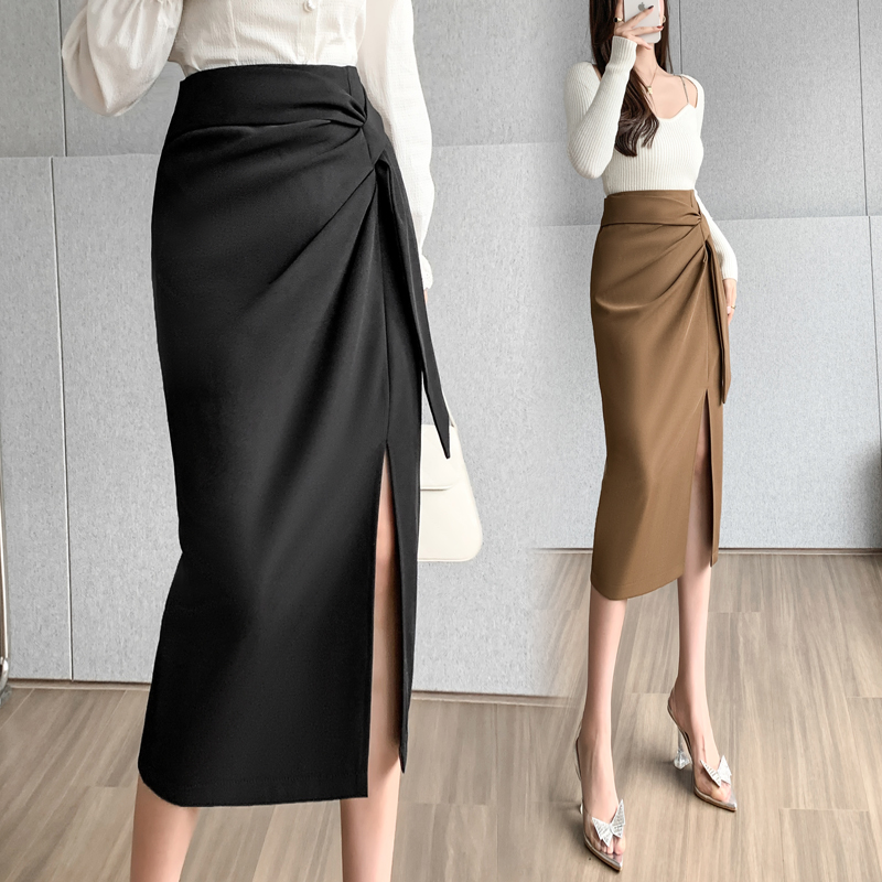 실사 비디오 단색 반신 스커트 봄 여름 2026 새로운 출퇴근 치마 트임 디자인 타이트 스커트 스트레이트 길다 치마