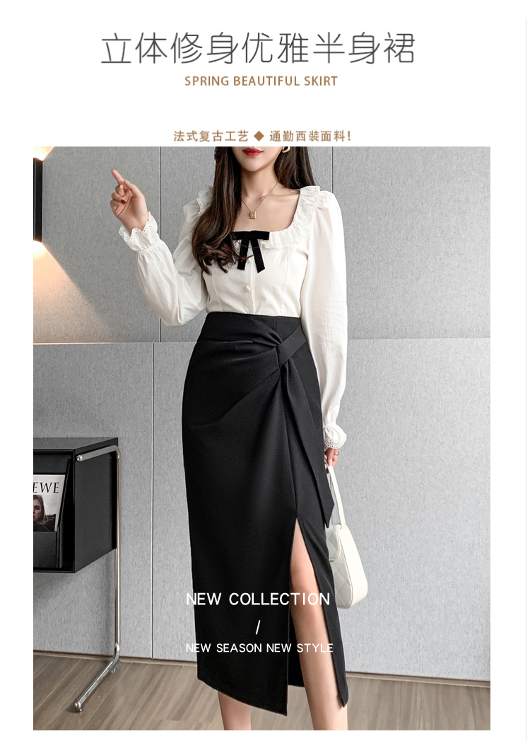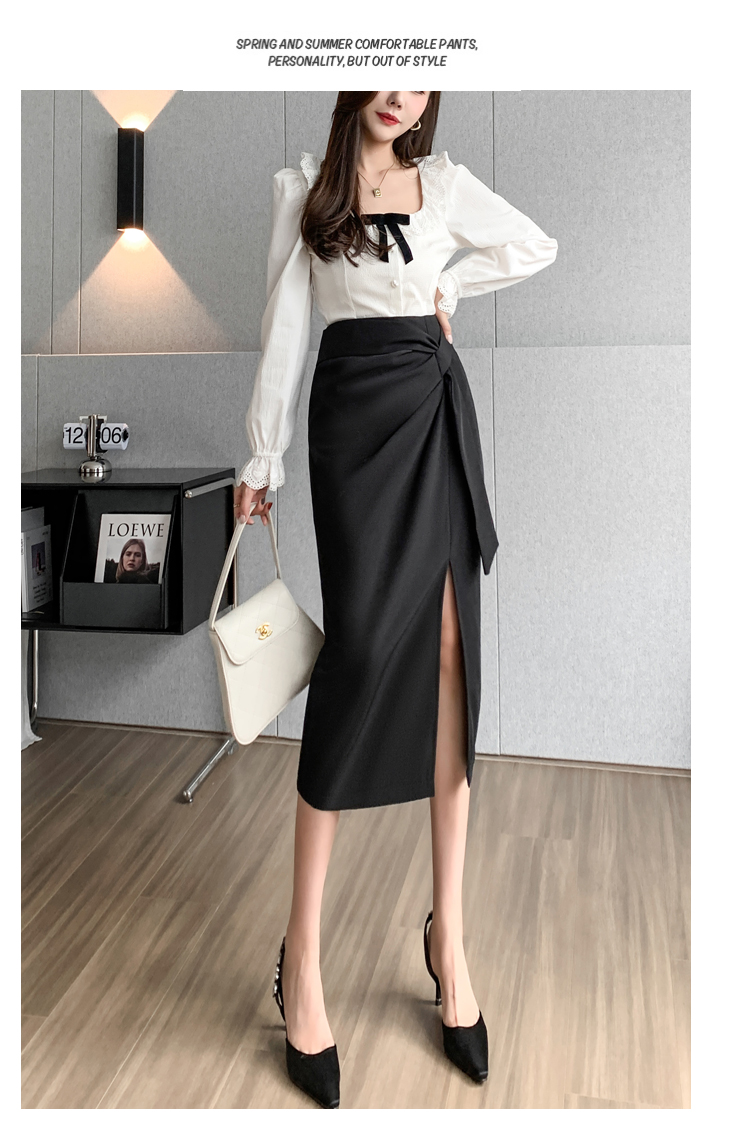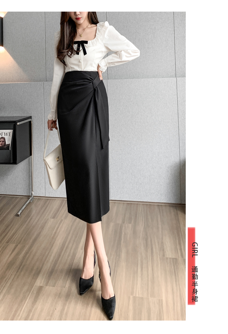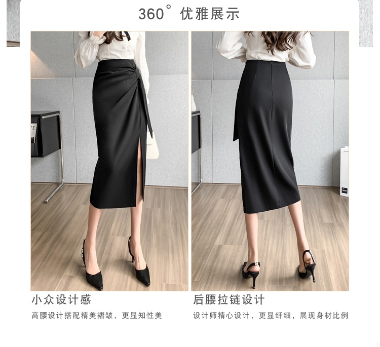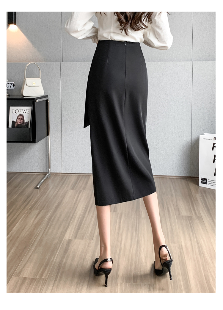 실사 비디오 불규칙 트임 정장 반신 스커트 경력 검정색 출퇴근 하이웨이스트 타이트 스커트 레이스업 한 마디 롱 스커트