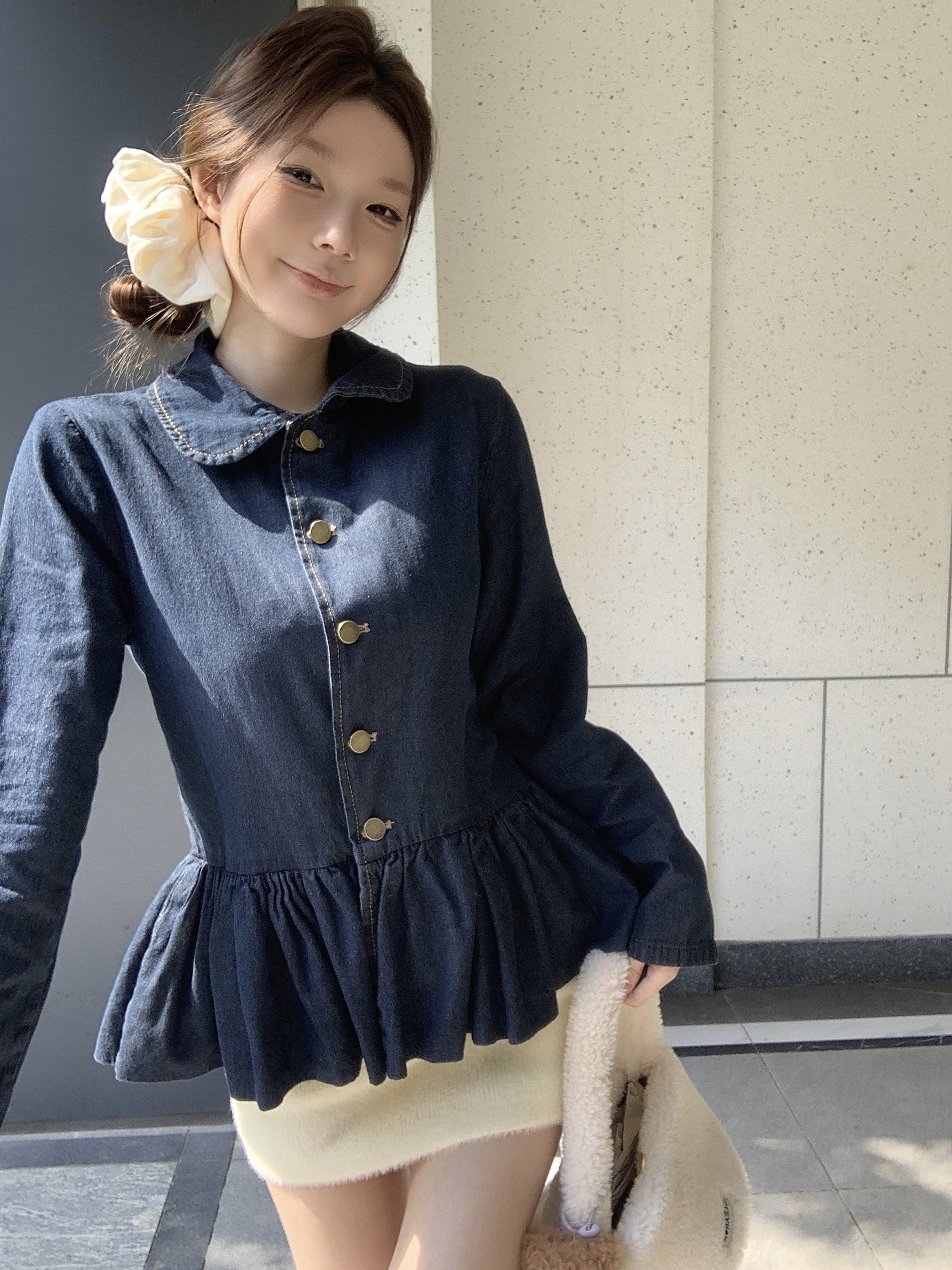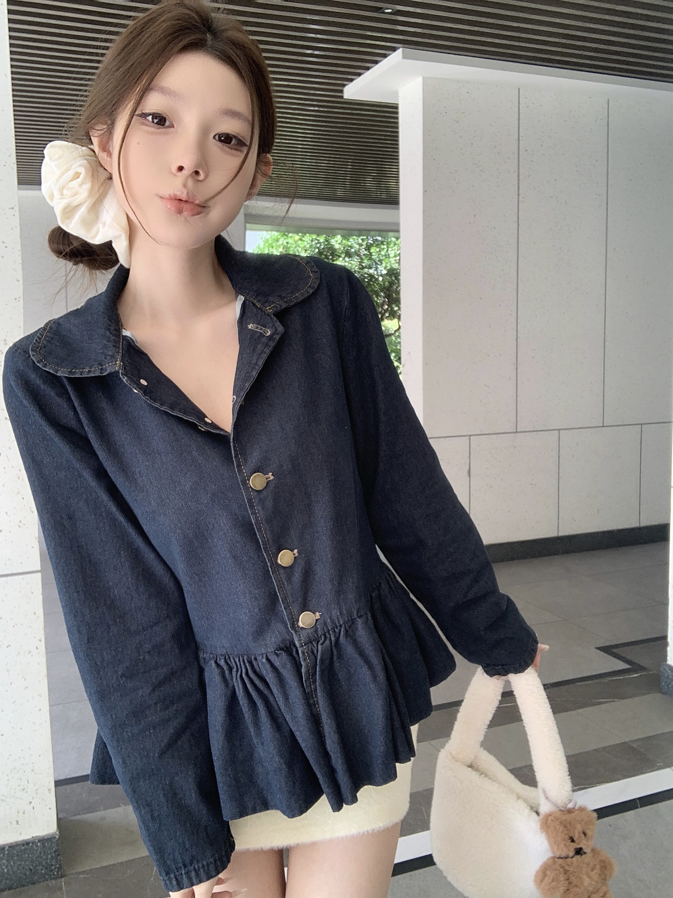 실사 정가 데님 재킷 레트로 인형 셔츠 봄 드레스 재킷 긴팔 다용도 품격 작은 키 인형 셔츠