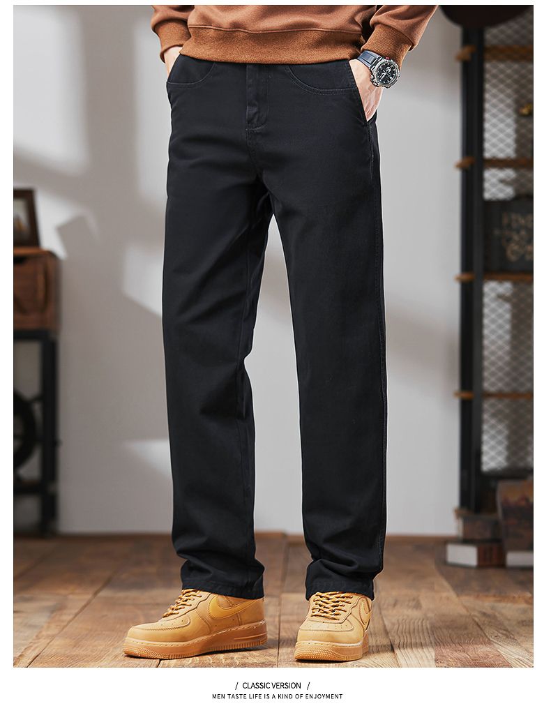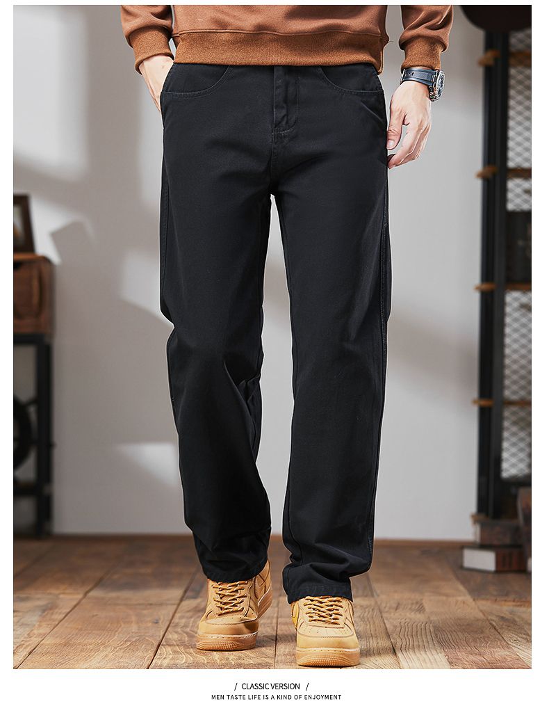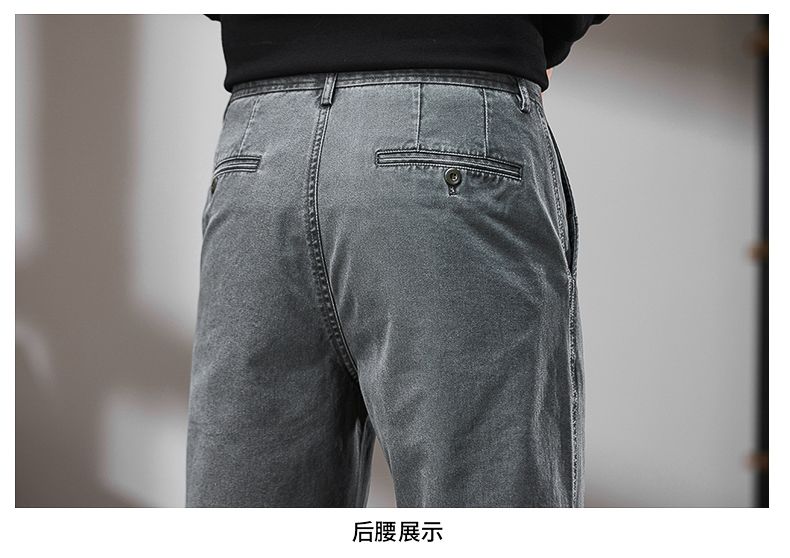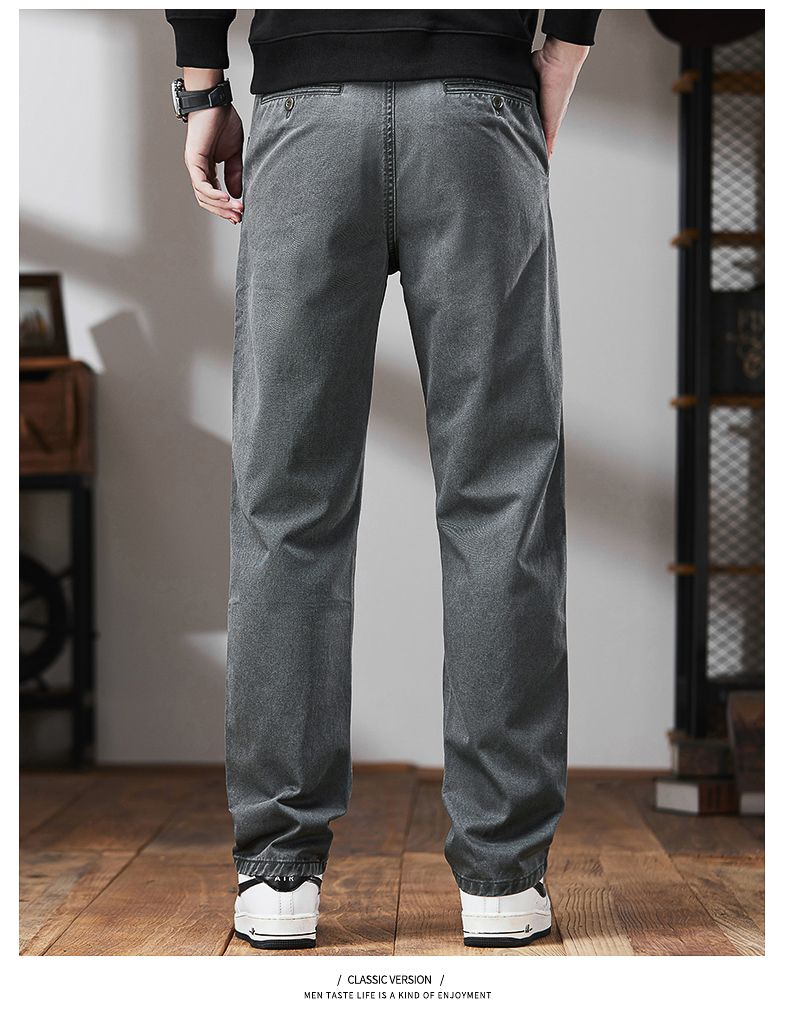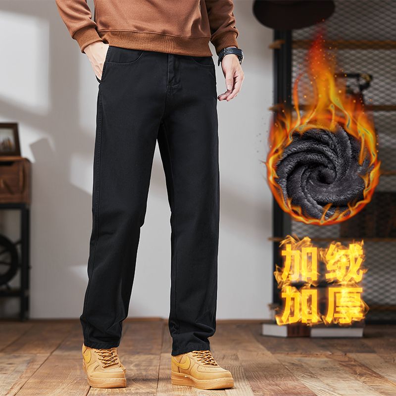 겨울 털이 있고 두꺼운 보온 빛 비즈니스 남성 캐주얼 바지 스트레이트 루즈핏 순면 기타 주머니 워싱 긴 바지