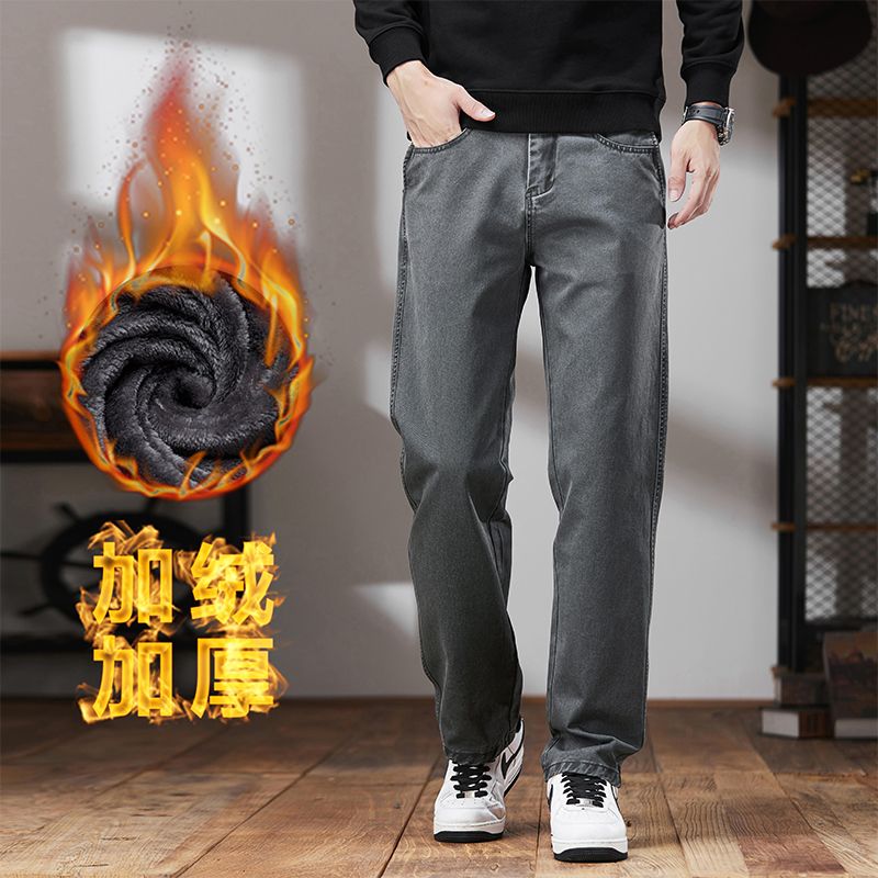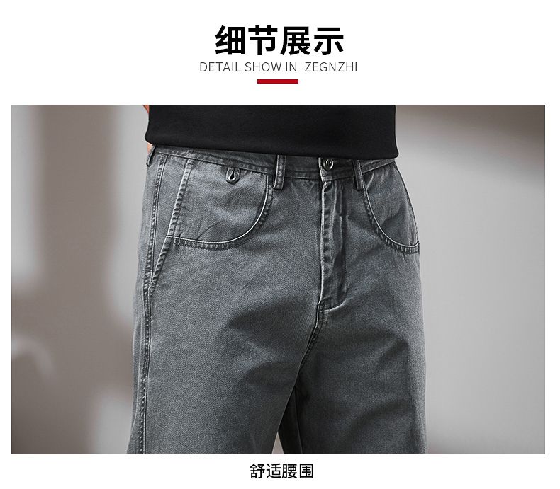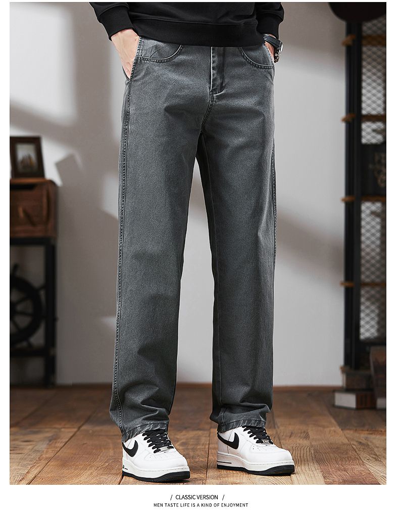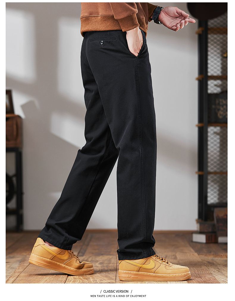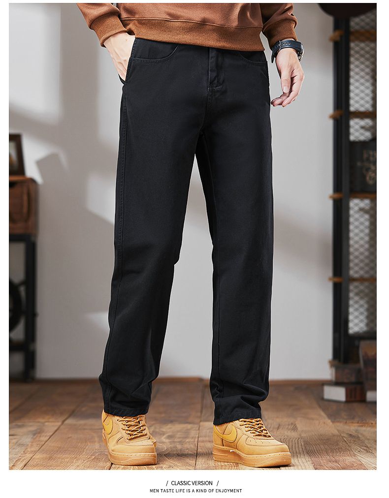 겨울 털이 있고 두꺼운 보온 빛 비즈니스 남성 캐주얼 바지 스트레이트 루즈핏 순면 기타 주머니 워싱 긴 바지