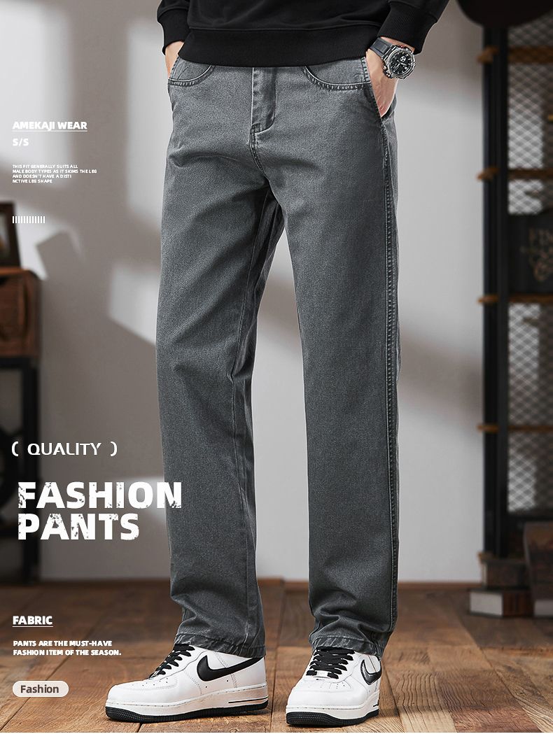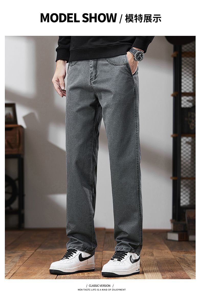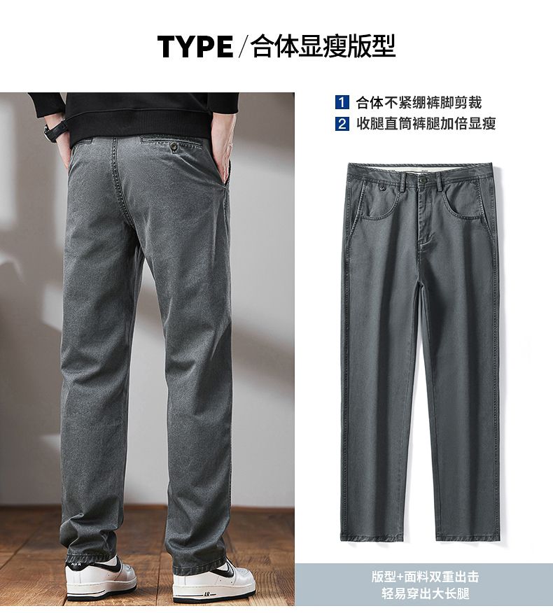 실사 2026 봄 여름 남성 비즈니스 캐주얼 롱 바지 스트레이트 루즈핏 신축성 몸매 가꾸기 남성용 바지 트렌디