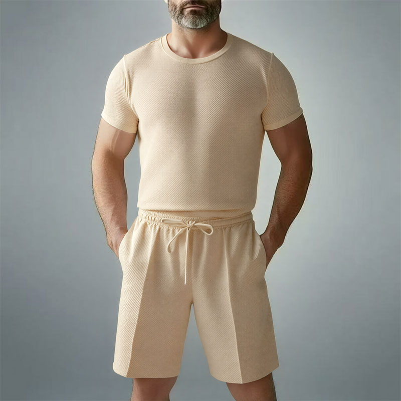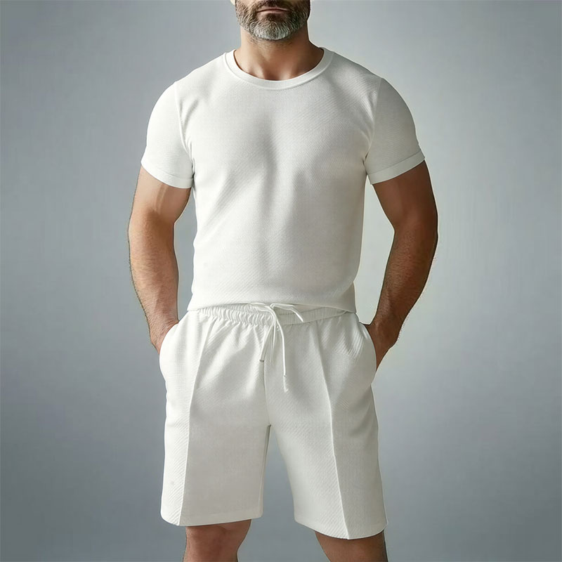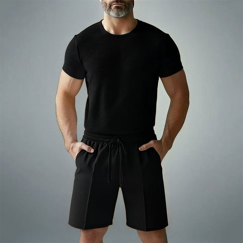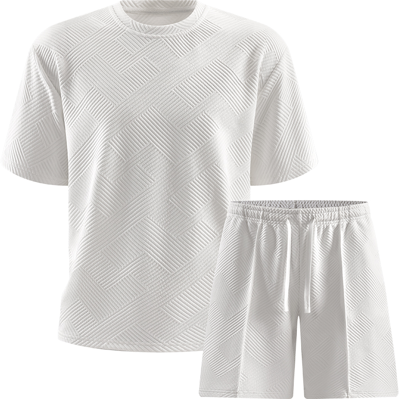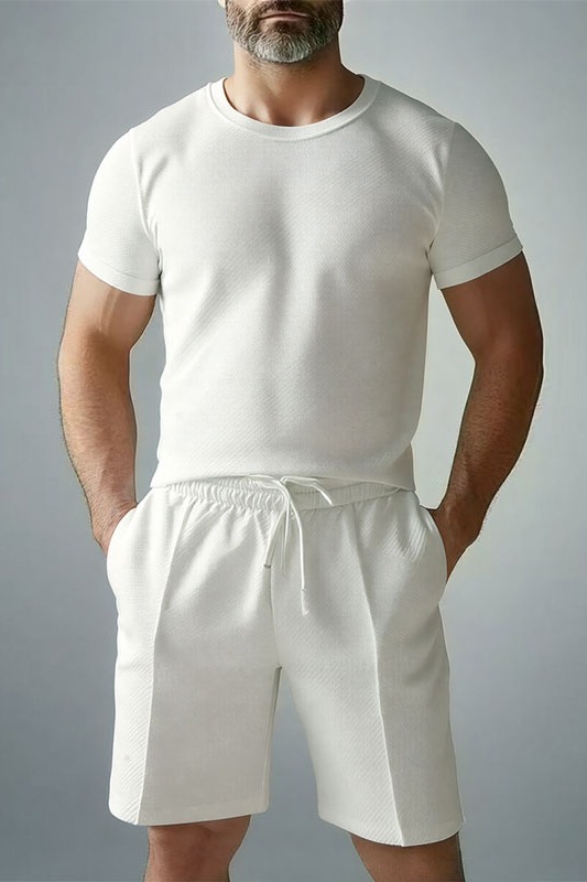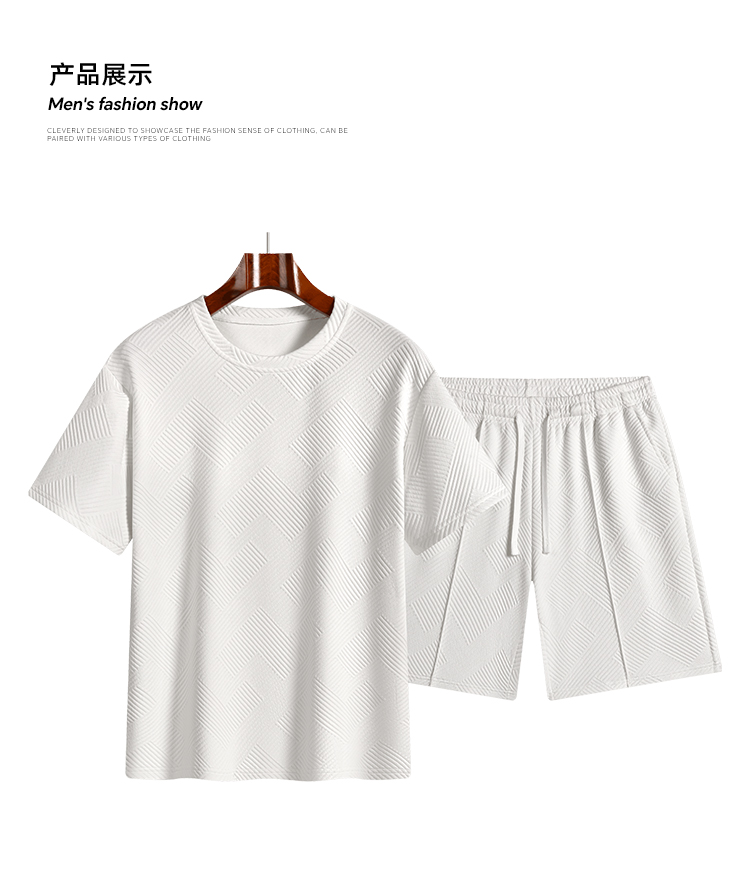 2026 여름 국경 간 아마존 라운드 넥 티셔츠 스포츠 슈트 남성 캐주얼 반팔 반바지 투피스 세트 새로운