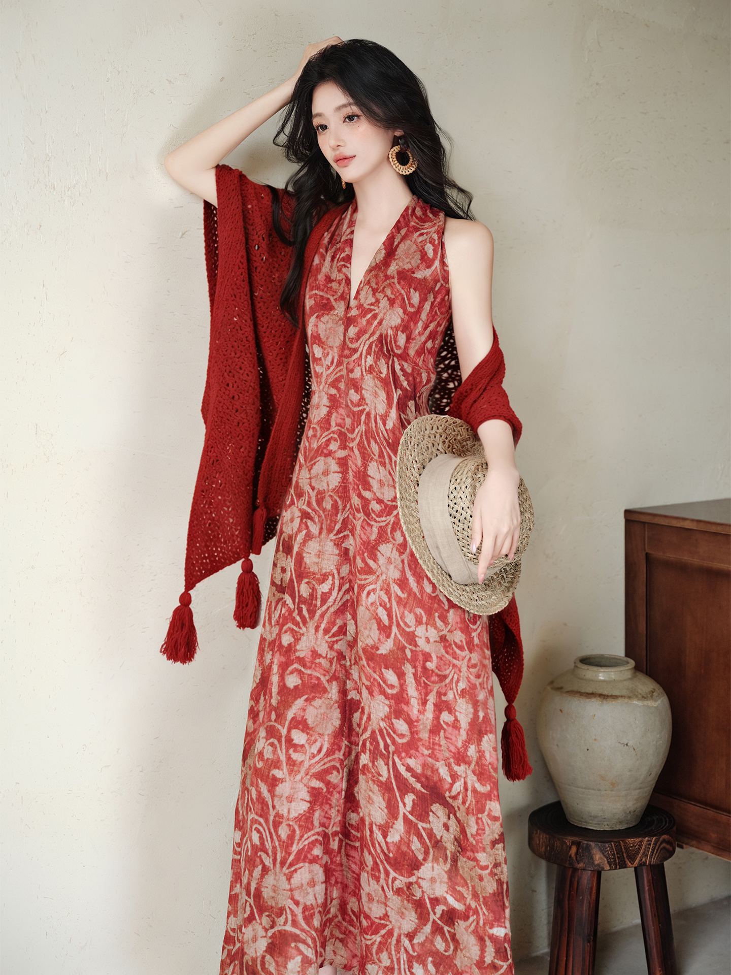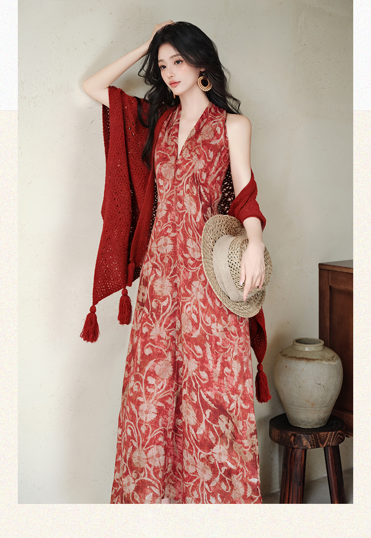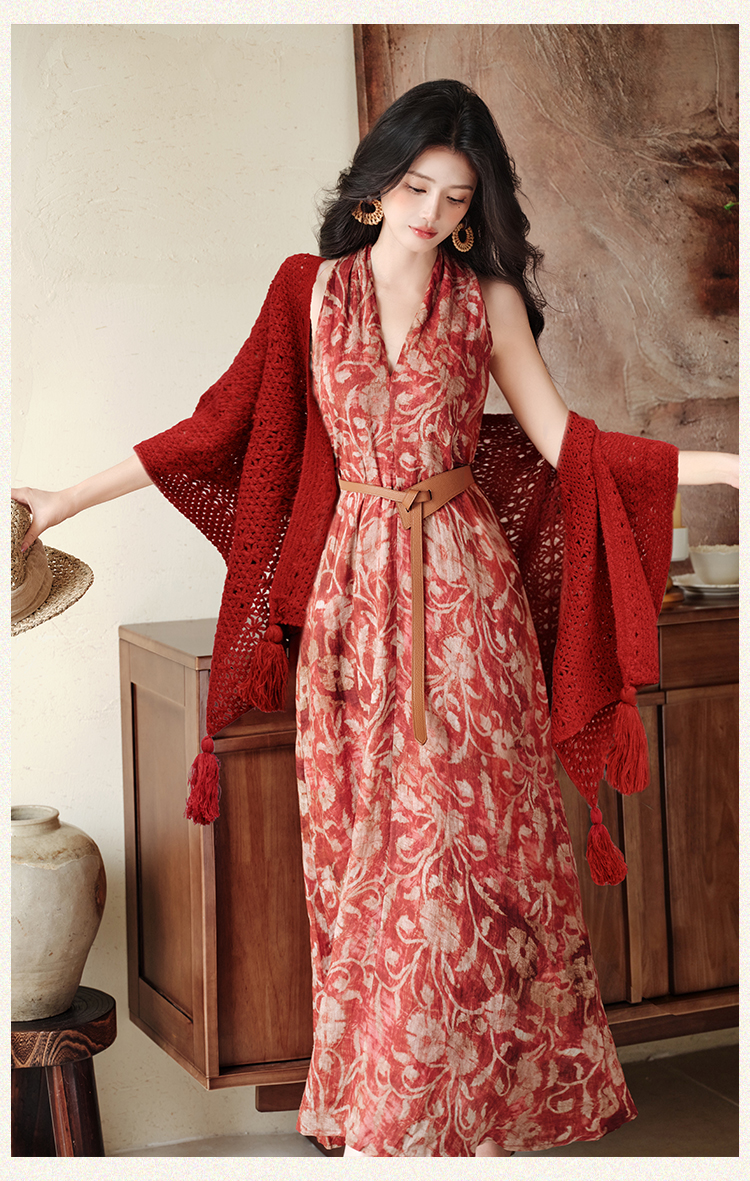 언어 그리스어 실사 빨간색 튜브탑 코디 반신 스커트 자외선 차단 재킷 휴가 롱 스커트 세트