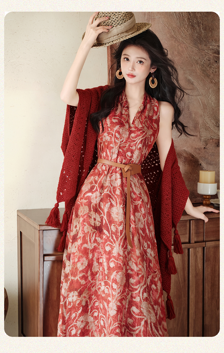 언어 그리스어 실사 휴가 바람 슬립 드레스 코디 재킷 투피스 세트 세트 드레스 일상 웨어러블 벨트 보내기