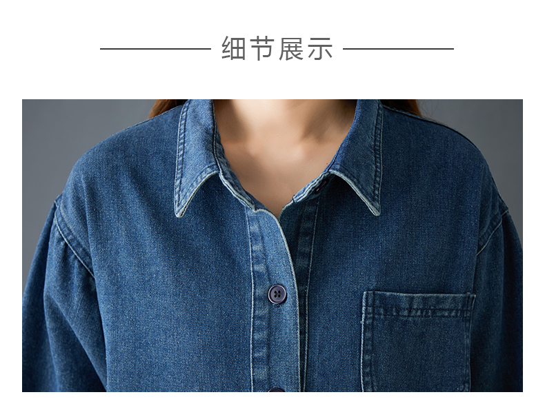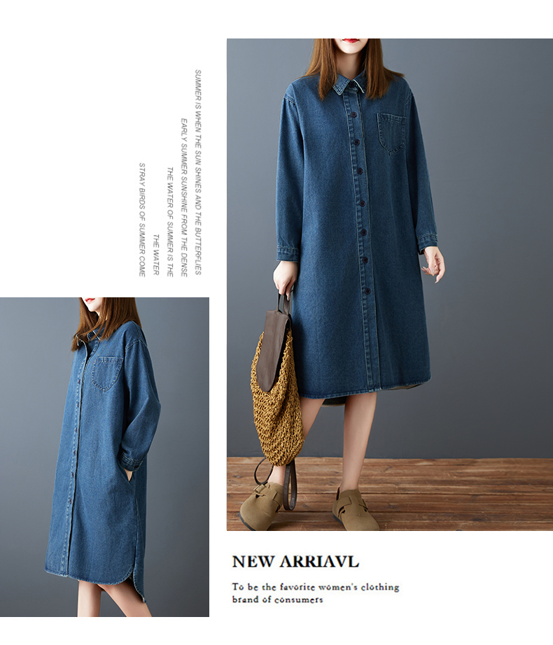 실사 2026 봄 한국 스타일 새로운 빅 사이즈 셔츠 드레스 루즈핏 레트로 긴팔 폴로 칼라 슬림해 보이는 데님 드레스
