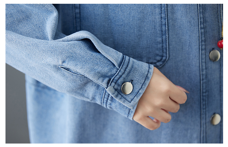 질량 2026 봄 새로운 레트로 품격 긴팔 루즈핏 슬림해 보이는 캐주얼 셔츠 롱 스커트 데님 드레스