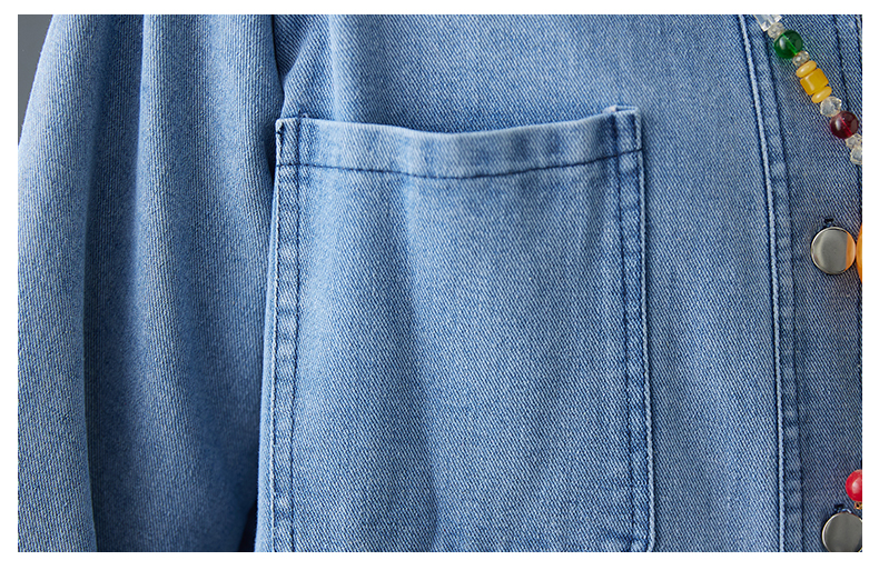 2026 봄 새로운 한국 스타일 문예 빅 사이즈 루즈핏 패치워크 패치 스트라이프 주머니 데님 셔츠 여성 셔츠