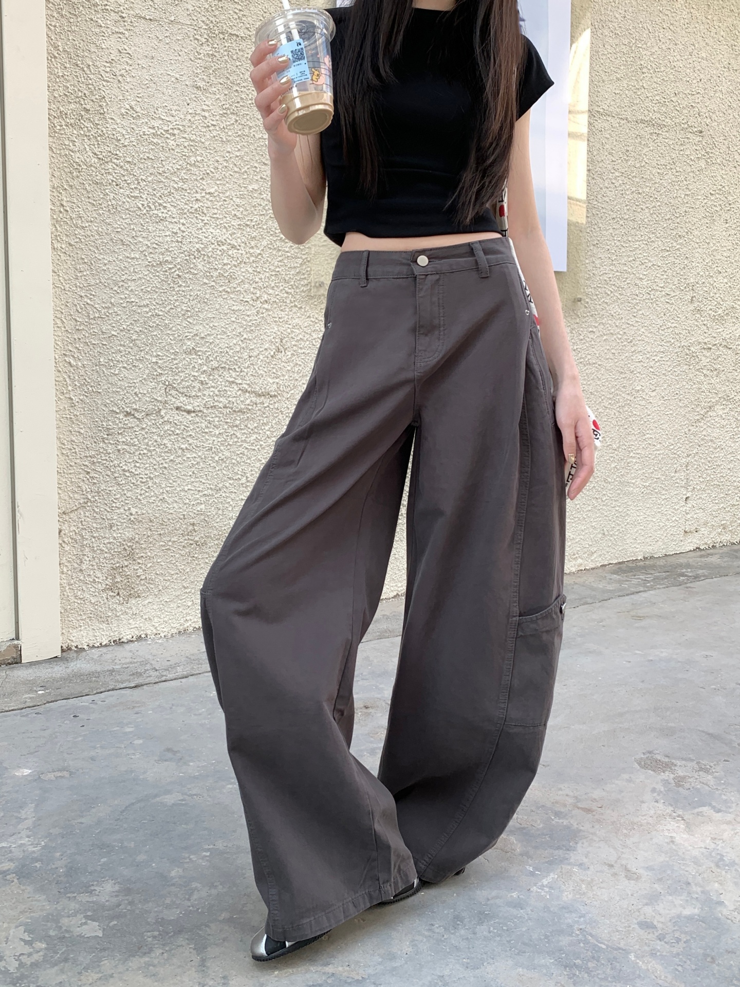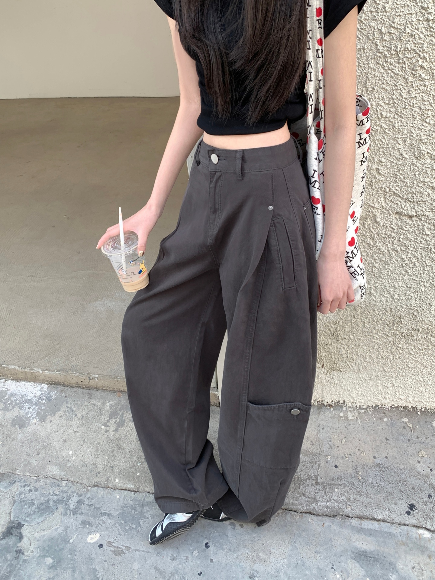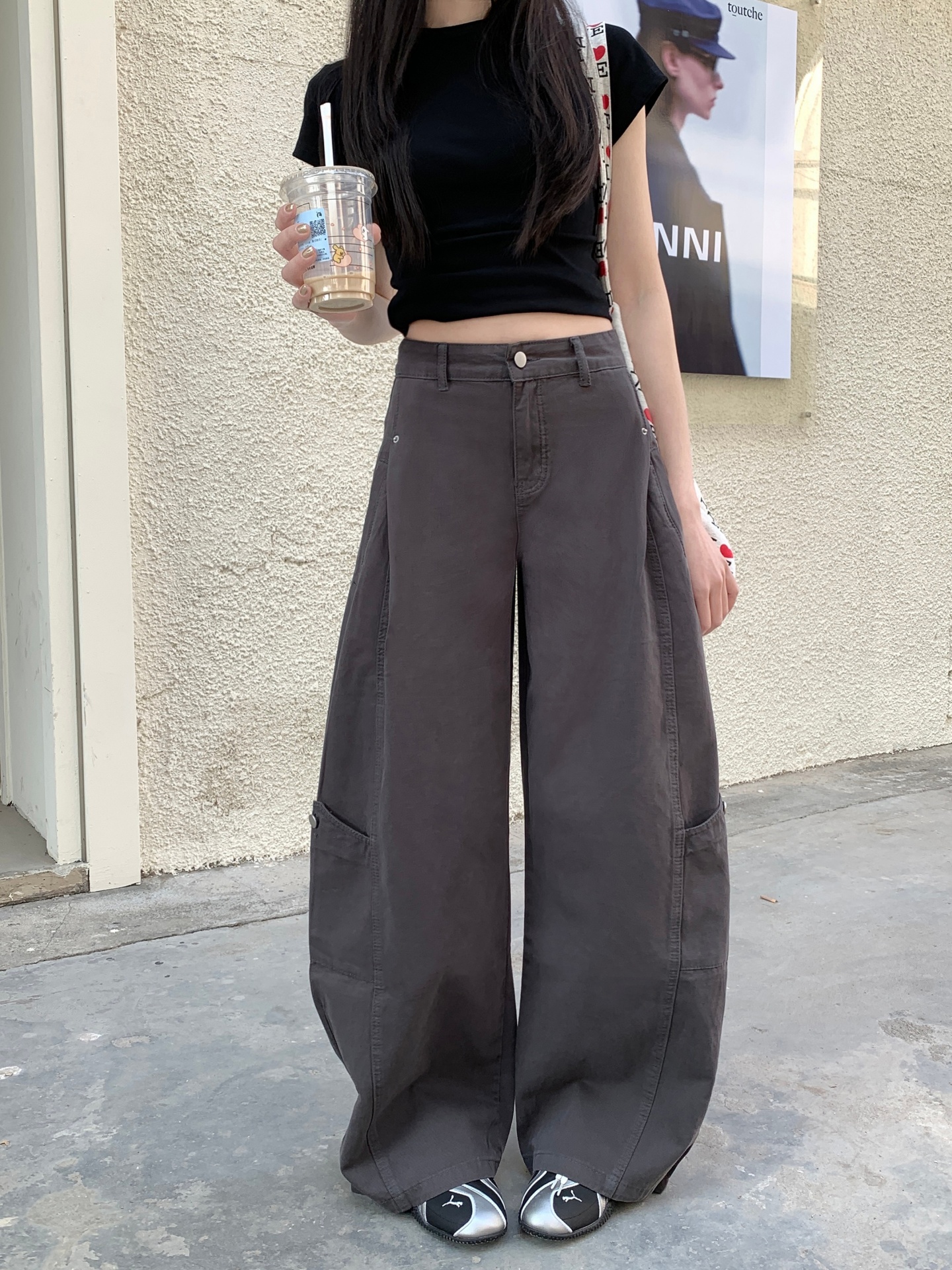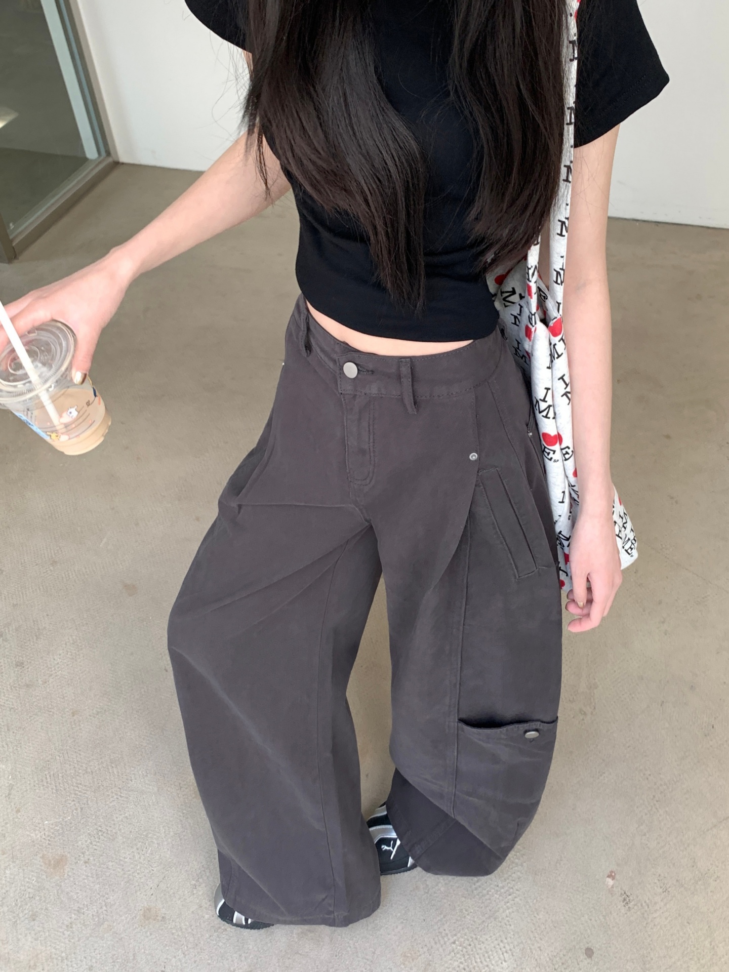 열세 개 품질 로우 웨이스트 루즈핏 도루 센스 캐주얼 워크웨어 넓은 다리 청바지