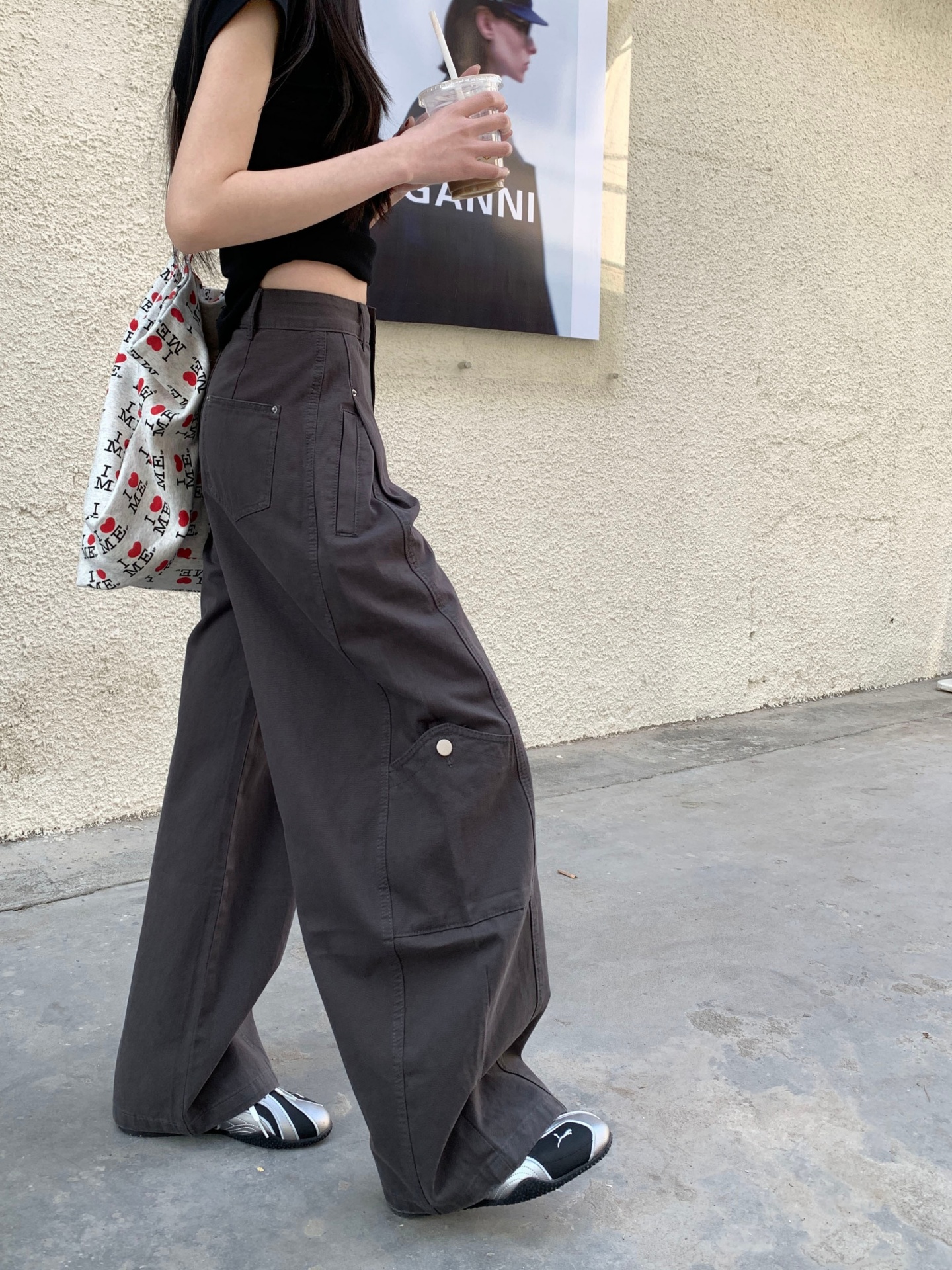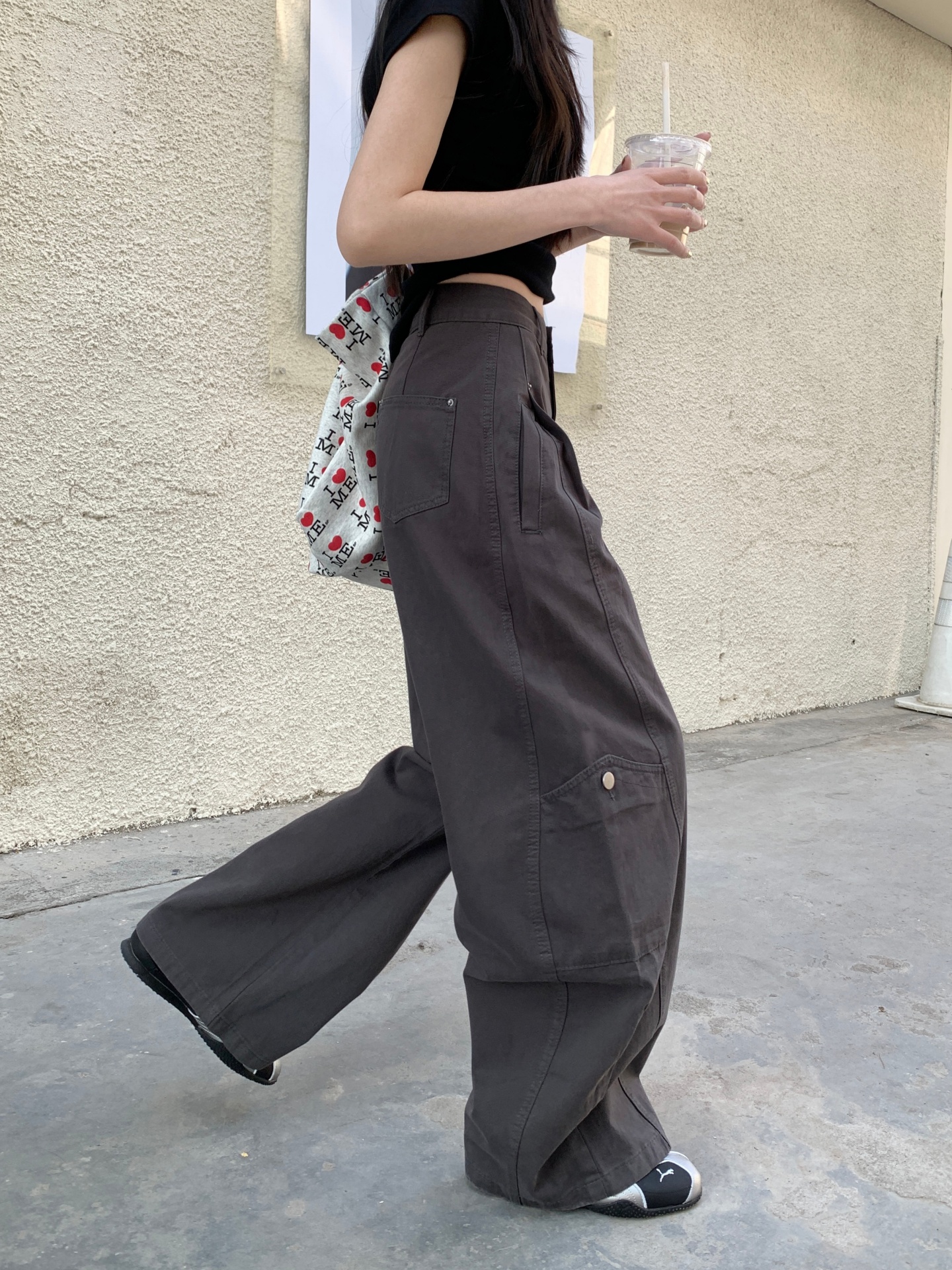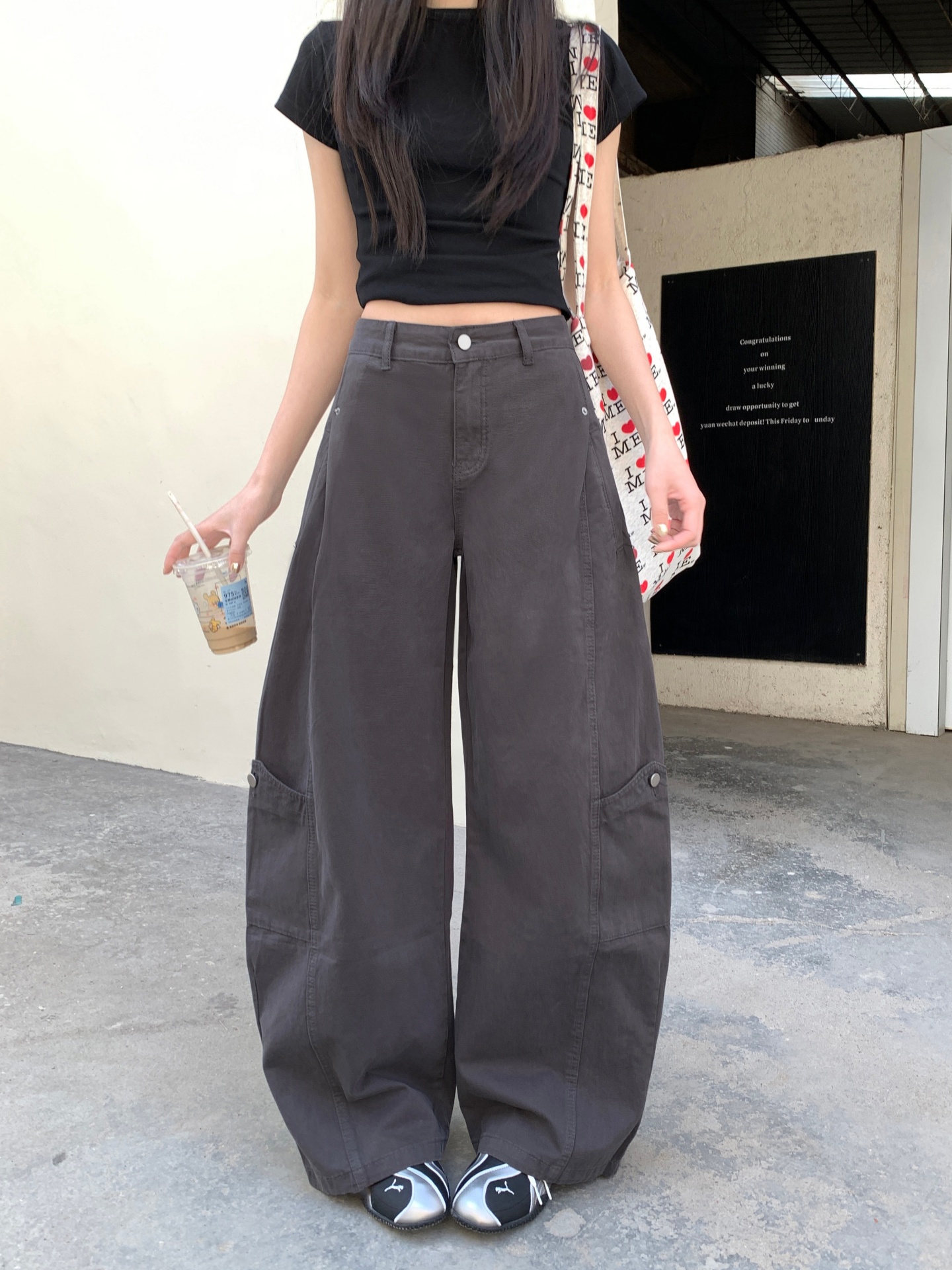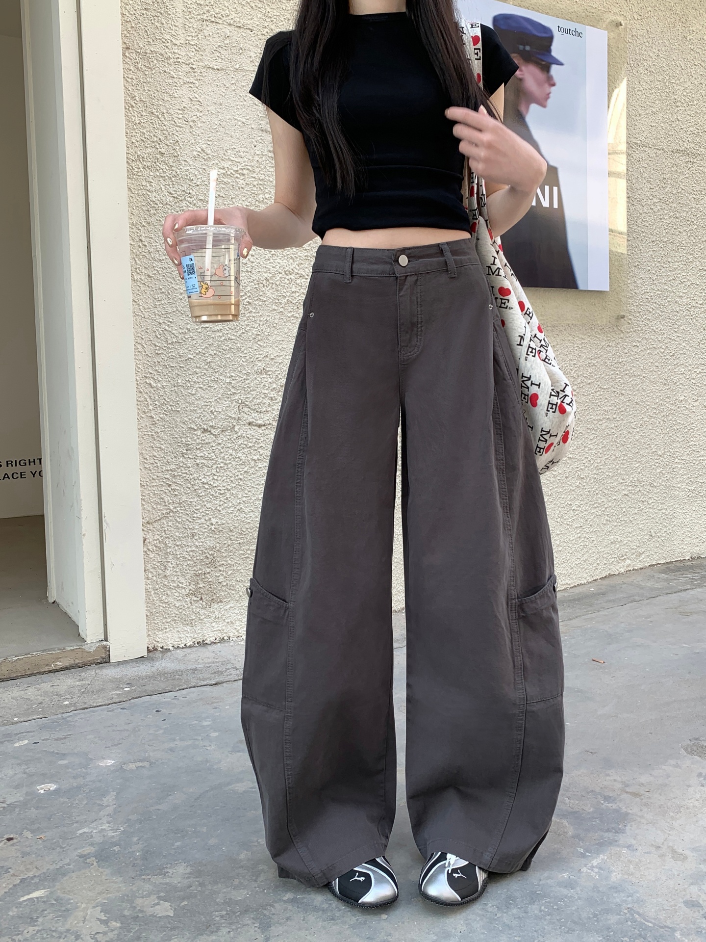 열세 개 품질 로우 웨이스트 루즈핏 도루 센스 캐주얼 워크웨어 넓은 다리 청바지
