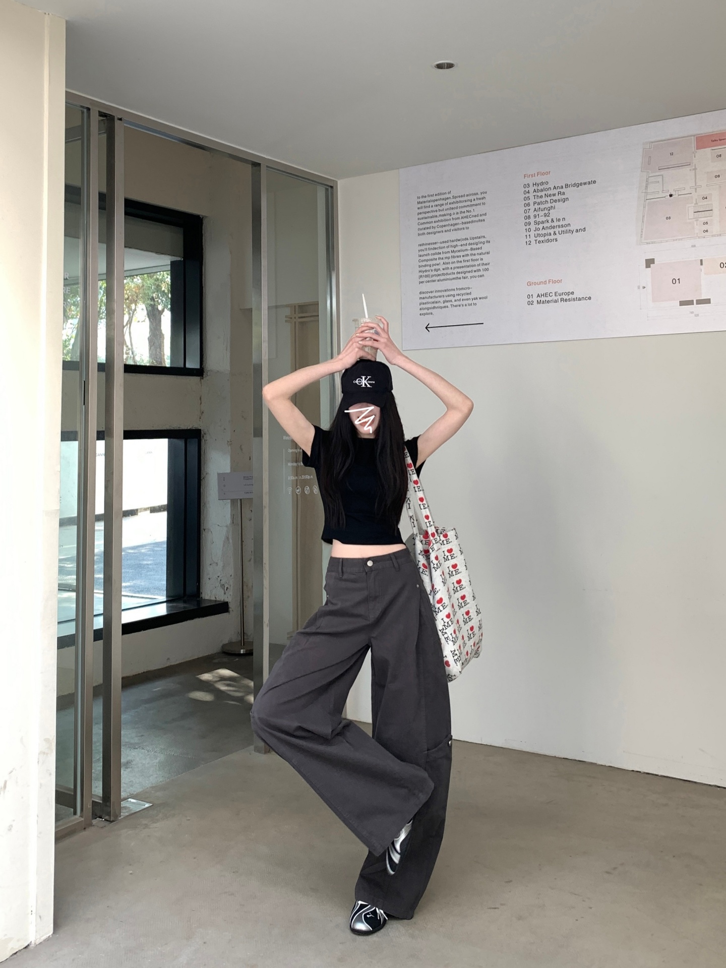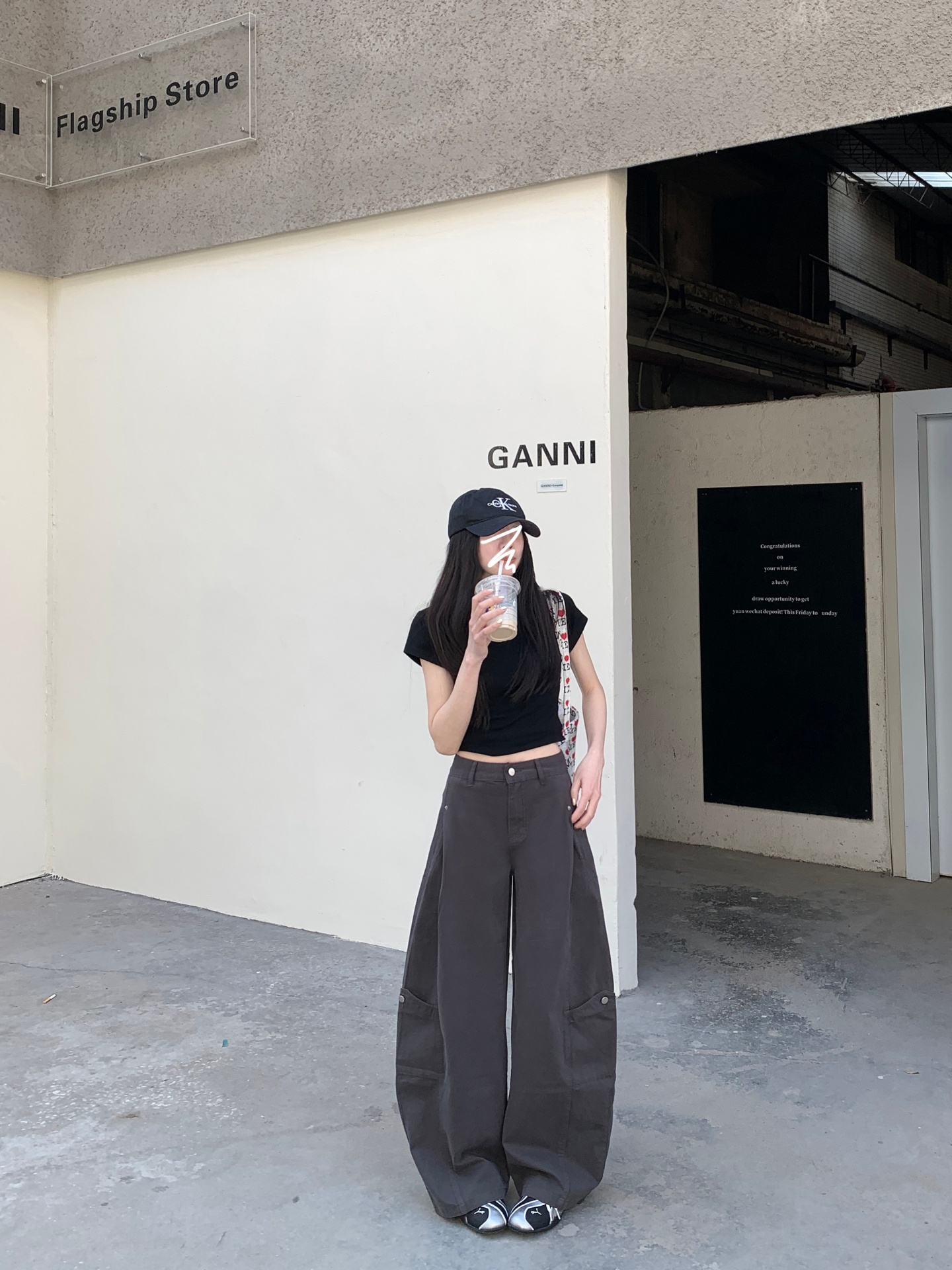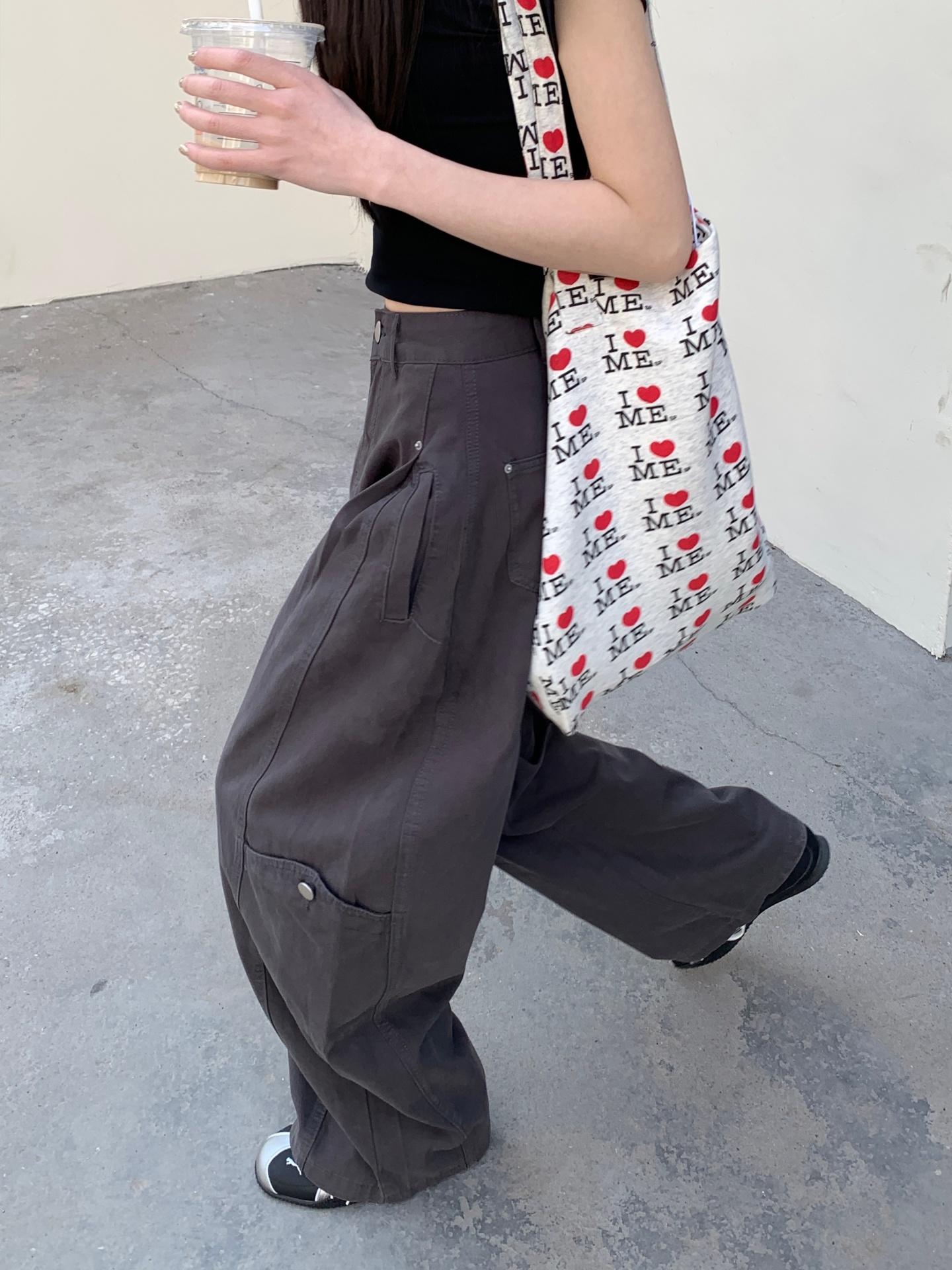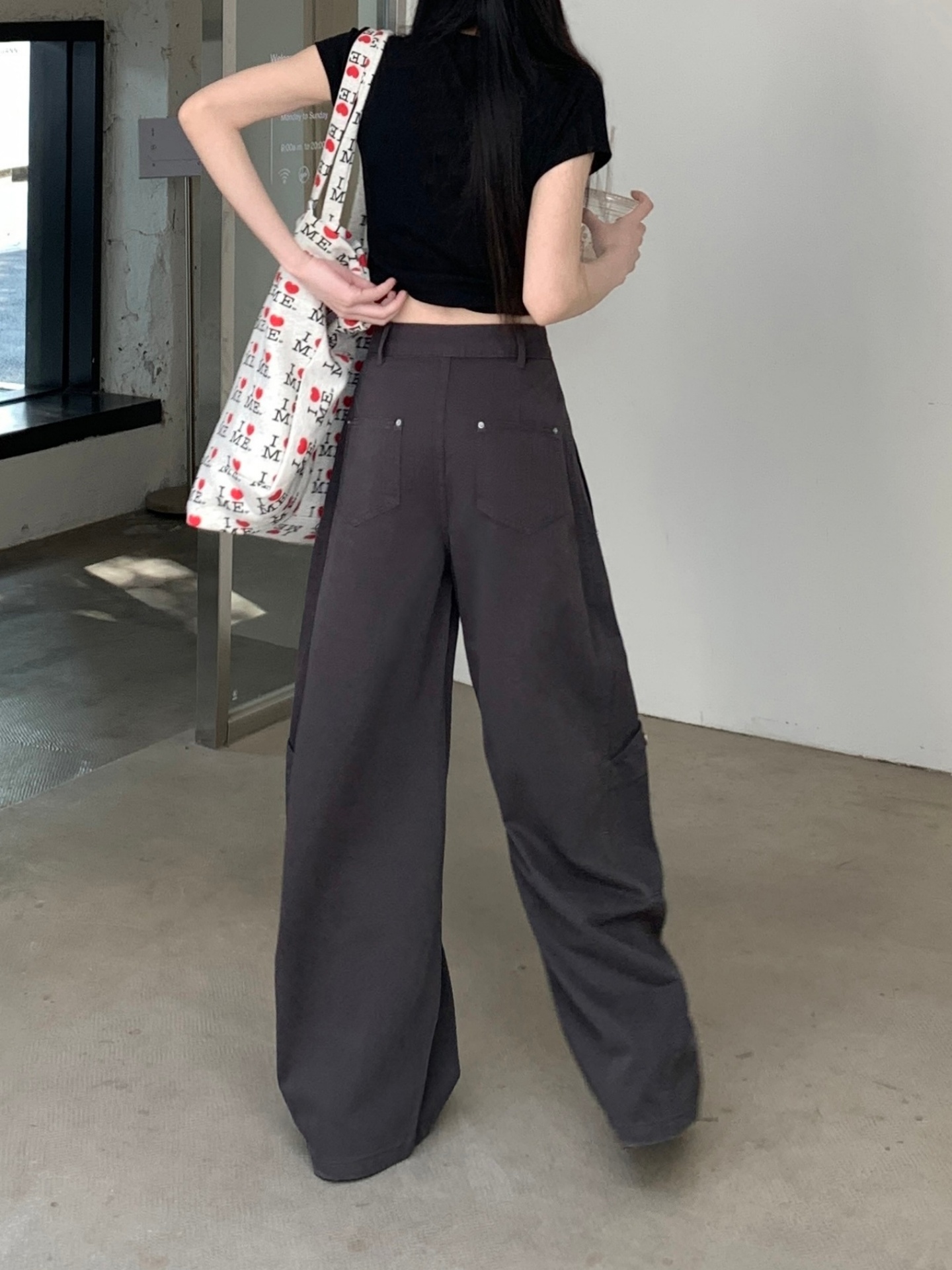열세 개 품질 로우 웨이스트 루즈핏 도루 센스 캐주얼 워크웨어 넓은 다리 청바지