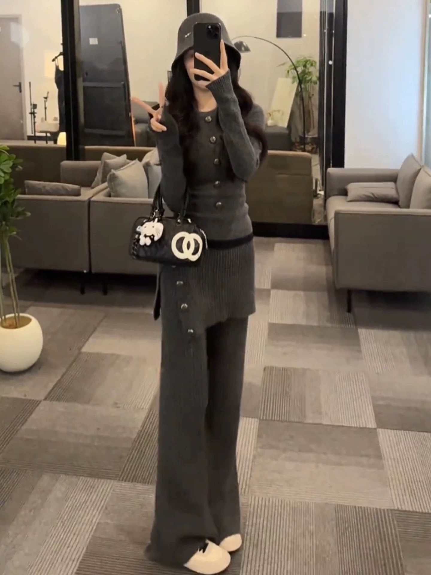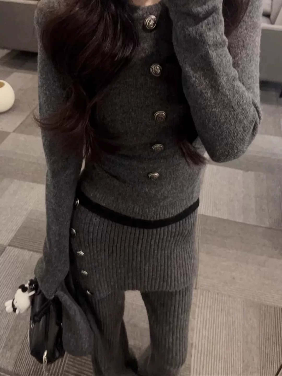 미니멀리즘 숙련 된 트렌드 패션 다용도 몸매 가꾸기 슬림해 보이는 회색 조끼 여자 2026 겨울 허리 수축 V넥 스웨터 오픈 가디건