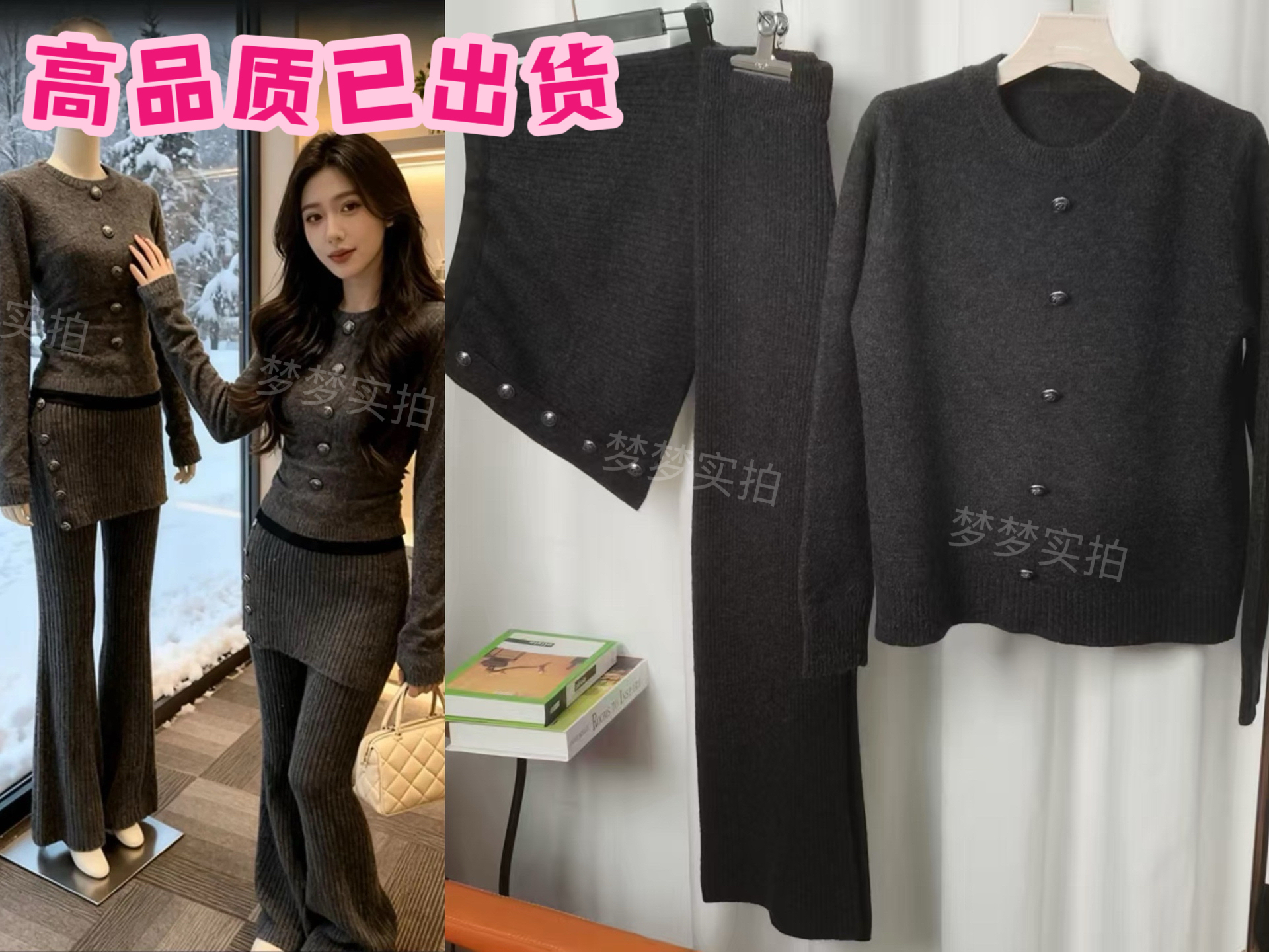 한 비 지아 hallstatt 비싼 가스 오래된 돈 바람 베이지 색 트위스트 꽃 니트 기본 셔츠 스트레이트 긴 바지 세트