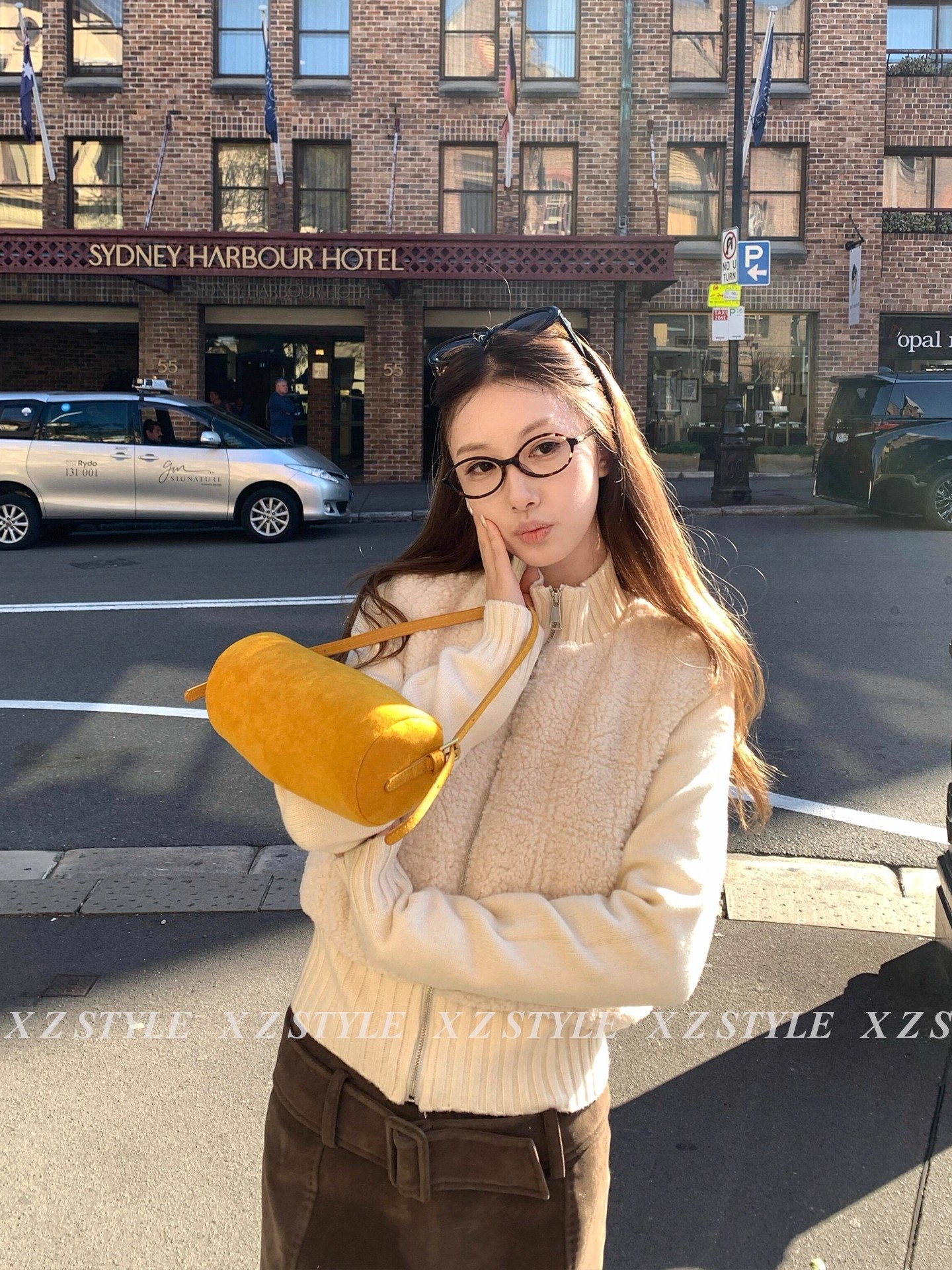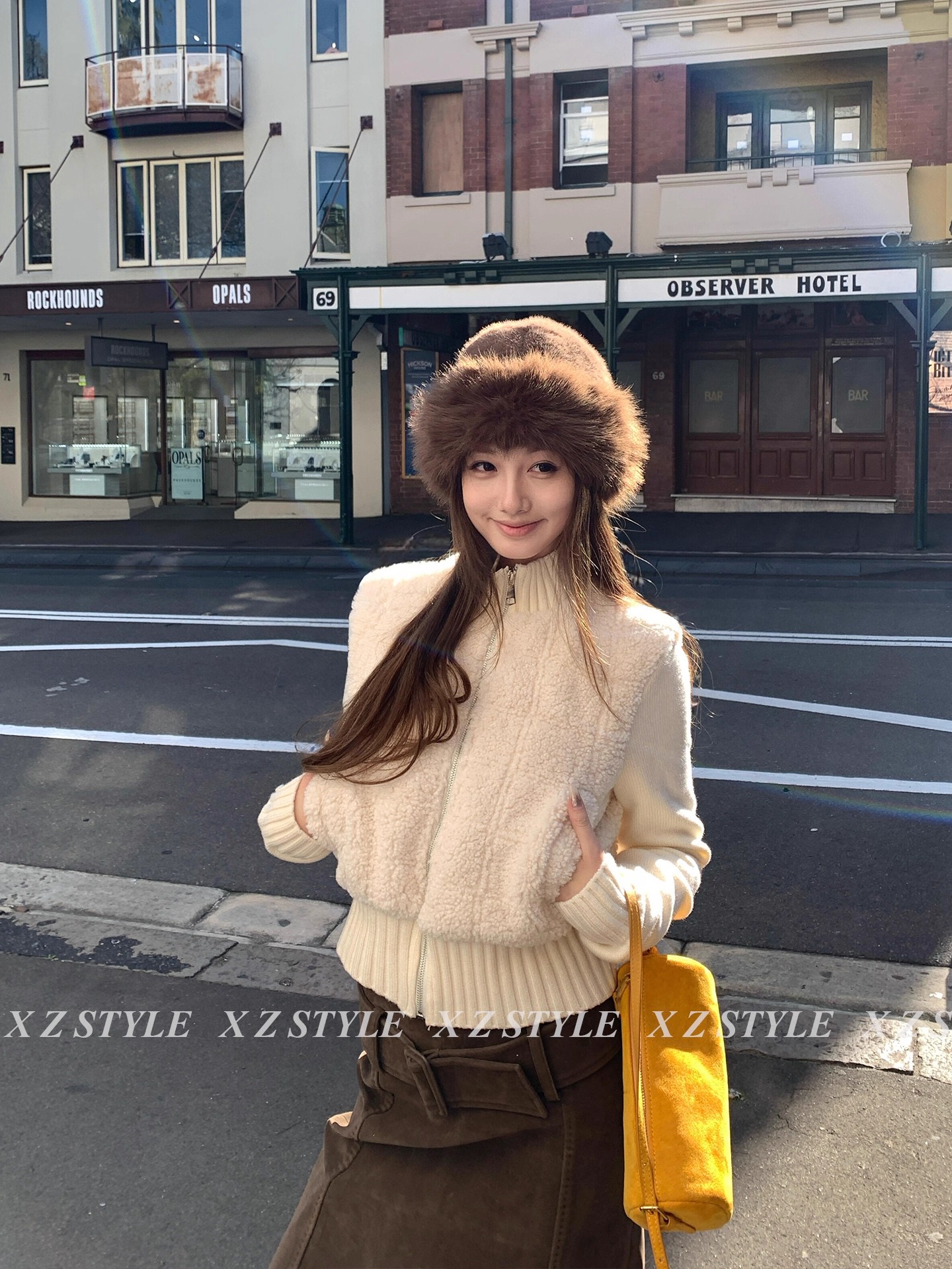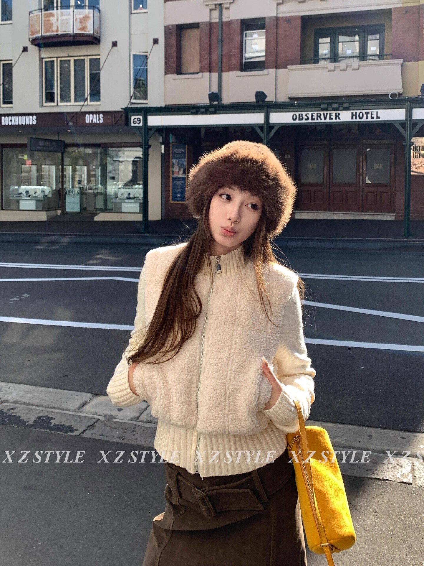 dy 전문가 모피 돈을 위해 가치 핑크색 폴로 칼라 여성 코트 겨울 새로운 피모 하나 링 그리드 루즈핏