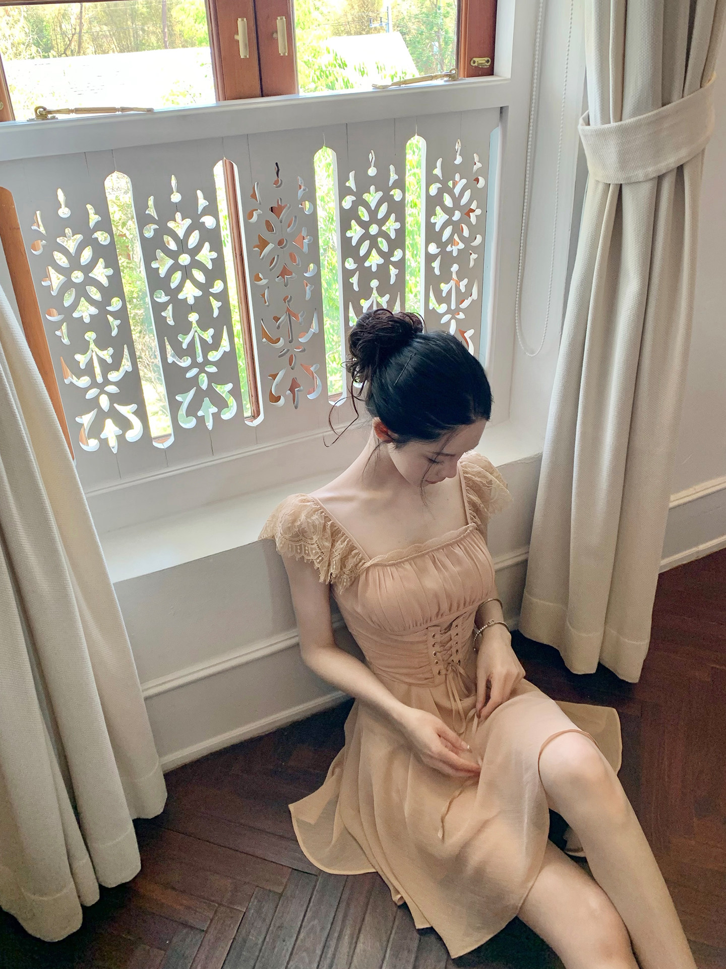 실사 정가 여름 헤일로 염색 부드러운 바람 쉬폰 오프숄더 생선뼈 코르셋 맨위