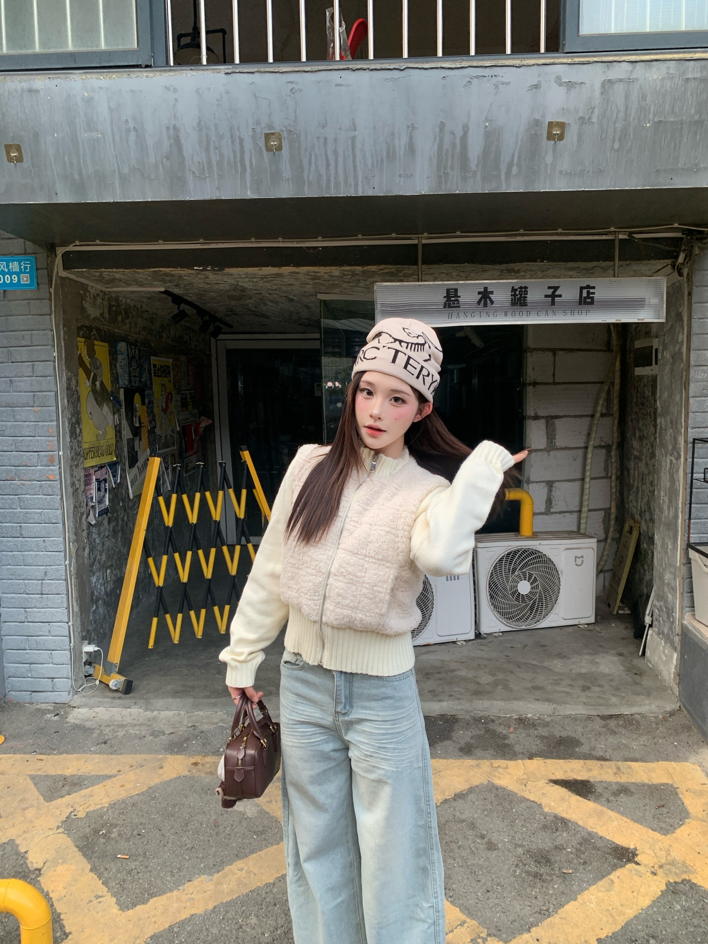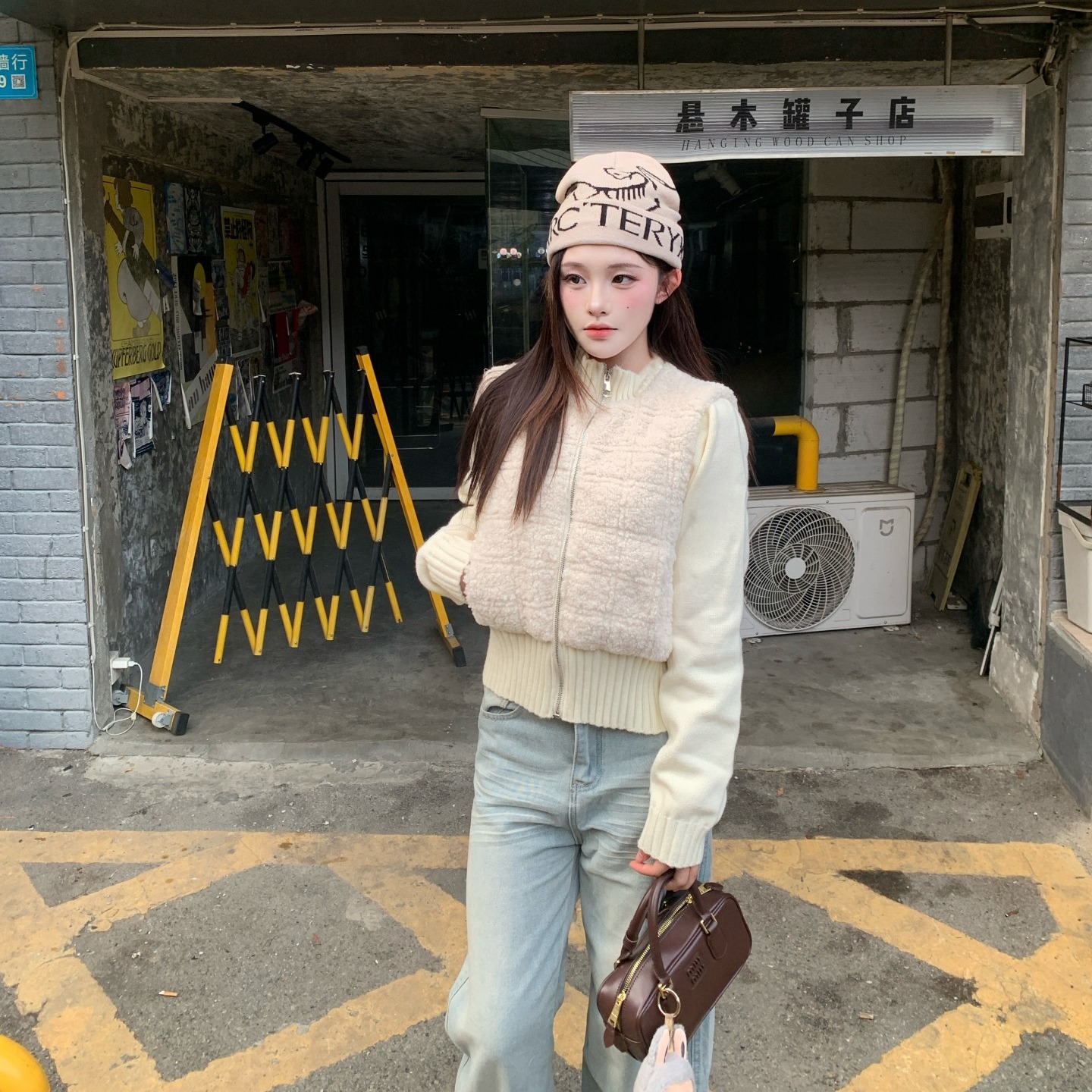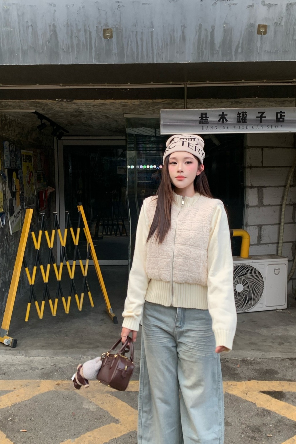 화이트 뜨개질 스티칭 목화 의류 여성 코트 2024 겨울 새로운 고급 센스 작은 남자 외국 가스 와일드 맨위