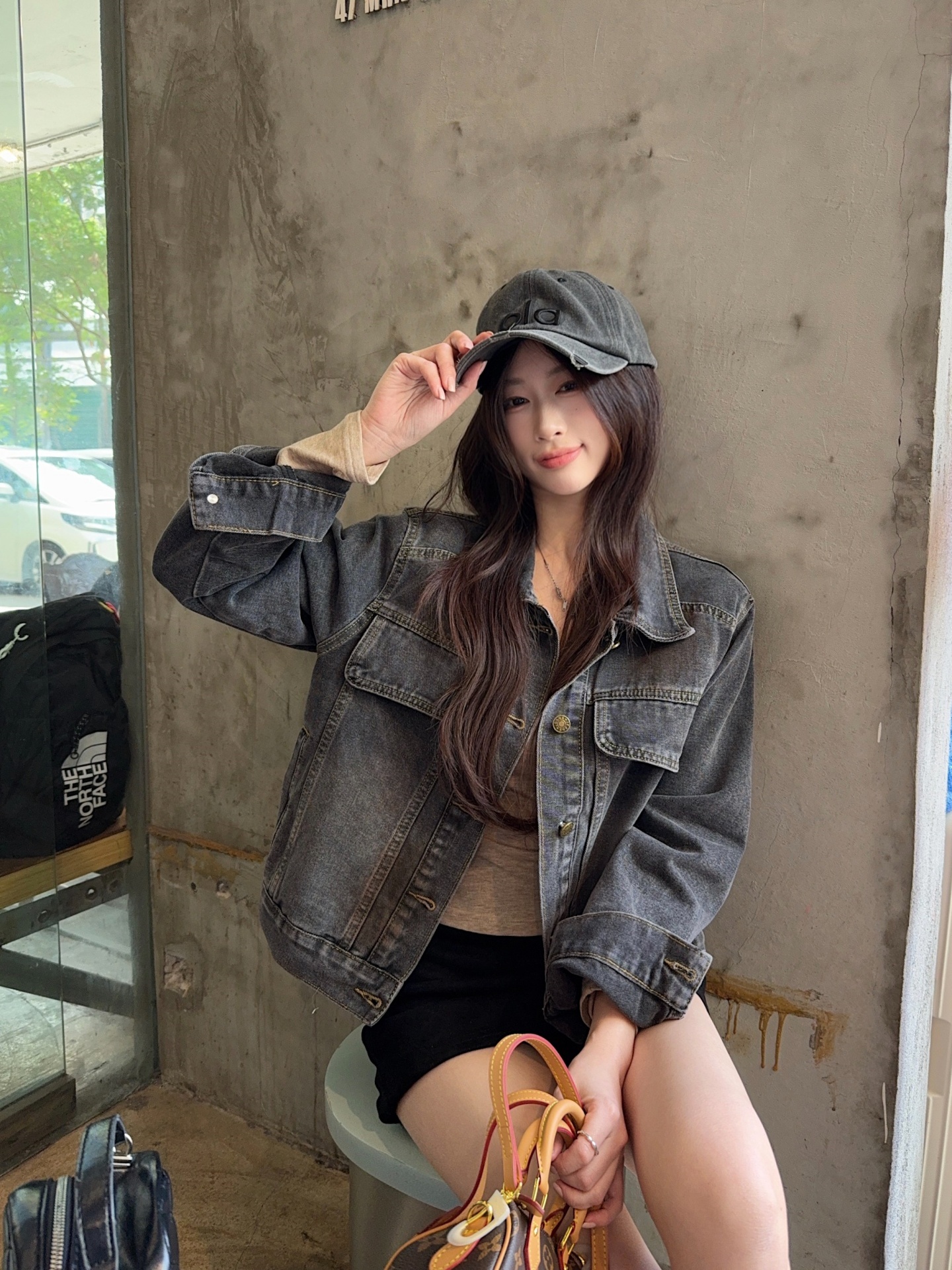 아메리칸 레트로 해체 질감 데님 재킷 루즈핏 프로필 모양 몸매 가꾸기 슬림해 보이는 워크웨어 재킷 여성
