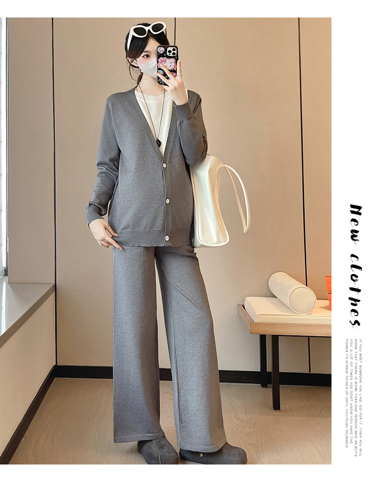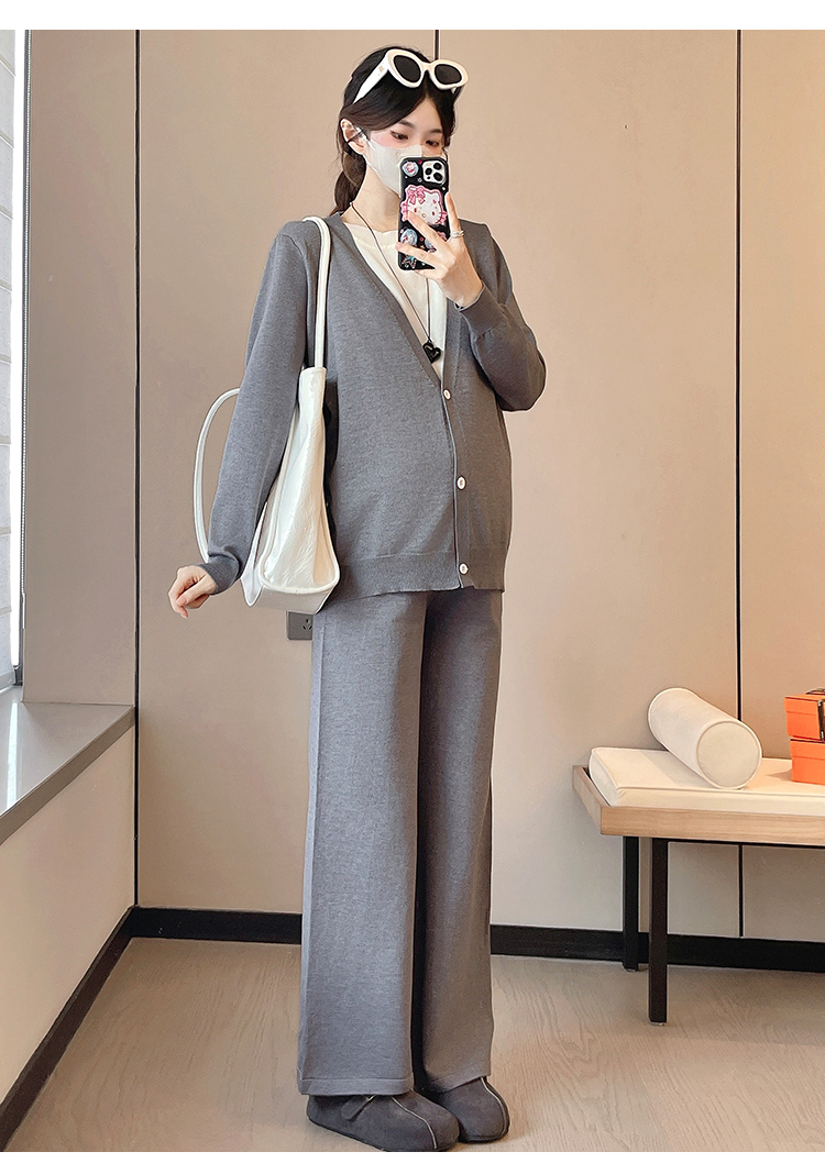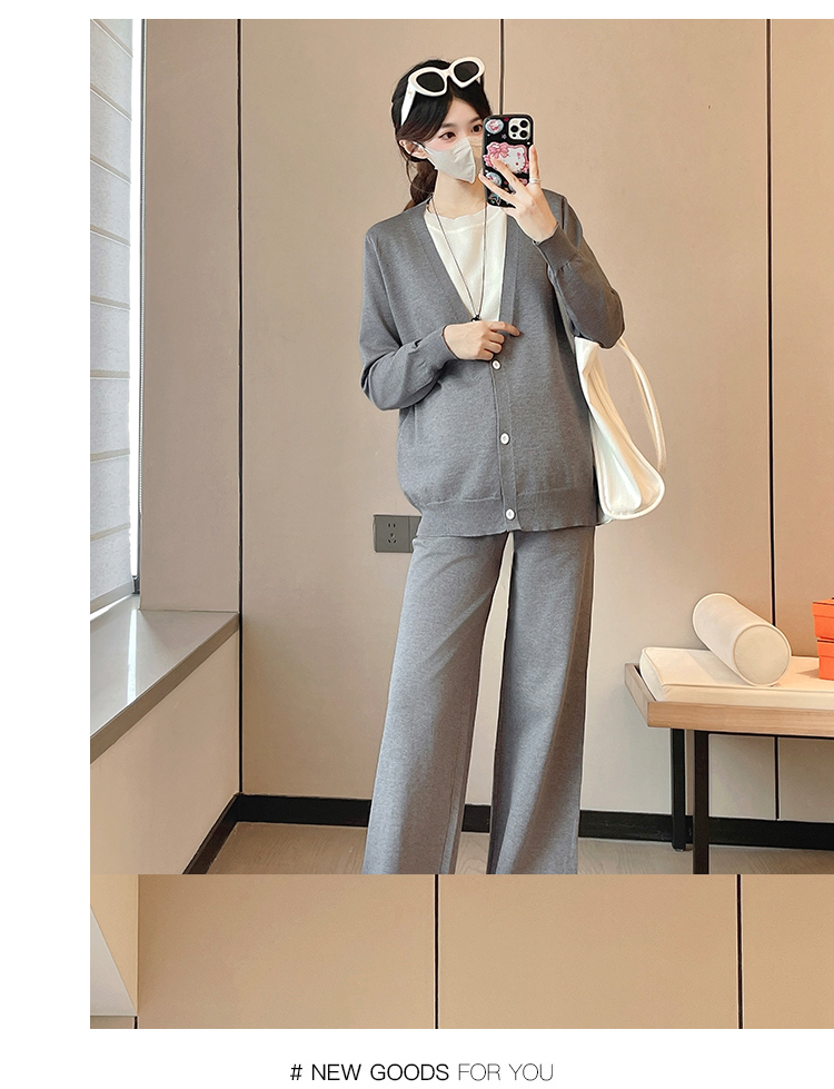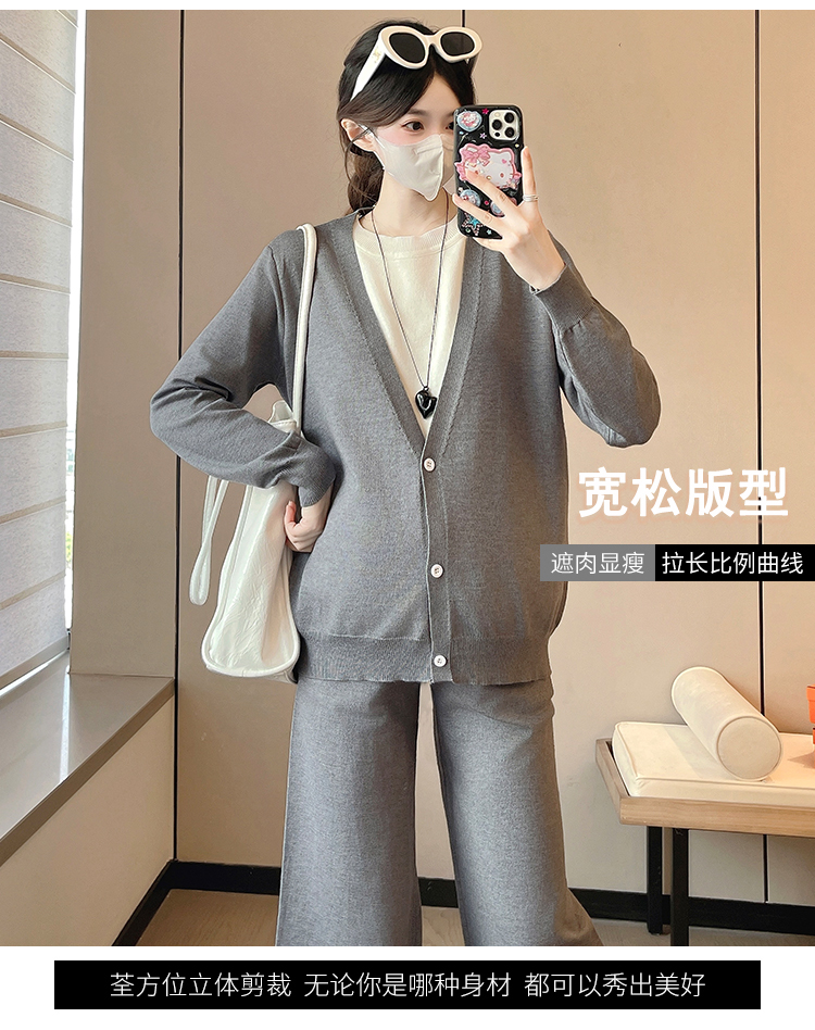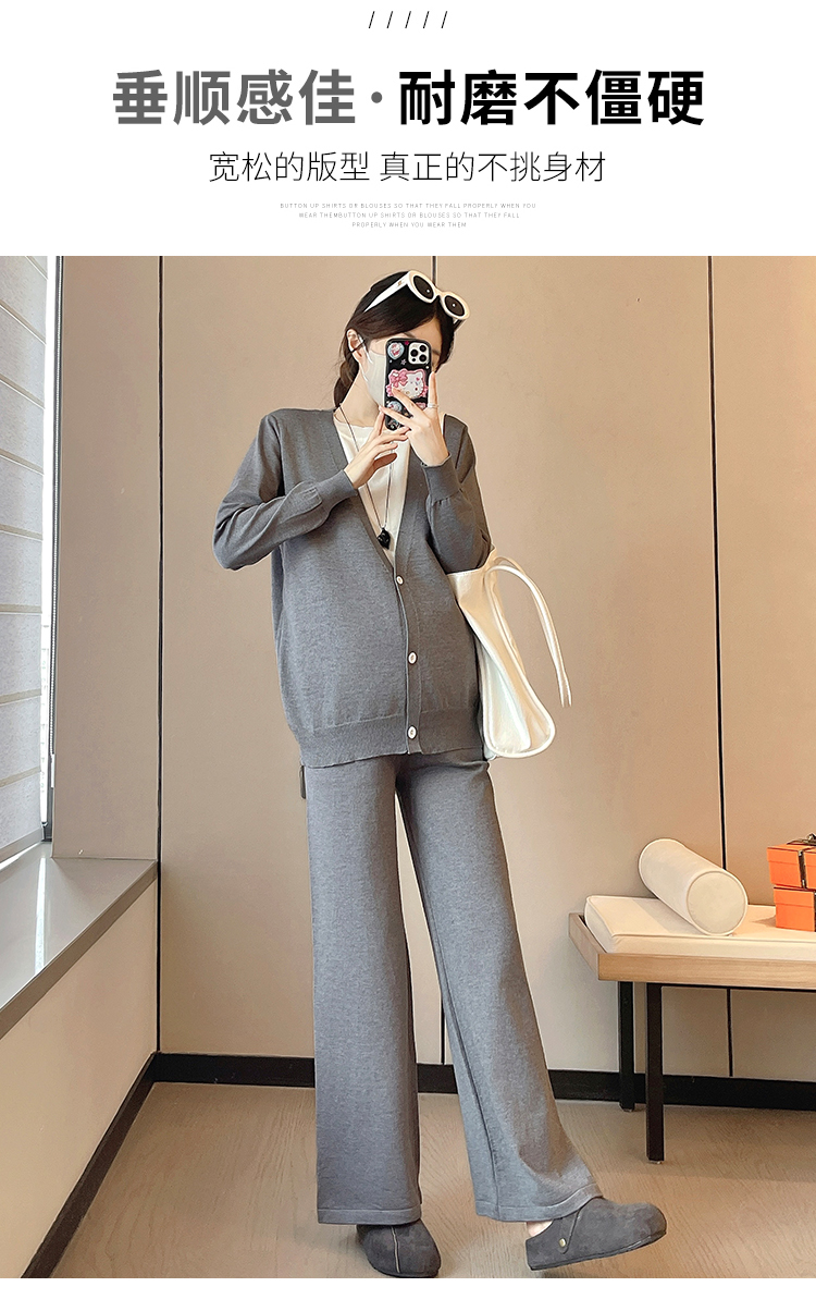 실사 2026 봄 드레스 새로운 느긋한 바람 페이크 레이어드 맨위 와이드 레그 팬츠 출산 착용 투피스 세트