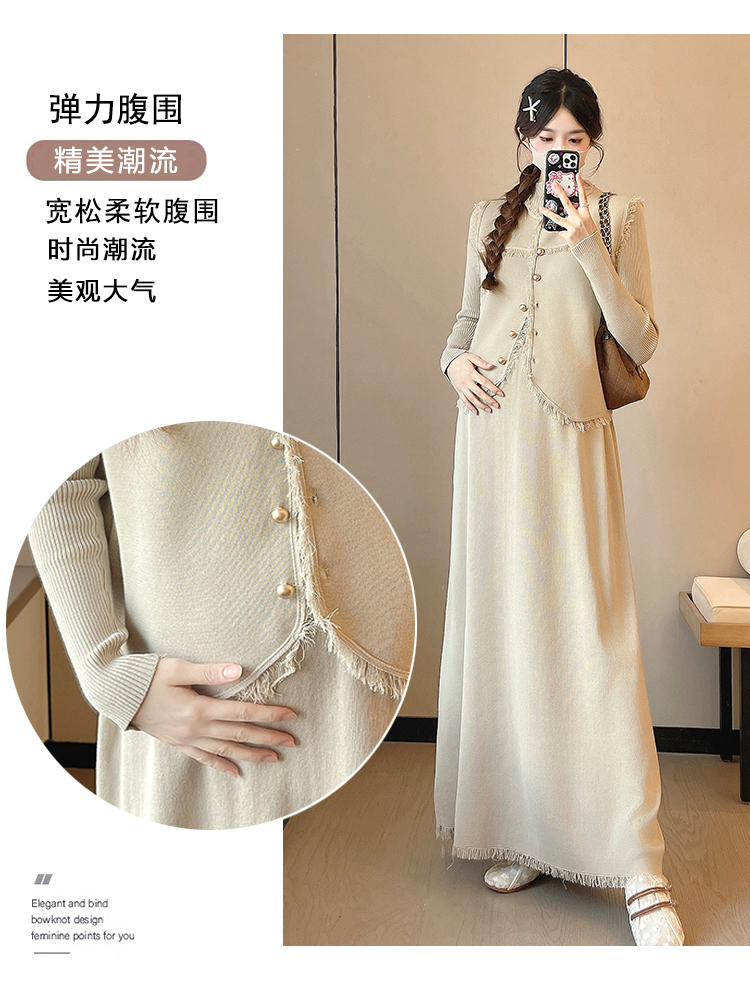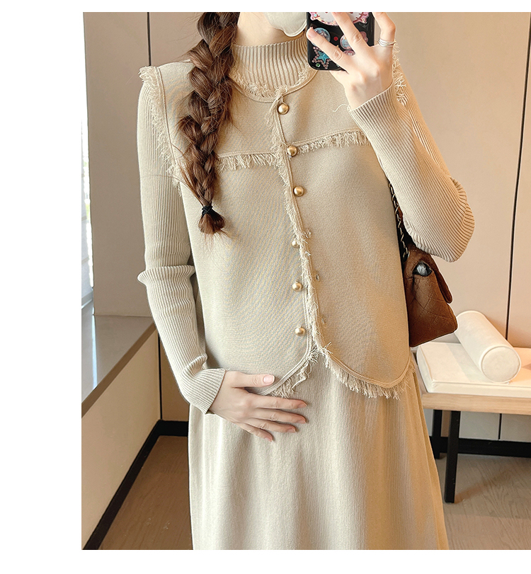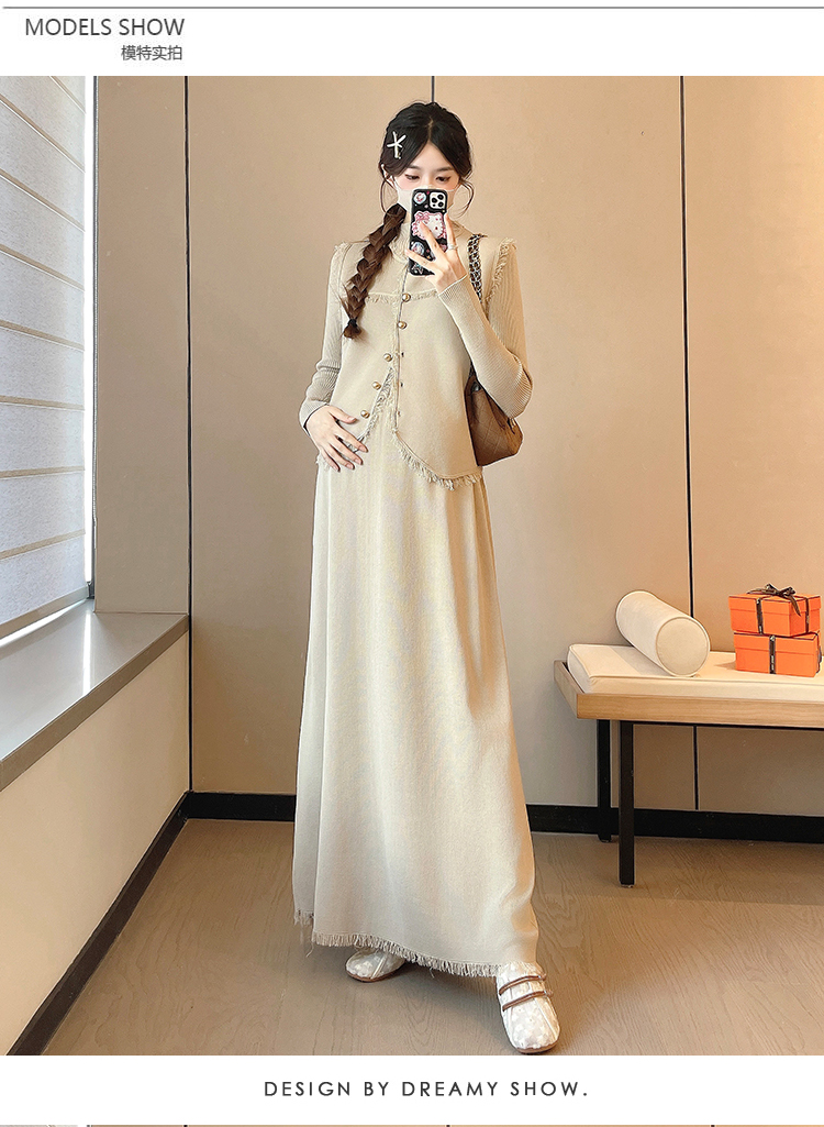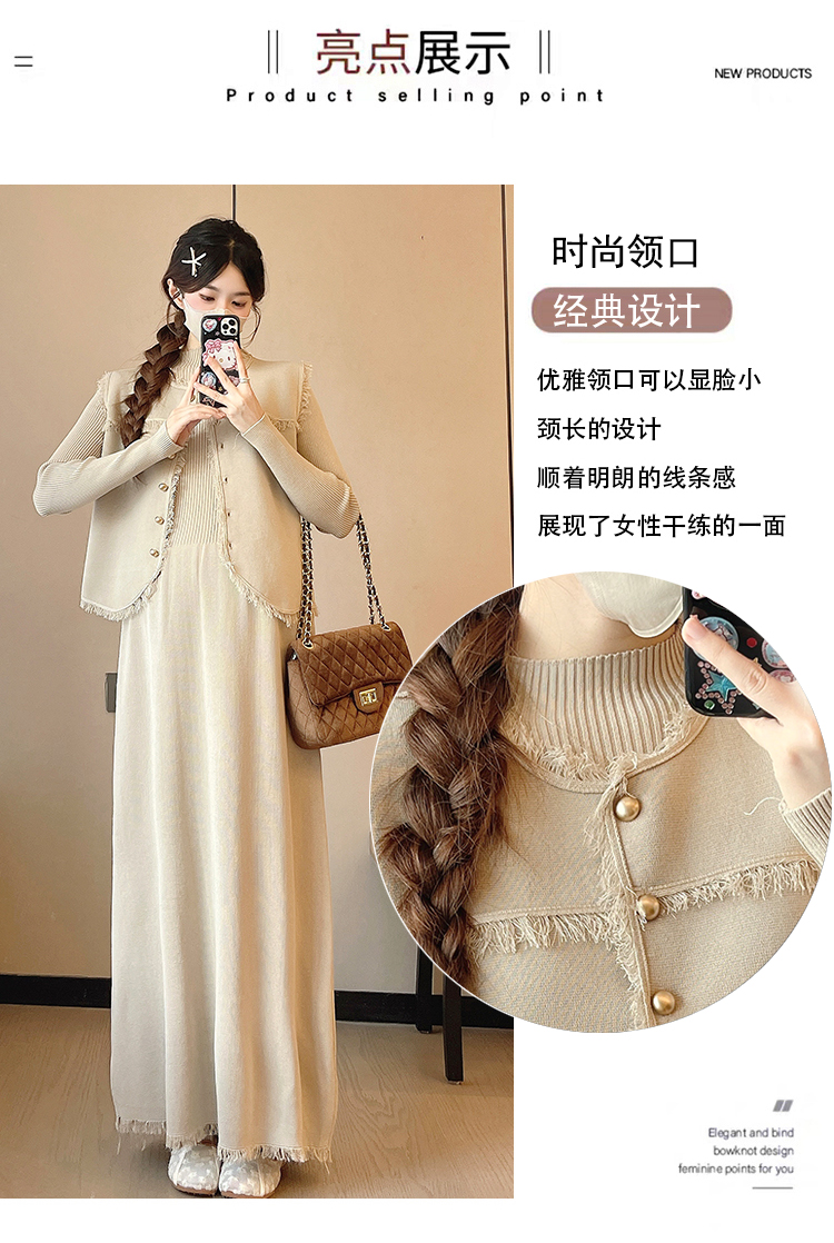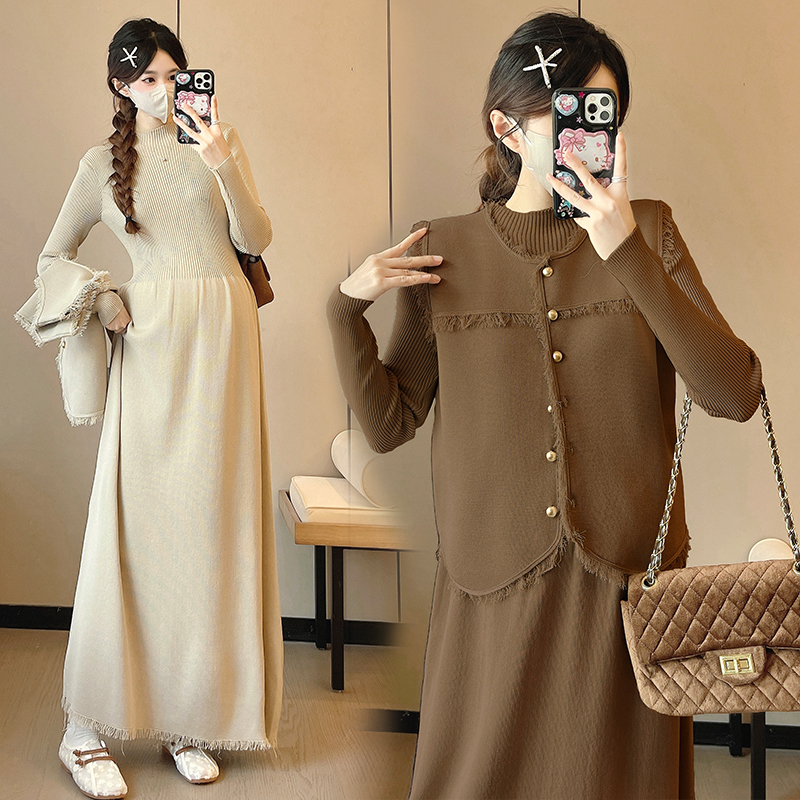 실사 2026 임산부 봄 드레스 세트 패션 술 베스트 드레스 니트 투피스 세트
