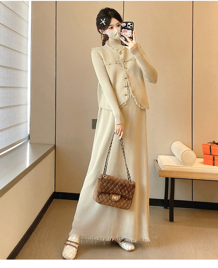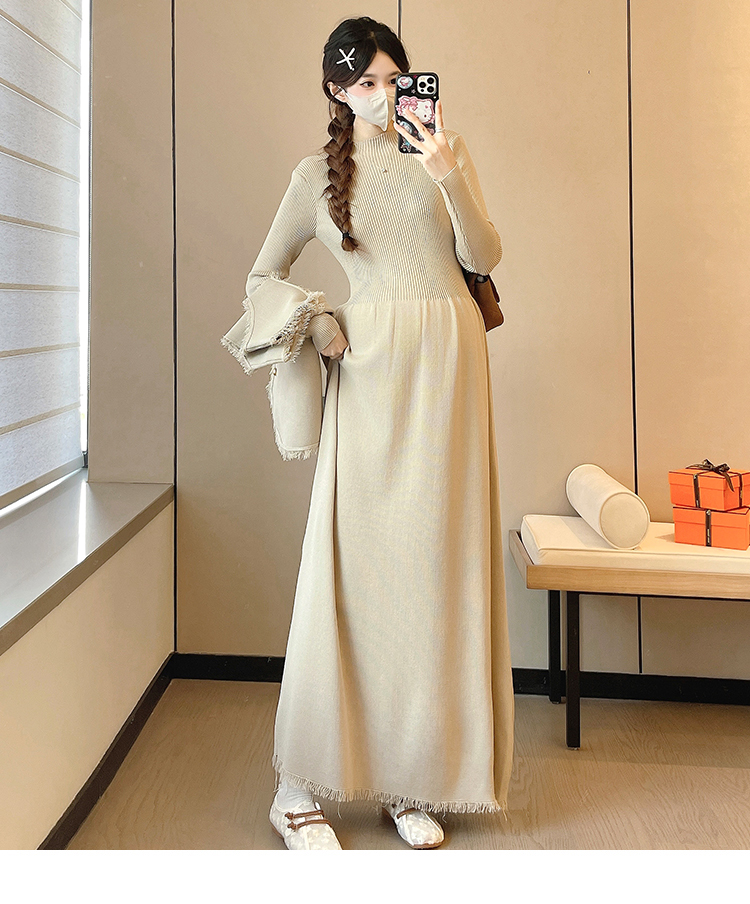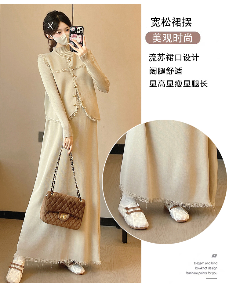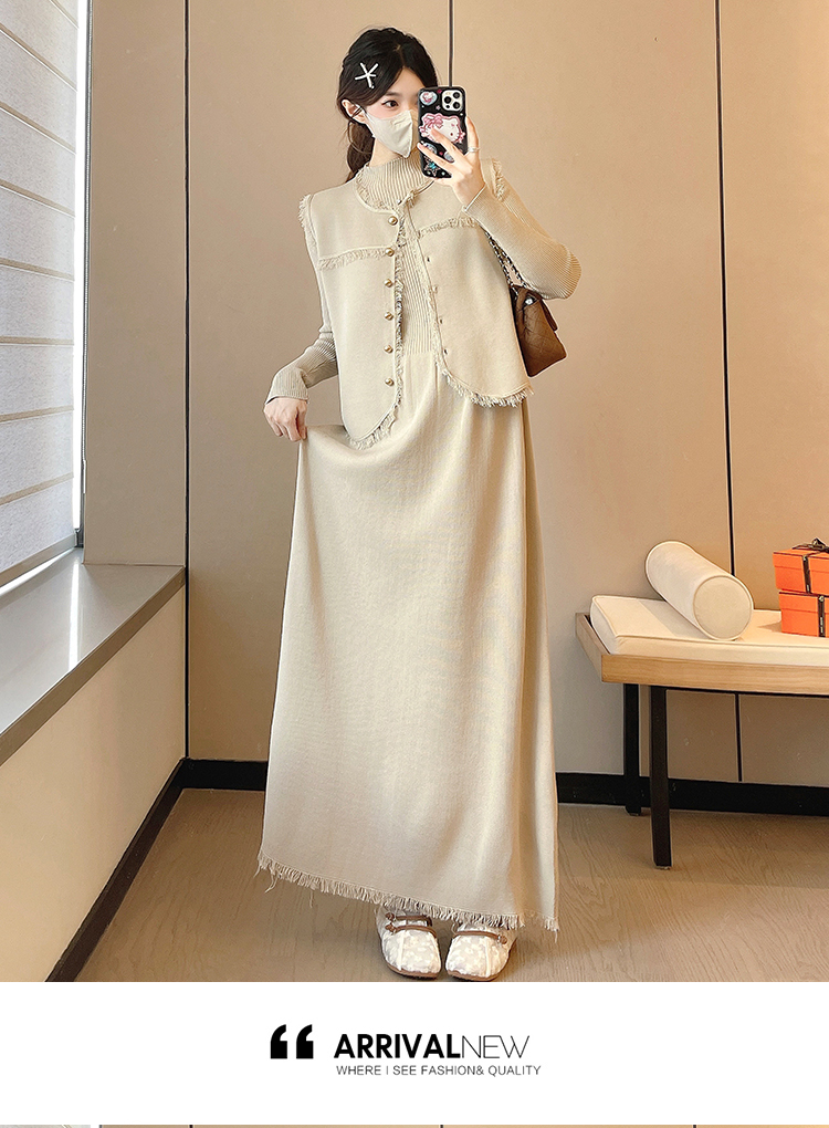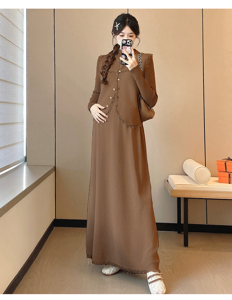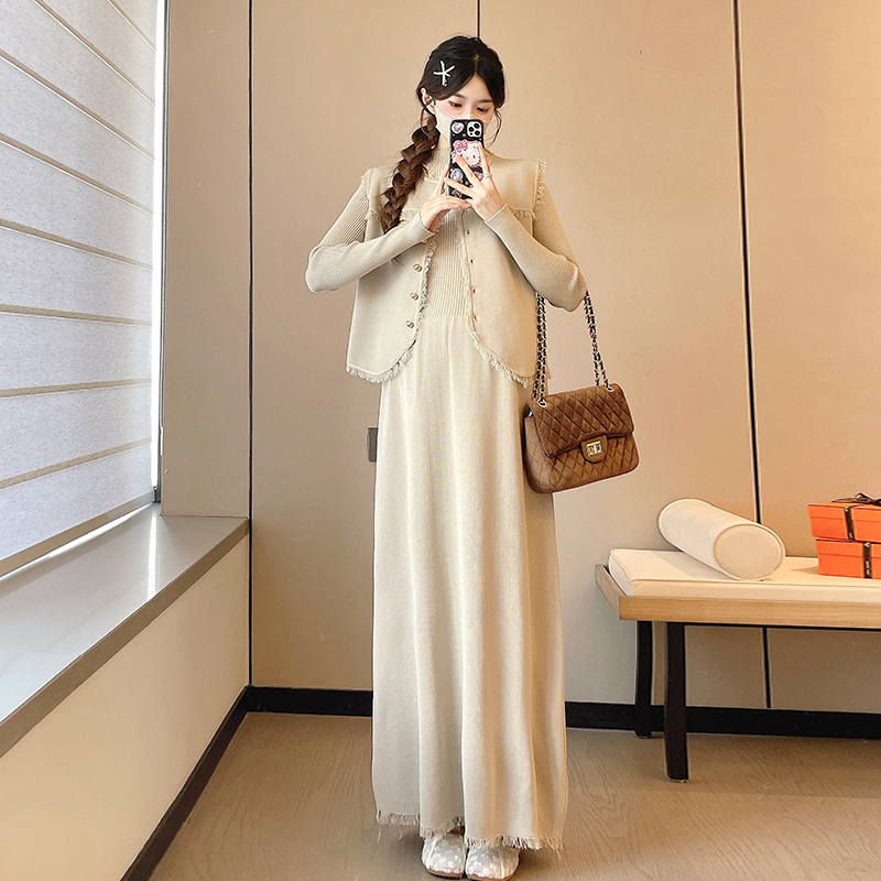실사 2026 임산부 봄 드레스 세트 패션 술 베스트 드레스 니트 투피스 세트