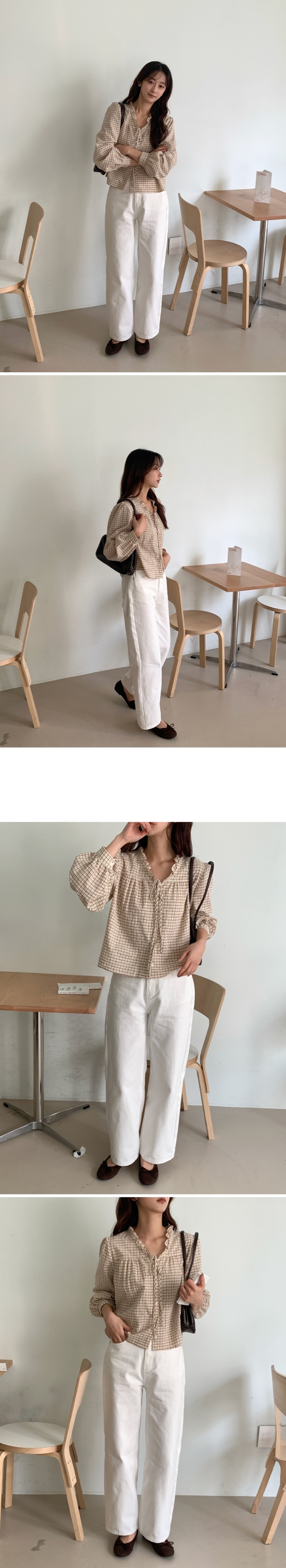 품격 V넥 레이스업 싱글 줄 버튼 캐미솔 작은 셔츠 하이웨이스트 루즈핏 스트레이트 와이드 레그 팬츠 세트 투피스 세트
