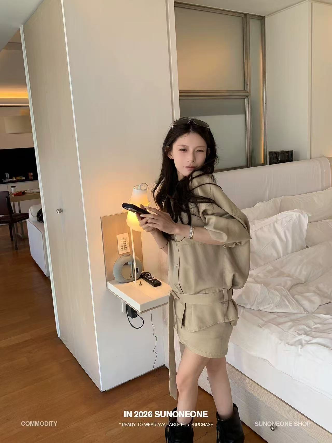 sunoneone 01.20 20 00 엷 은 안개 레터 헤드 라이 경기 서울 주간 실크 루즈핏 셔츠 반 스커트 세트