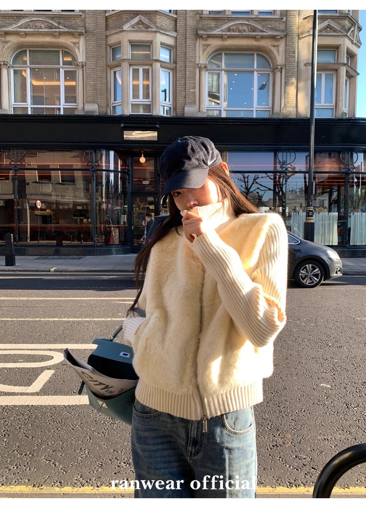 인터넷 그림 원본 원료 지퍼 섹션 겨울 제한적 새로운 화이트 환경 보호 풀 재킷 링 그리드 폴로 칼라 모피 맨위