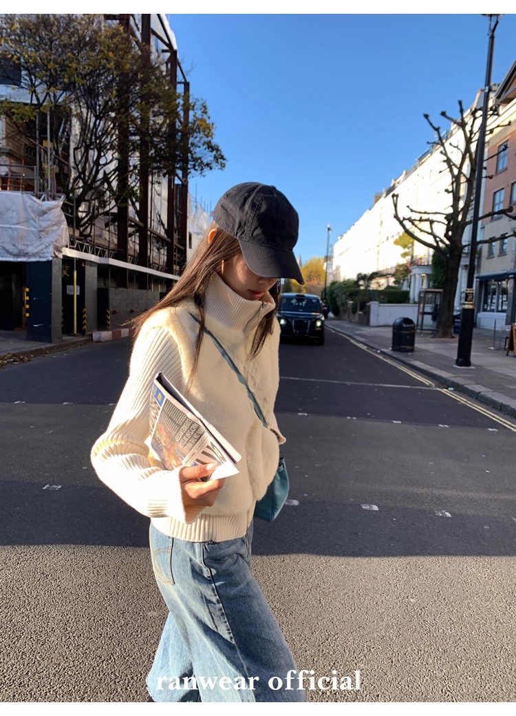 화이트 뜨개질 스티칭 목화 의류 여성 코트 2024 겨울 새로운 고급 센스 작은 남자 외국 가스 와일드 맨위