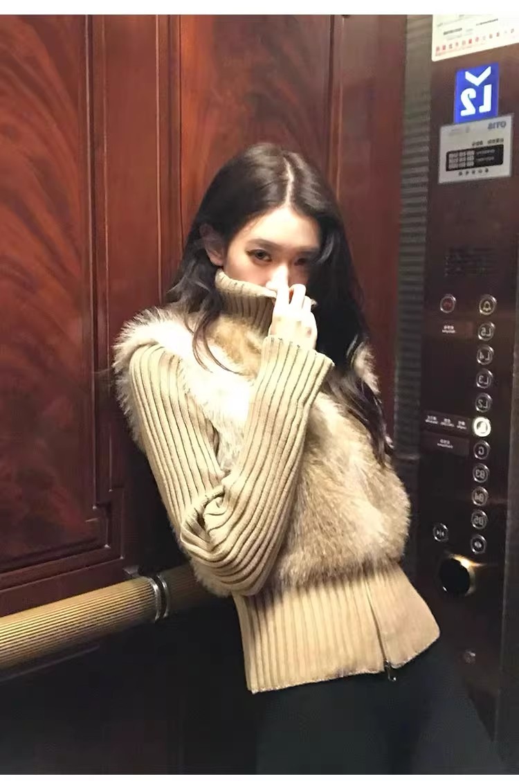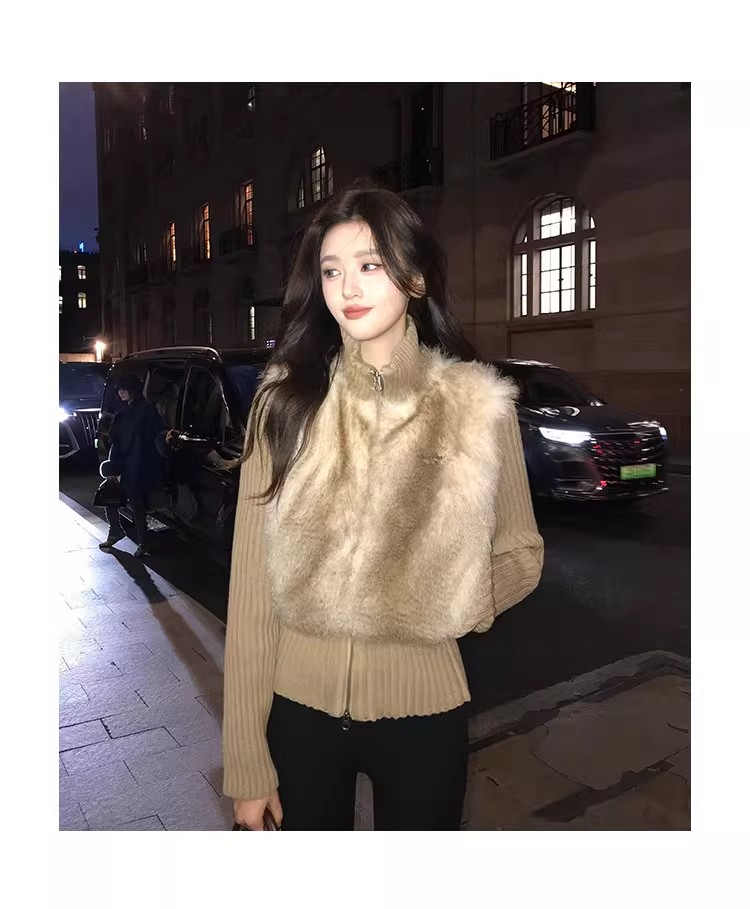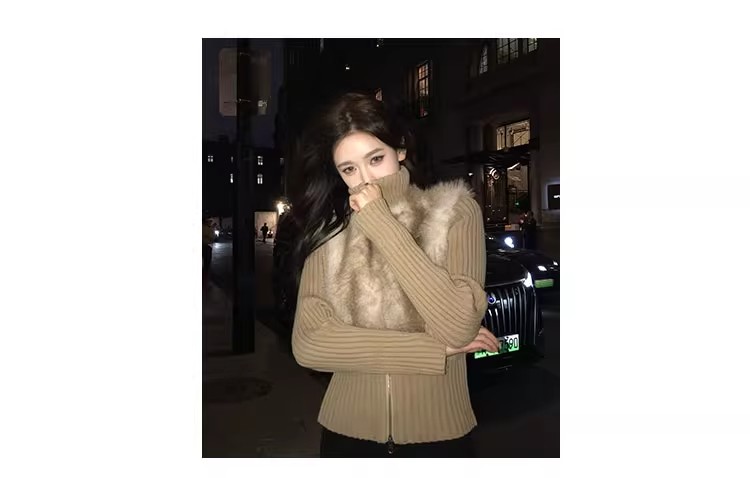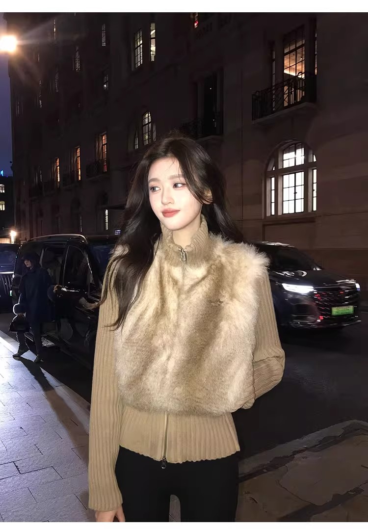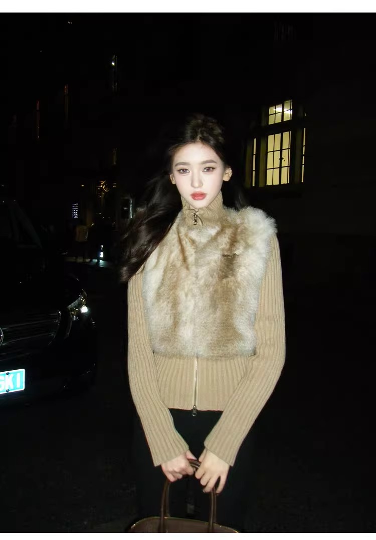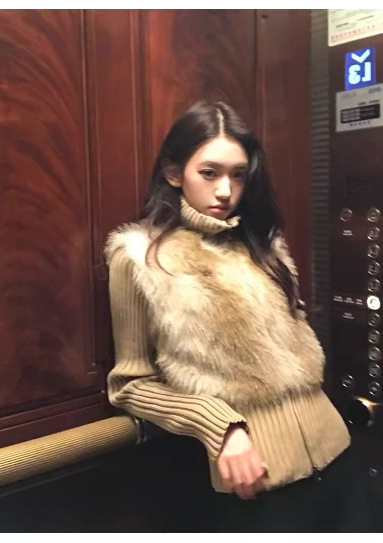 인터넷 그림 수렴성의 골짜기 수신 전화 아주 사랑해. 작은 대중 레트로 니트 패치워크 반지 바오 모피 페이크 레이어드 모피 재킷