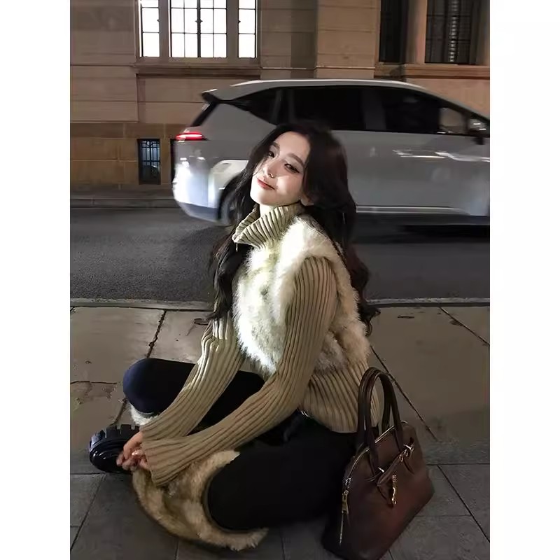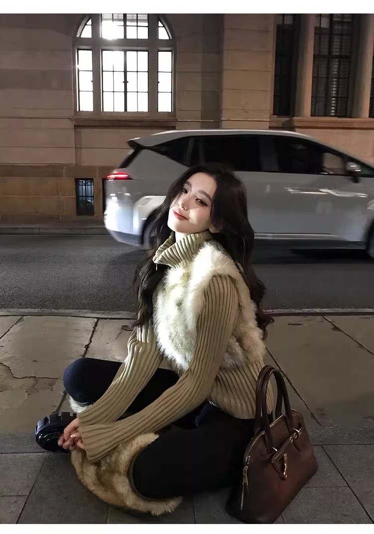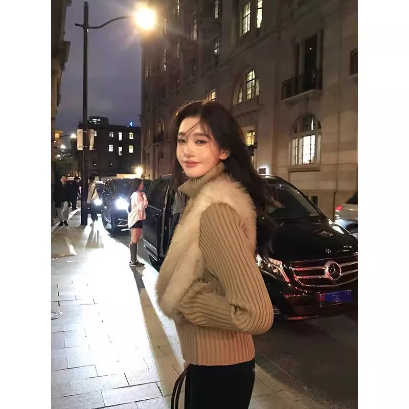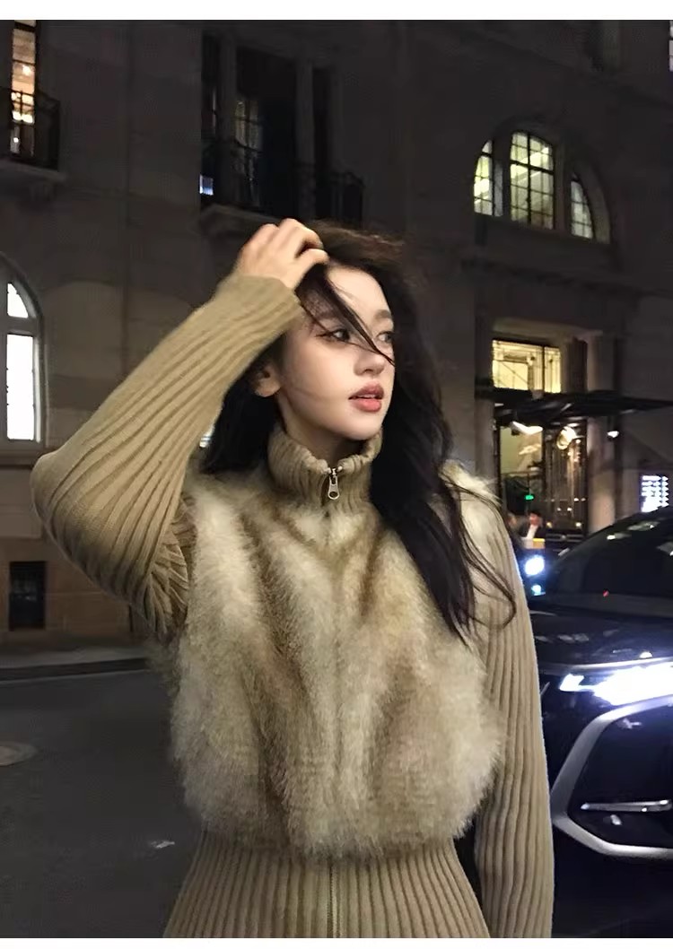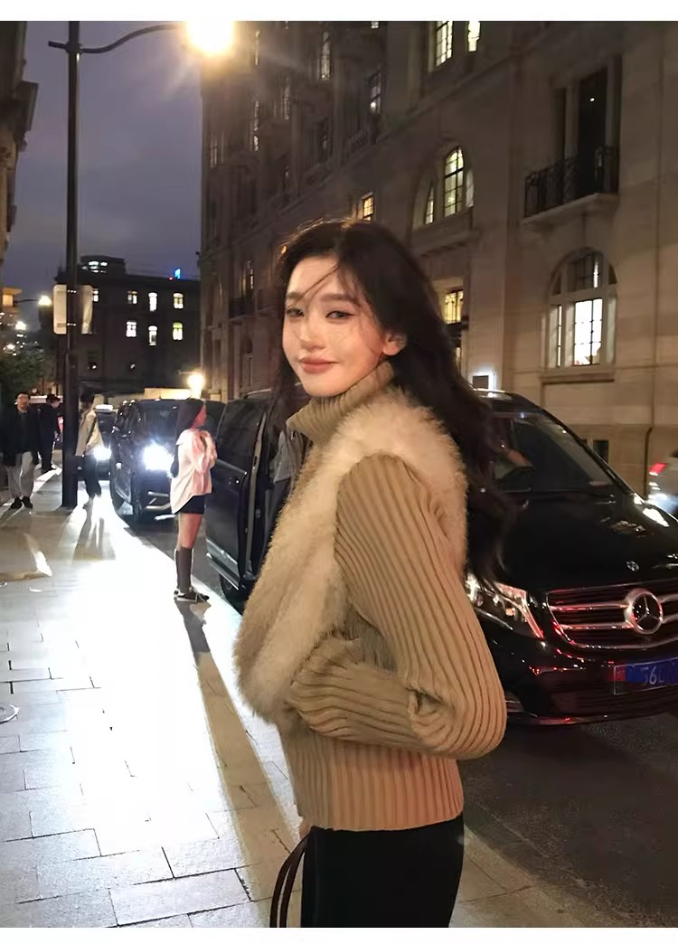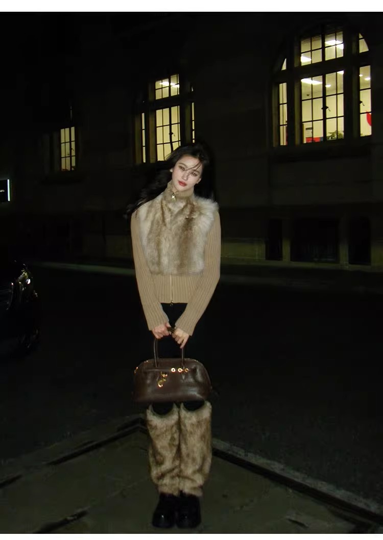 인터넷 그림 수렴성의 골짜기 수신 전화 아주 사랑해. 작은 대중 레트로 니트 패치워크 반지 바오 모피 페이크 레이어드 모피 재킷