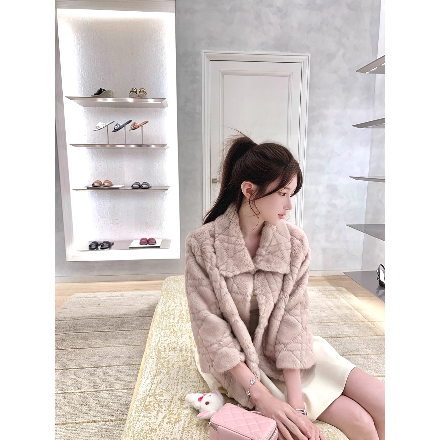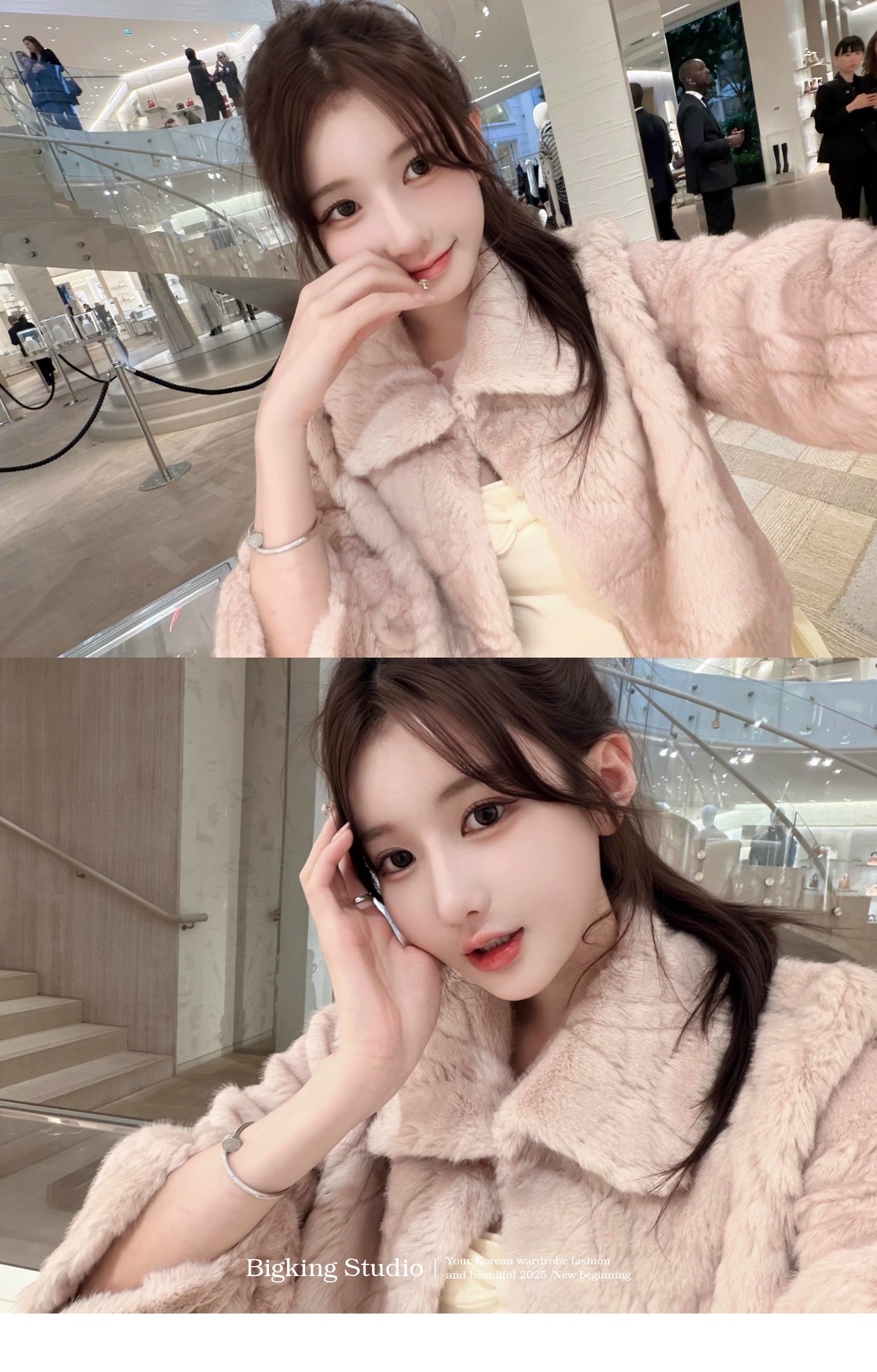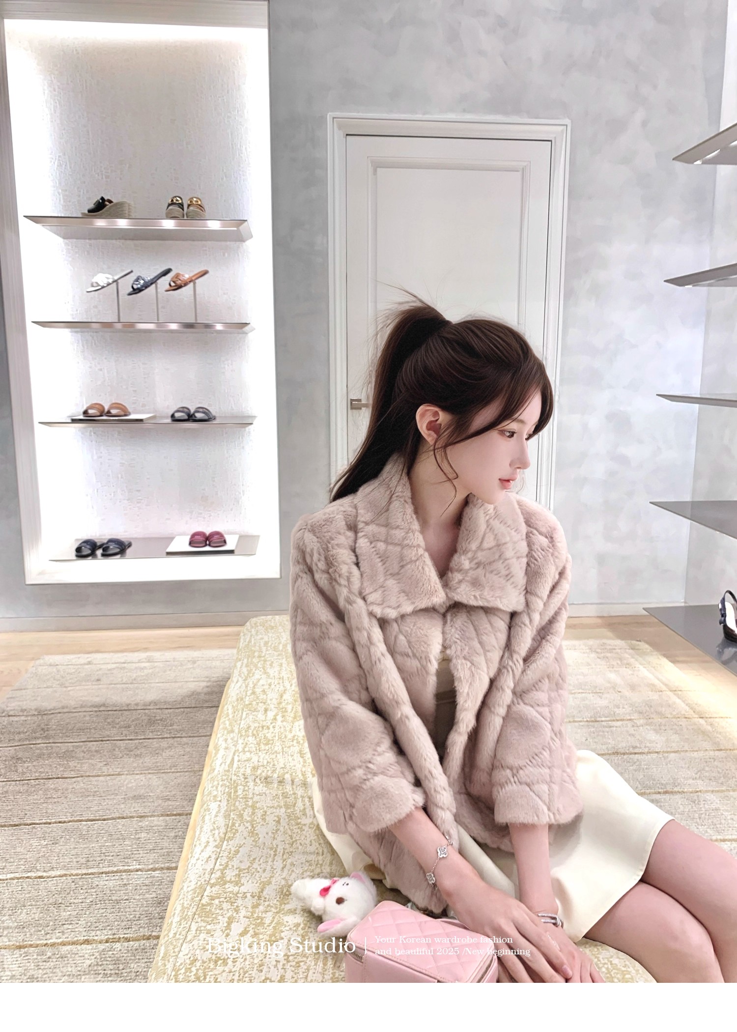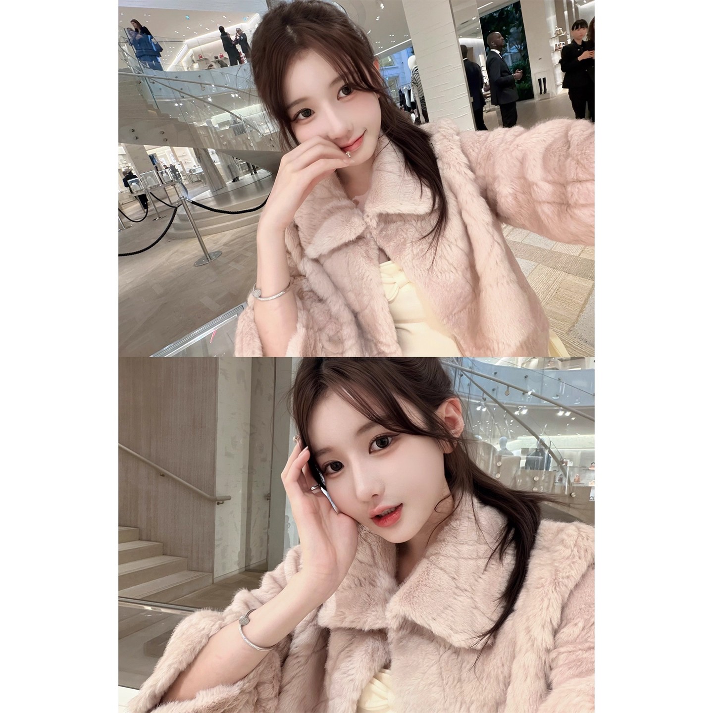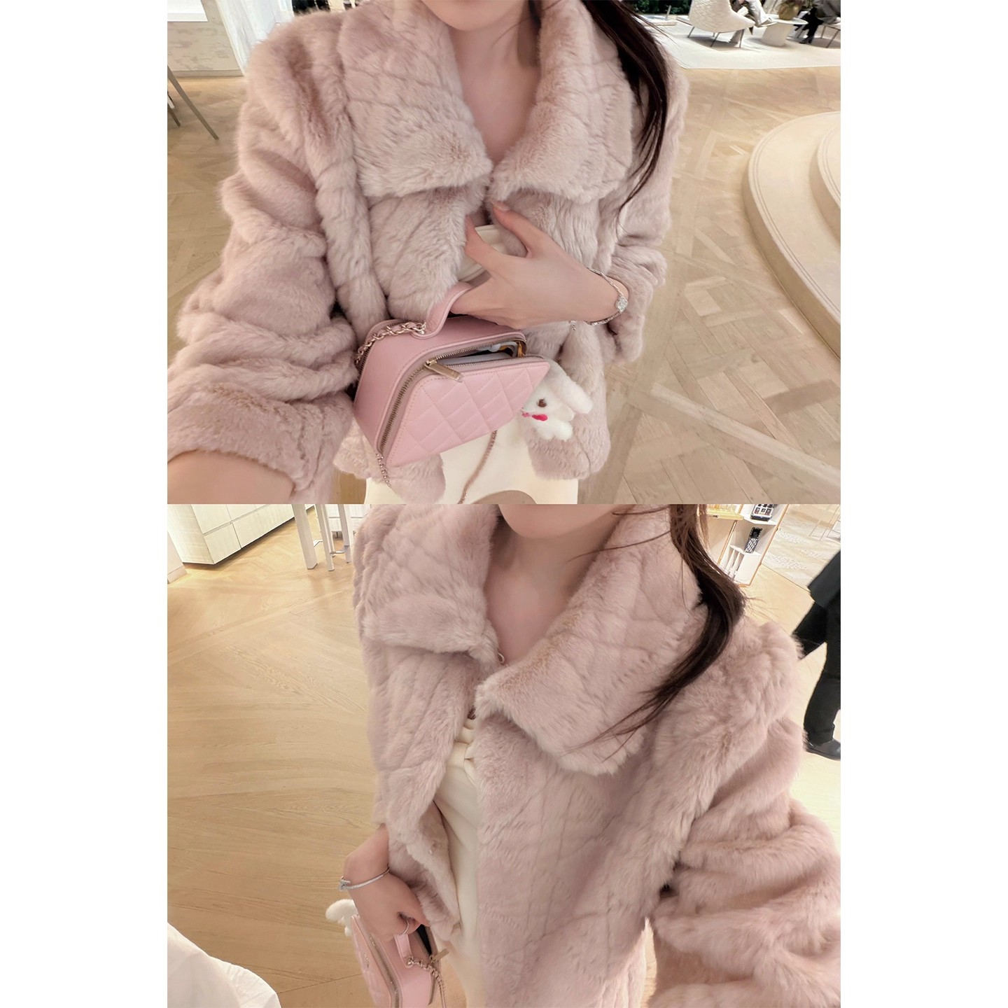 dy 전문가 모피 돈을 위해 가치 핑크색 폴로 칼라 여성 코트 겨울 새로운 피모 하나 링 그리드 루즈핏