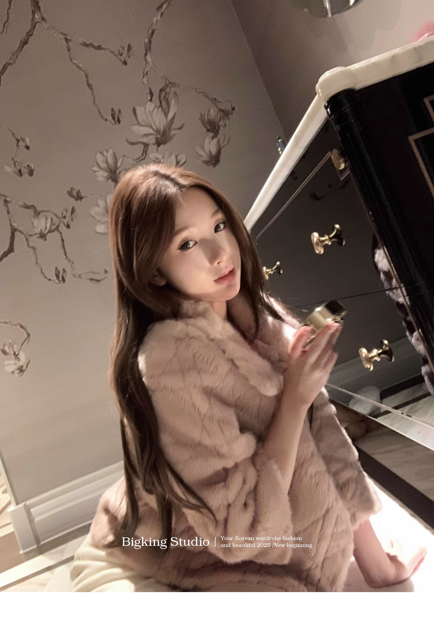 인터넷 그림 털이 있는 실 페인트 어린이 미스 핑크색 환경 보호 모피 여성 모조 가죽 털 쇼트 스타일 모피 재킷