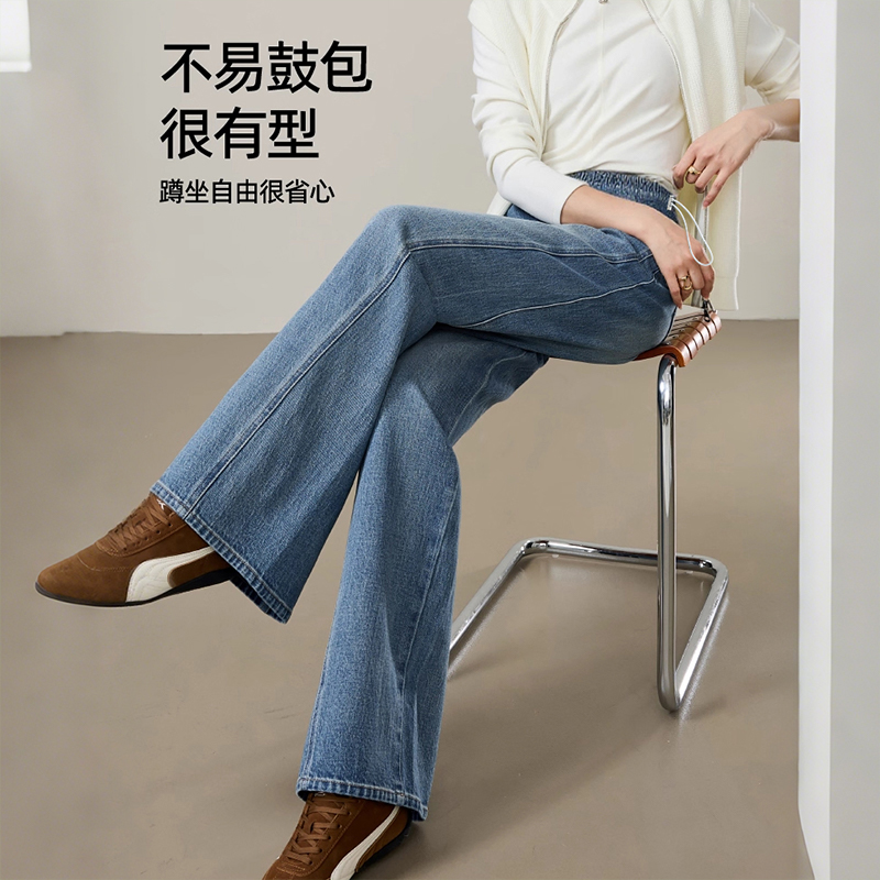 임산부 펌프 로프 데님 긴 바지 단 닝 블루 떨어지지 않음 색상 봄 가을 외출용 와이드 레그 팬츠 스트레이트 팬츠
