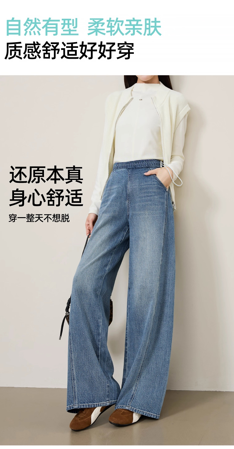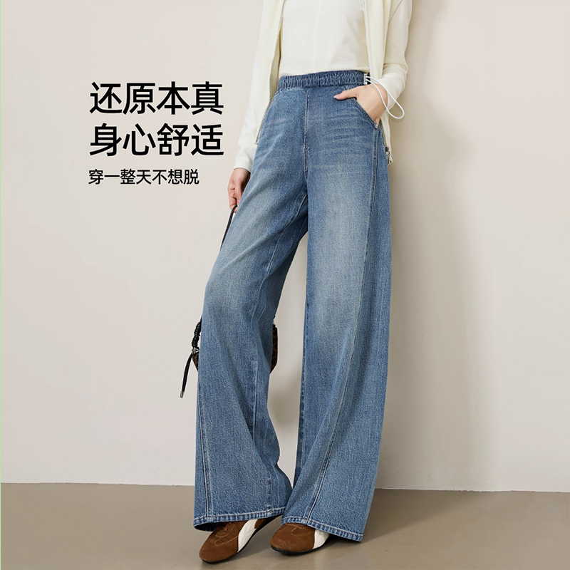 임산부 여름 주간 실크 청바지 9부 바지 신축성 얇은 스타일 외출용 라이 경기 서울 청바지 와이드 레그 팬츠