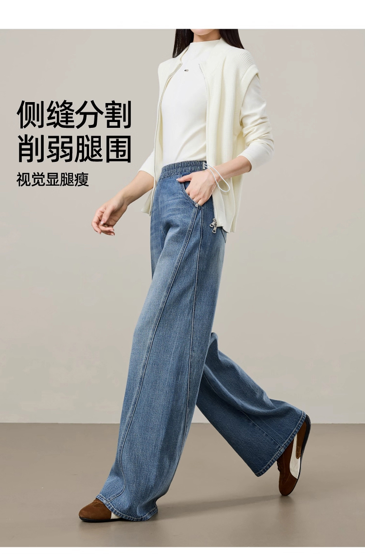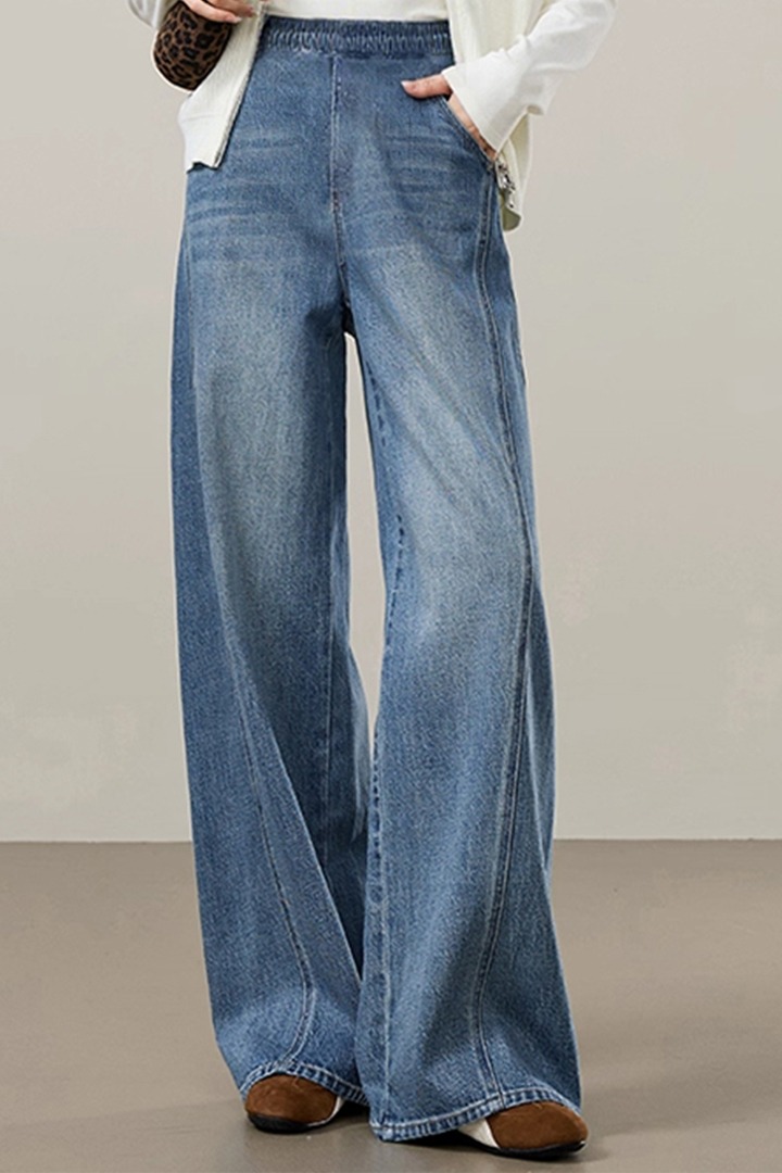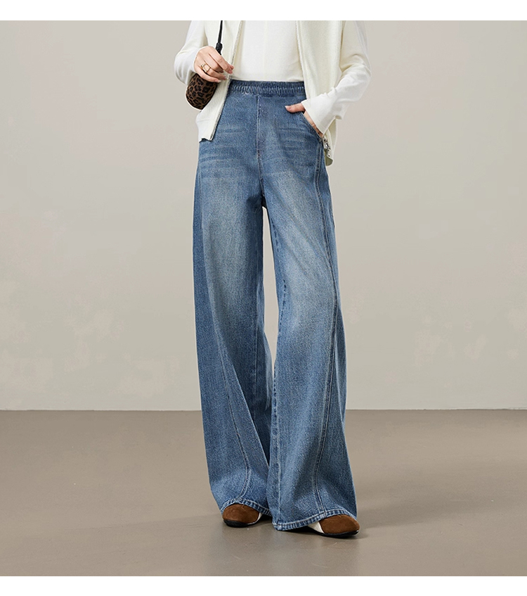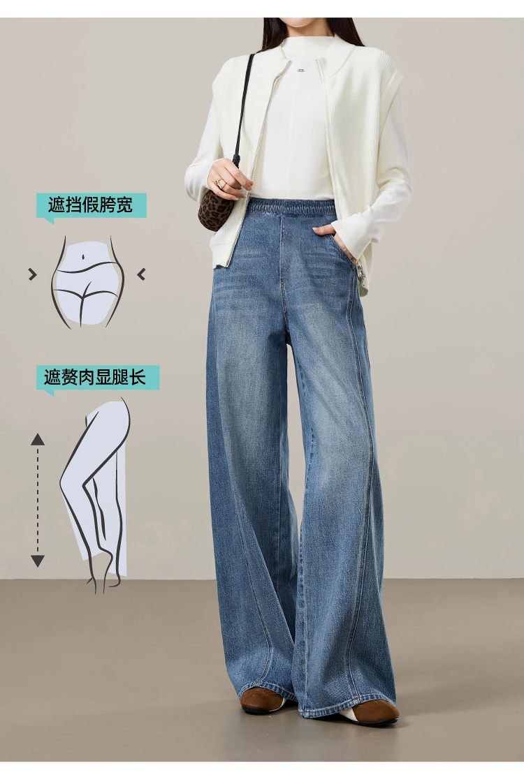 임산부 없음 복부 지지 루즈핏 레트로 청바지 하이웨이스트 몸매 가꾸기 슬림해 보이는 달콤함 넓은 다리 9부 바지