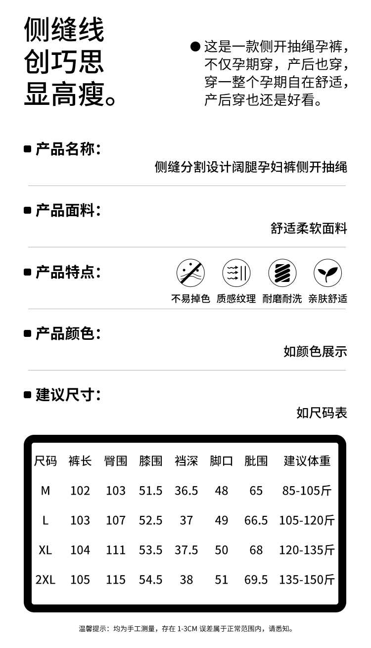 실사 새로운 높은 품질 빈 가스 층 패치워크 임산부 와이드 레그 팬츠 하이웨이스트 도루 센스 슬림해 보이는 펌프 로프 스트레이트 봄 가을