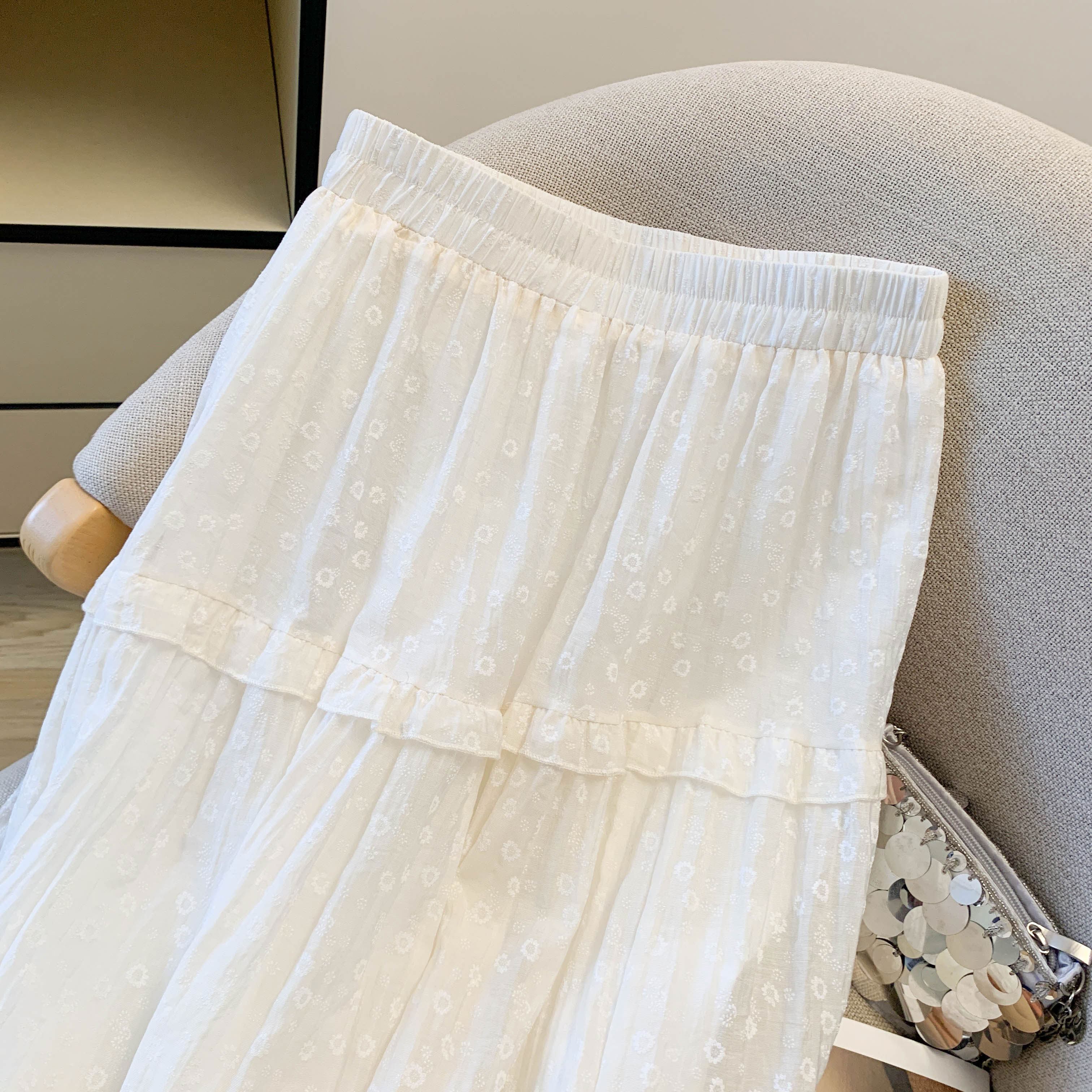 2026 여름 새로운 불규칙 망사 패치워크 술 반신 스커트 여성 디자인 센스 슬림해 보이는 한 마디 요정 치마