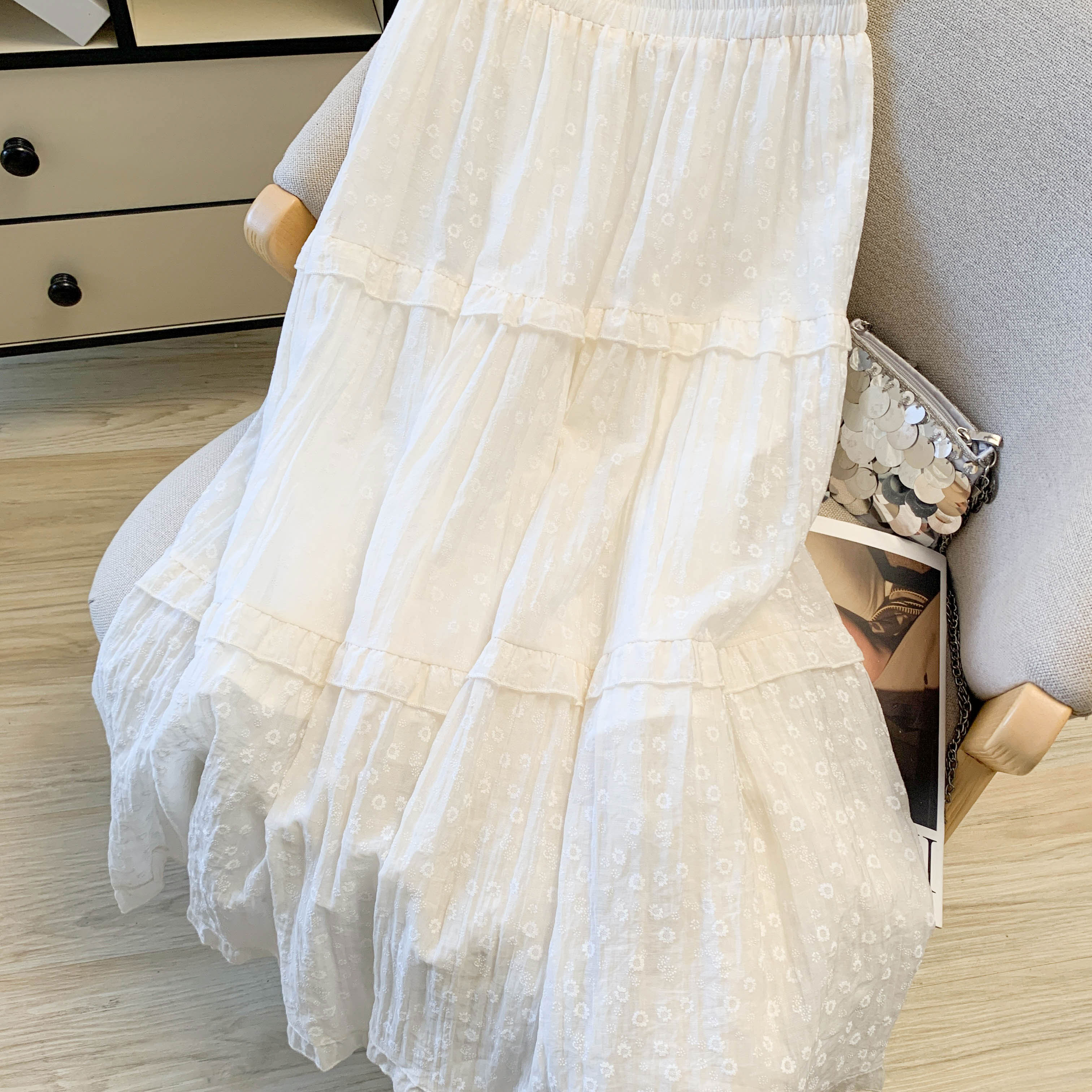 실사 문예 술 레이스업 면 린넨 반신 스커트 중식 국풍 레트로 표지 넓적 다리 품격 도루 센스 한 마디 빅 플레어 스커트